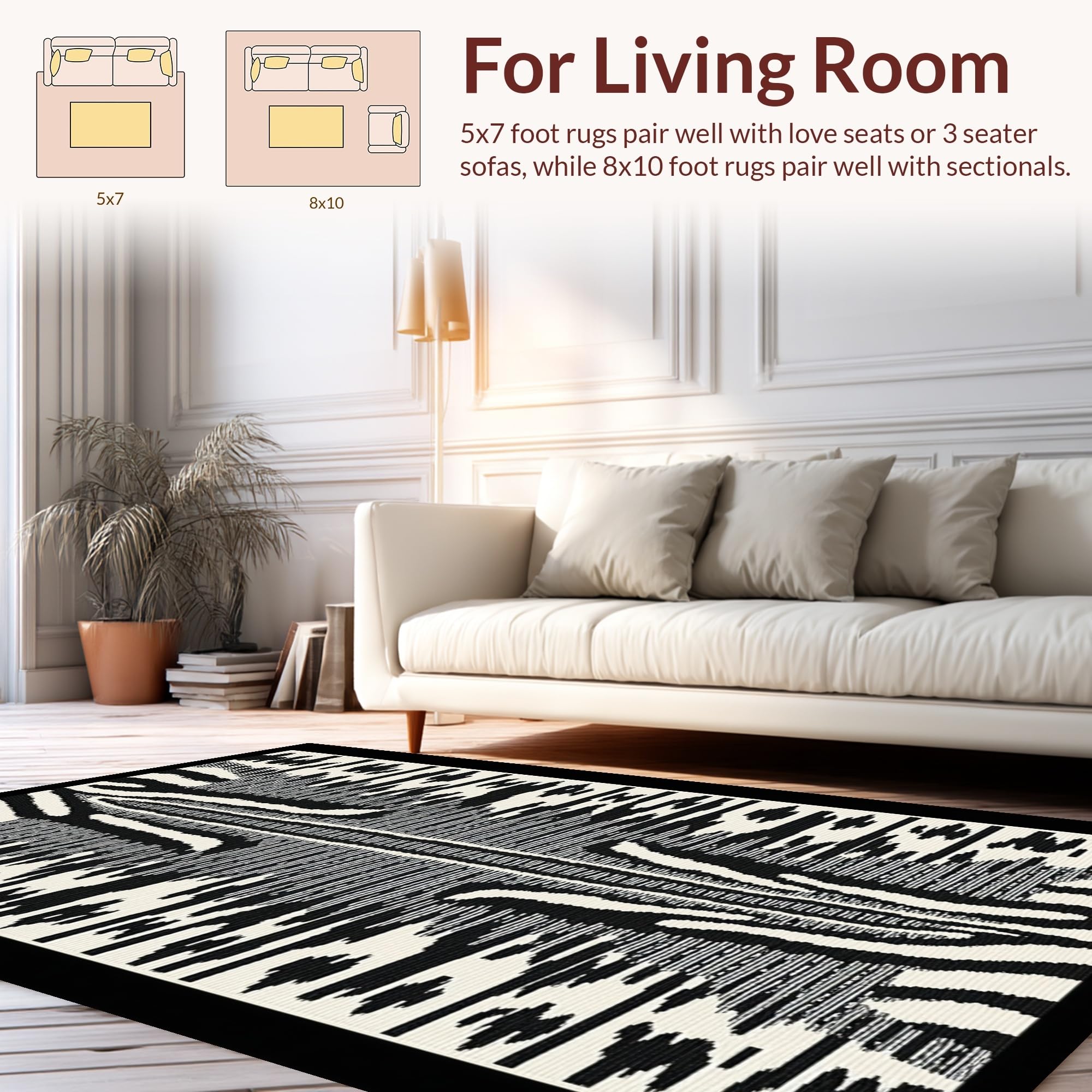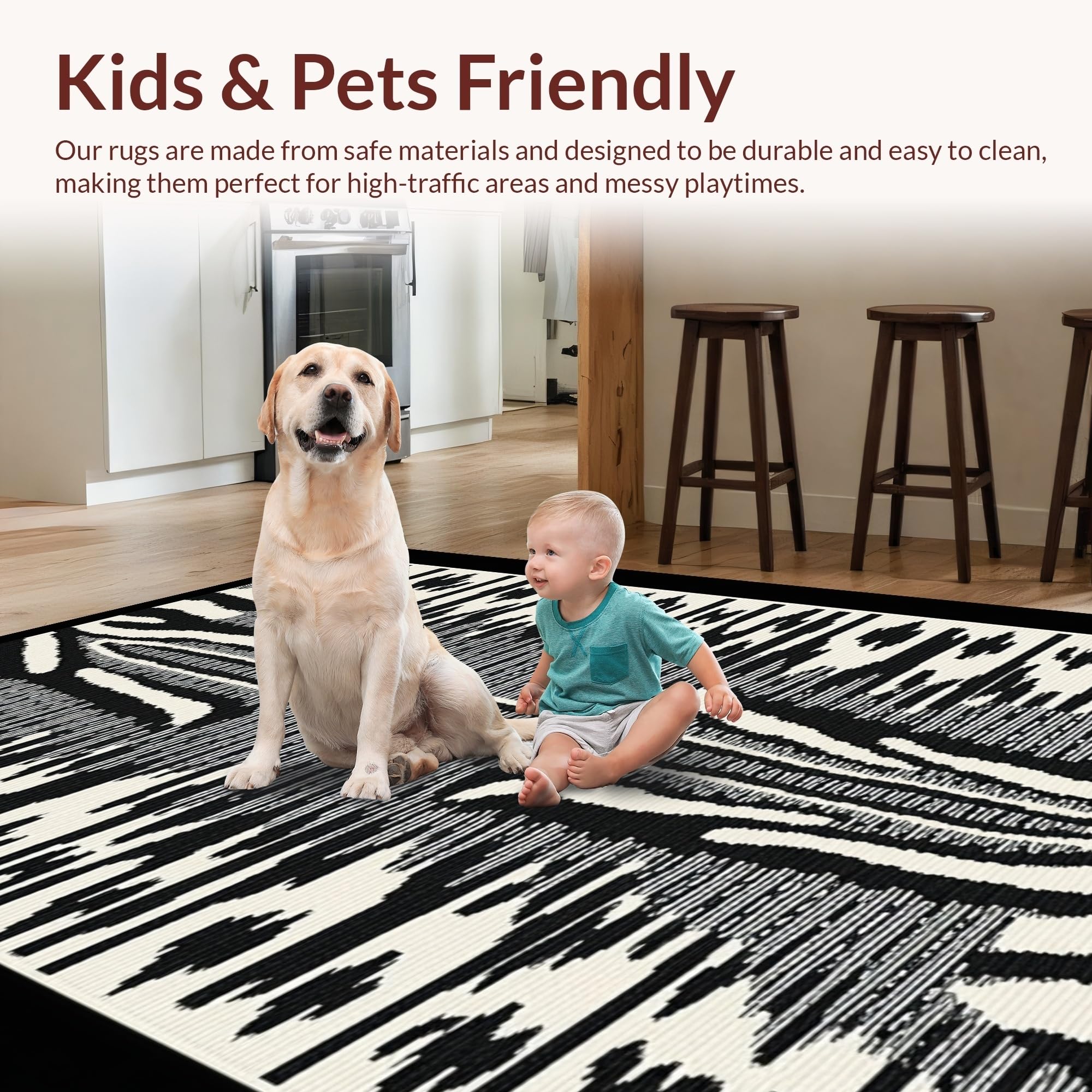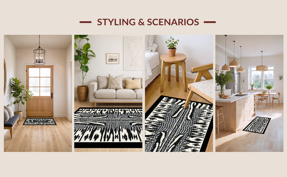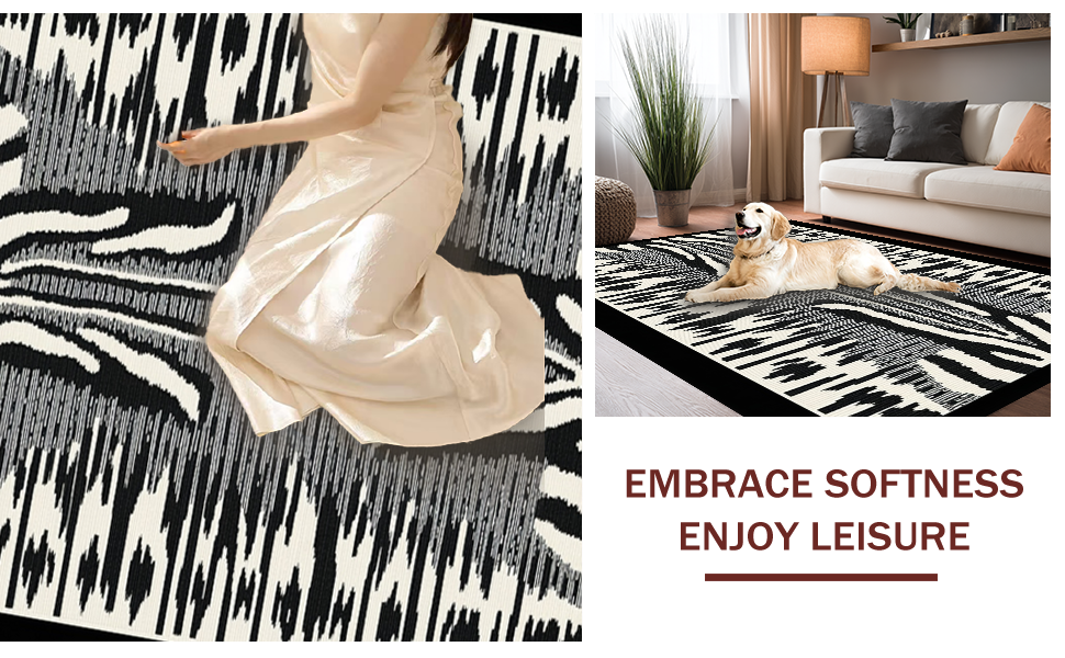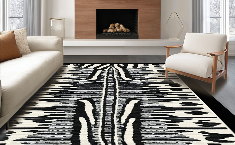 Ultra Soft Area Rug, Non Slip, Stain Resistant, Washable Area Rugs for Living Room, Bedroom, Eclectic Modern Safari Vibe(Black) Overview: