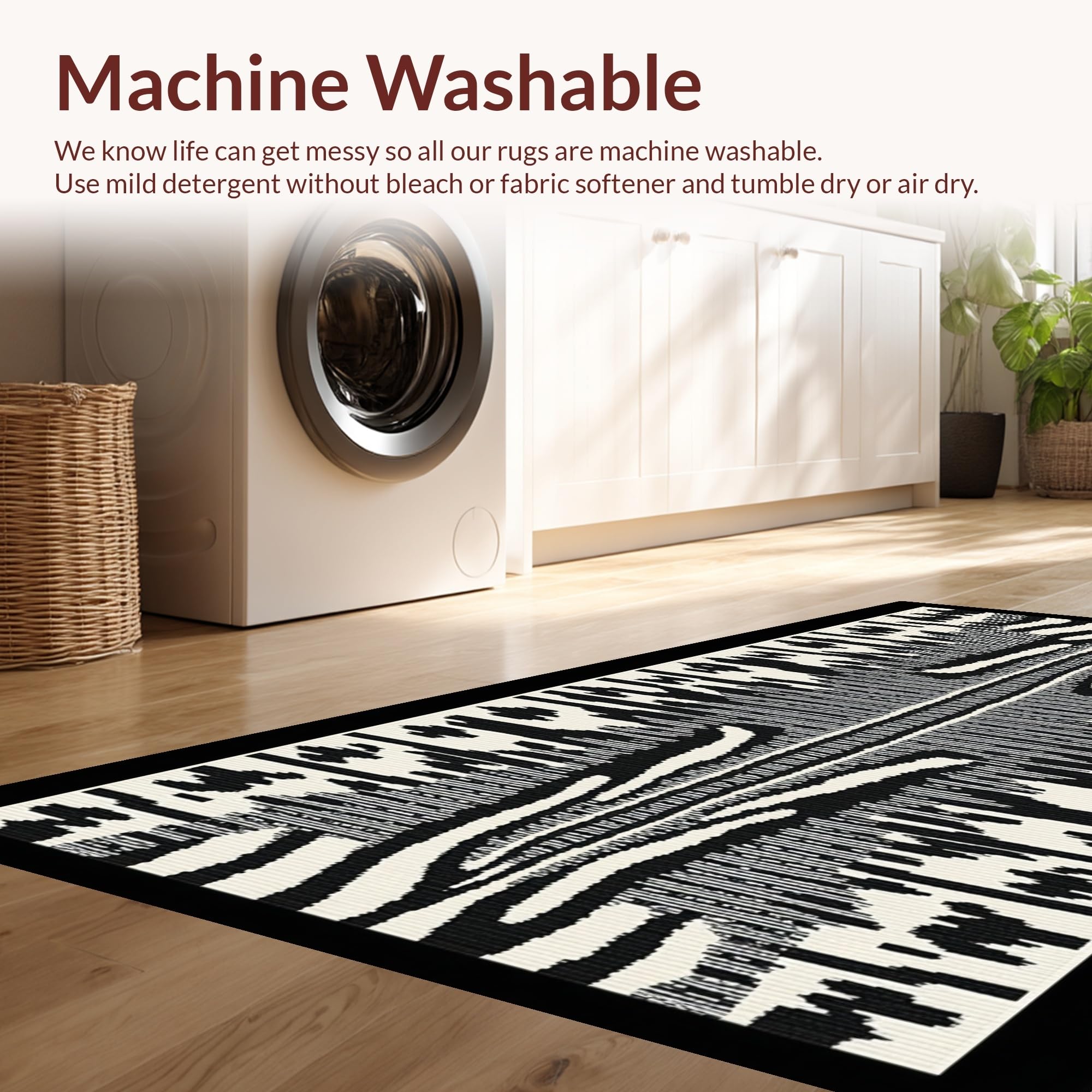 - Machine Washable: Our rugs can be easily thrown in the wash machine.