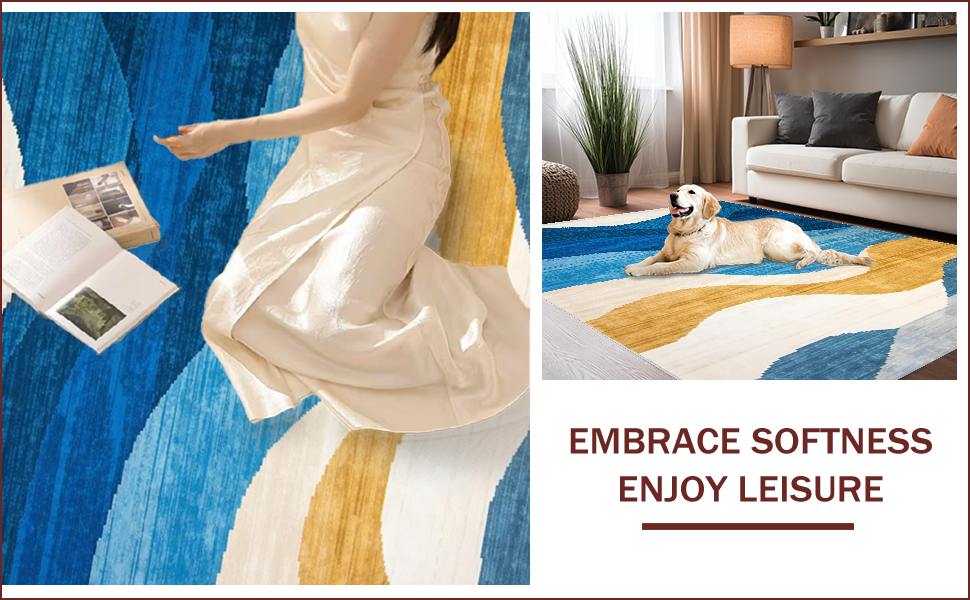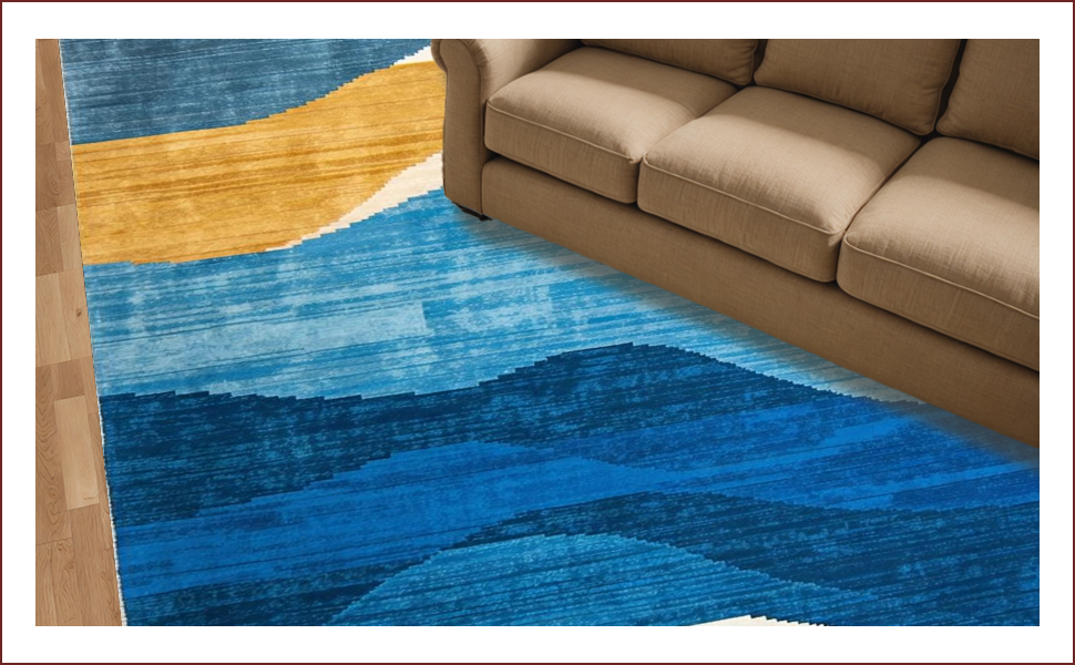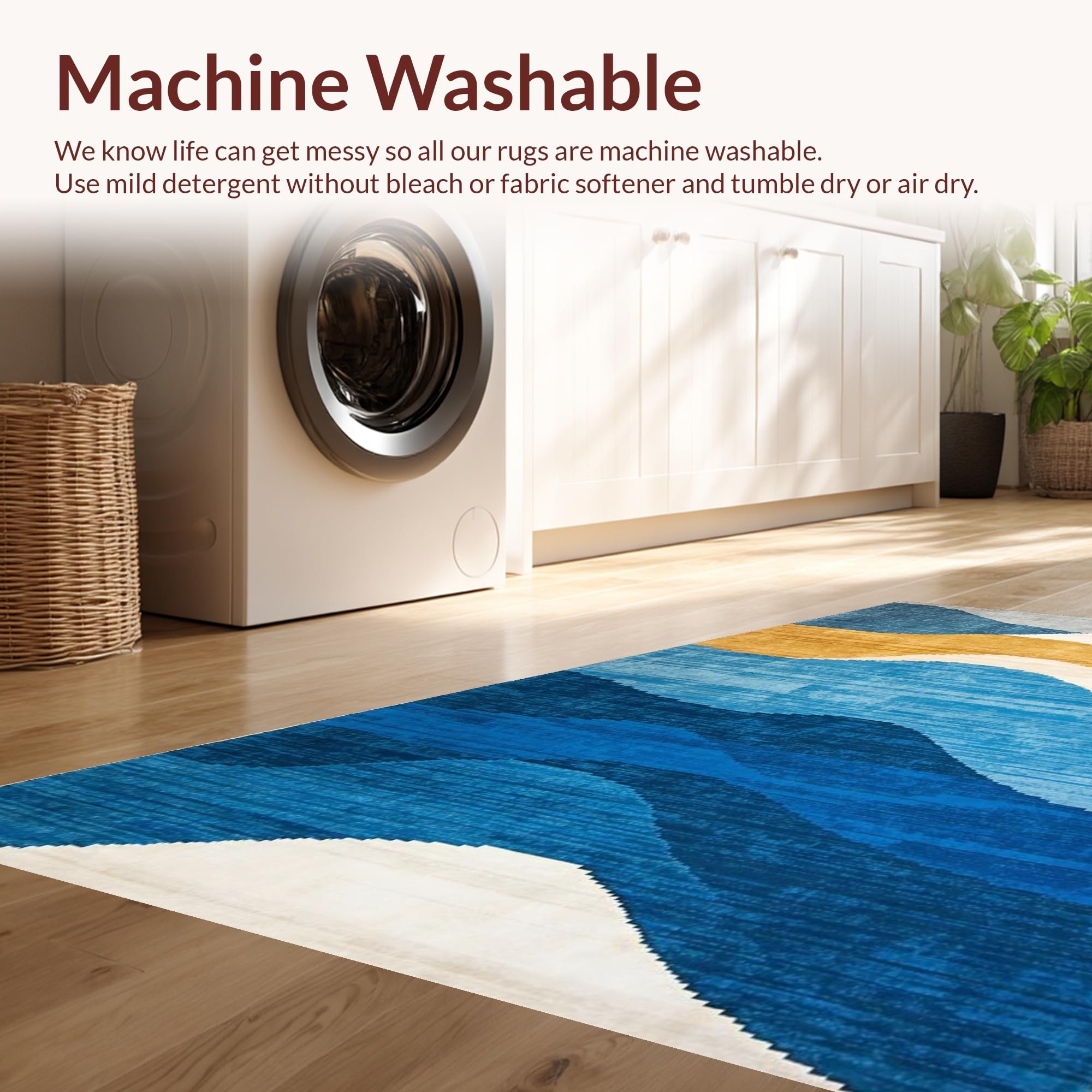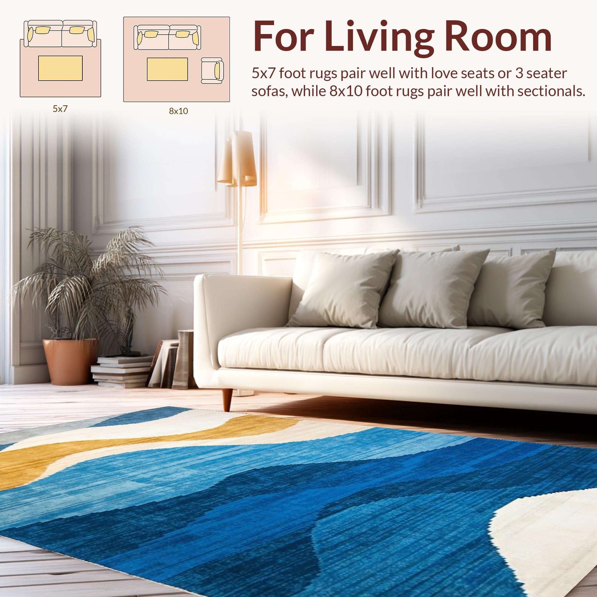 Ultra Soft Area Rug, Non Slip, Stain Resistant, Washable Area Rugs for Living Room, Bedroom, Eclectic Multi-Hued Wave Motif(Blue) Overview: