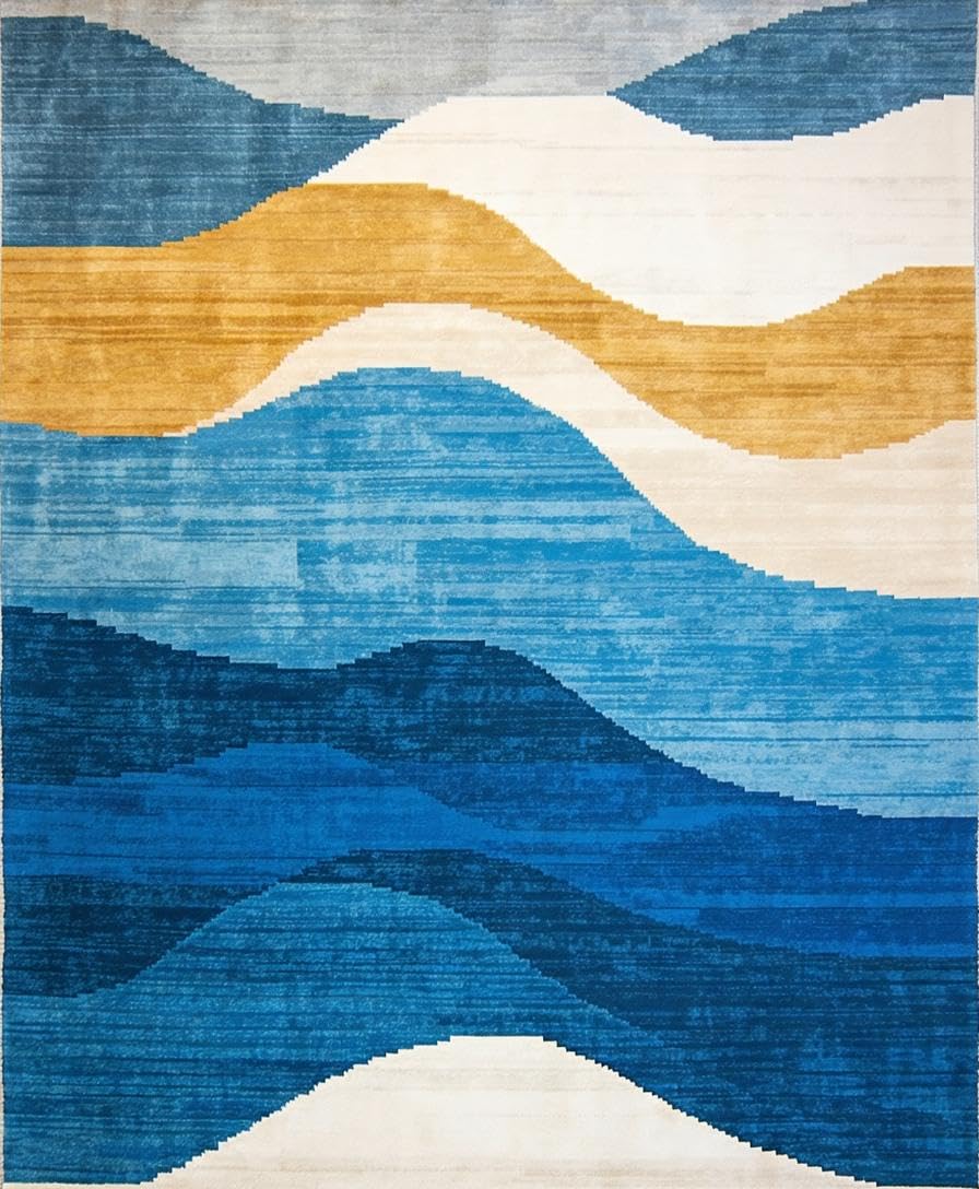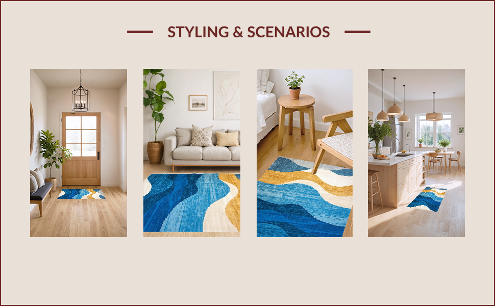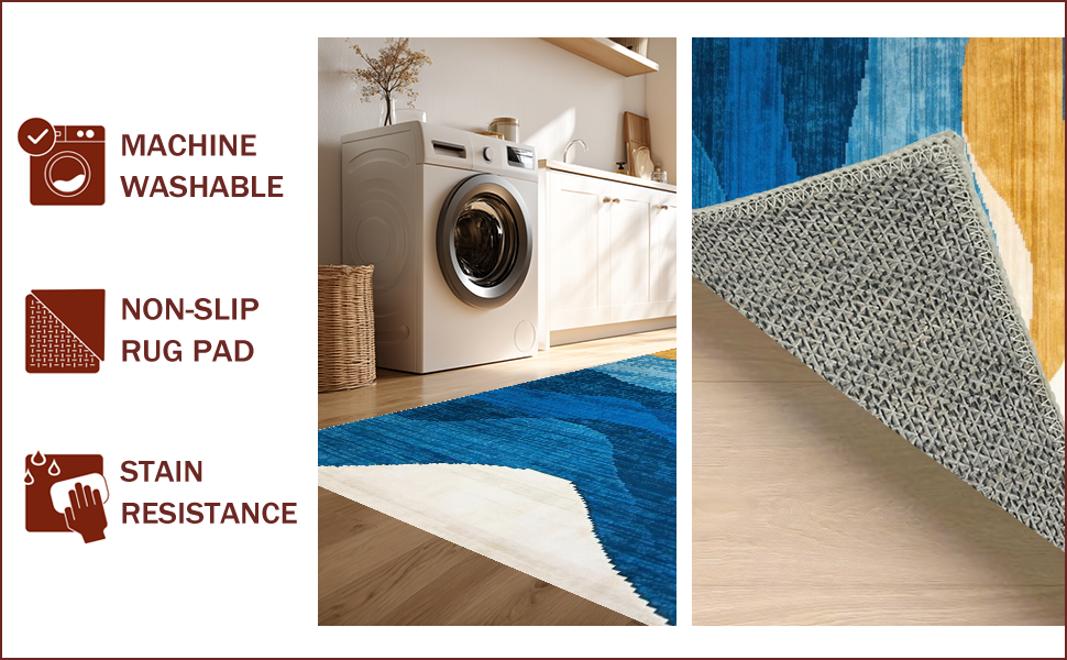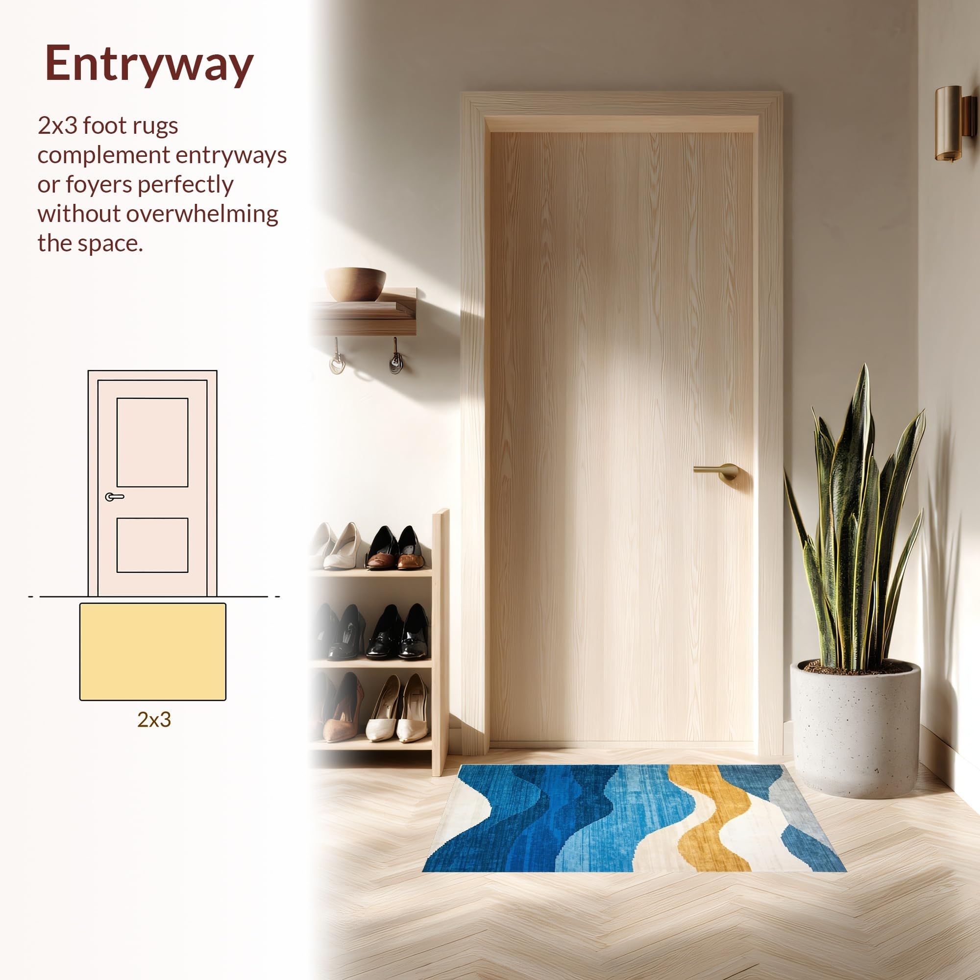 Ultra Soft Area Rug, Non Slip, Stain Resistant, Washable Area Rugs for Living Room, Bedroom, Eclectic Multi-Hued Wave Motif(Blue) Overview: