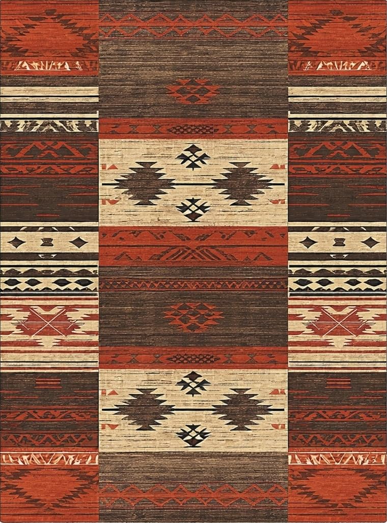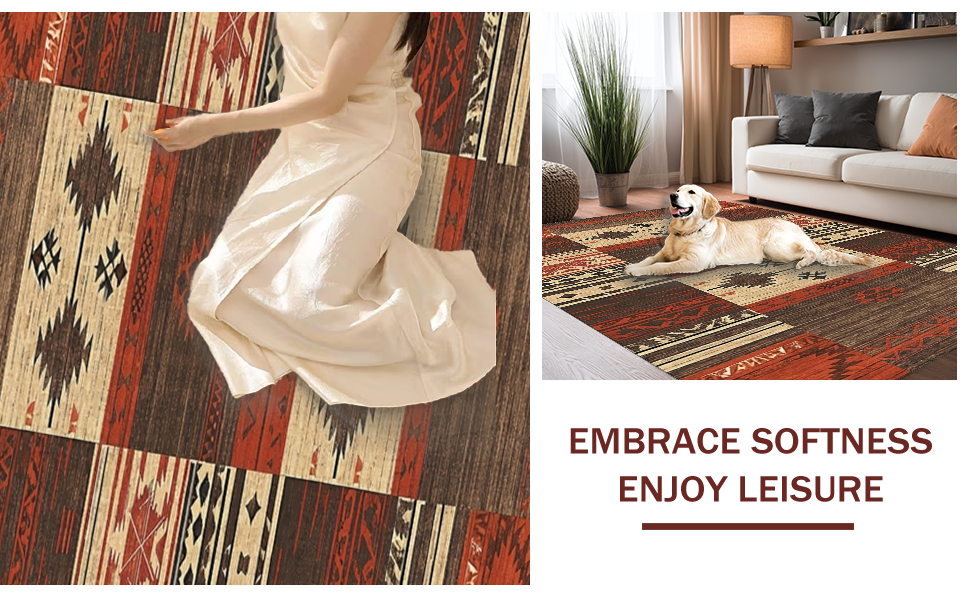 Ultra Soft Area Rug, Non Slip, Stain Resistant, Washable Area Rugs for Living Room, Bedroom, Eclectic Multi-tone Abstract Artwork(Red) Overview: