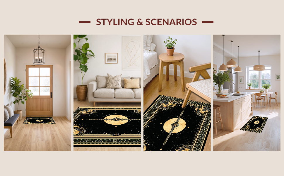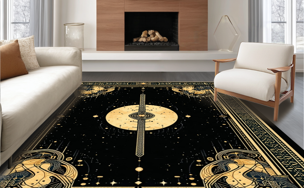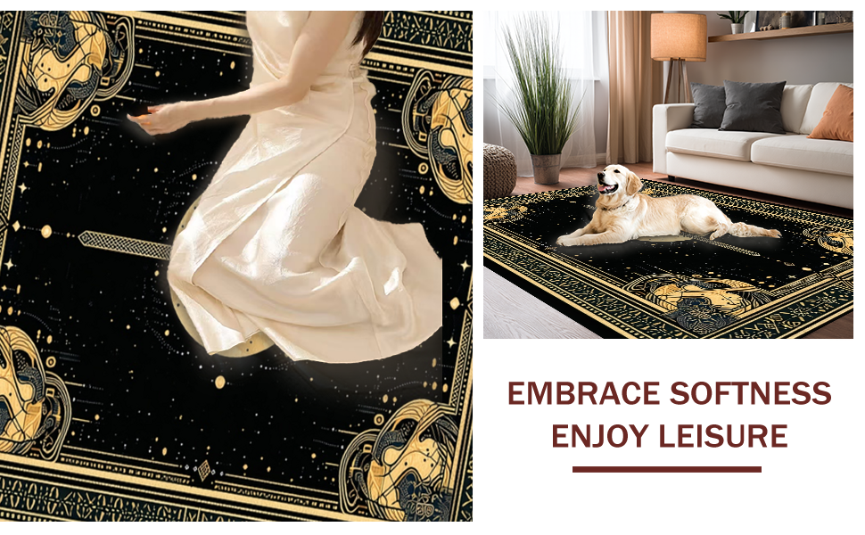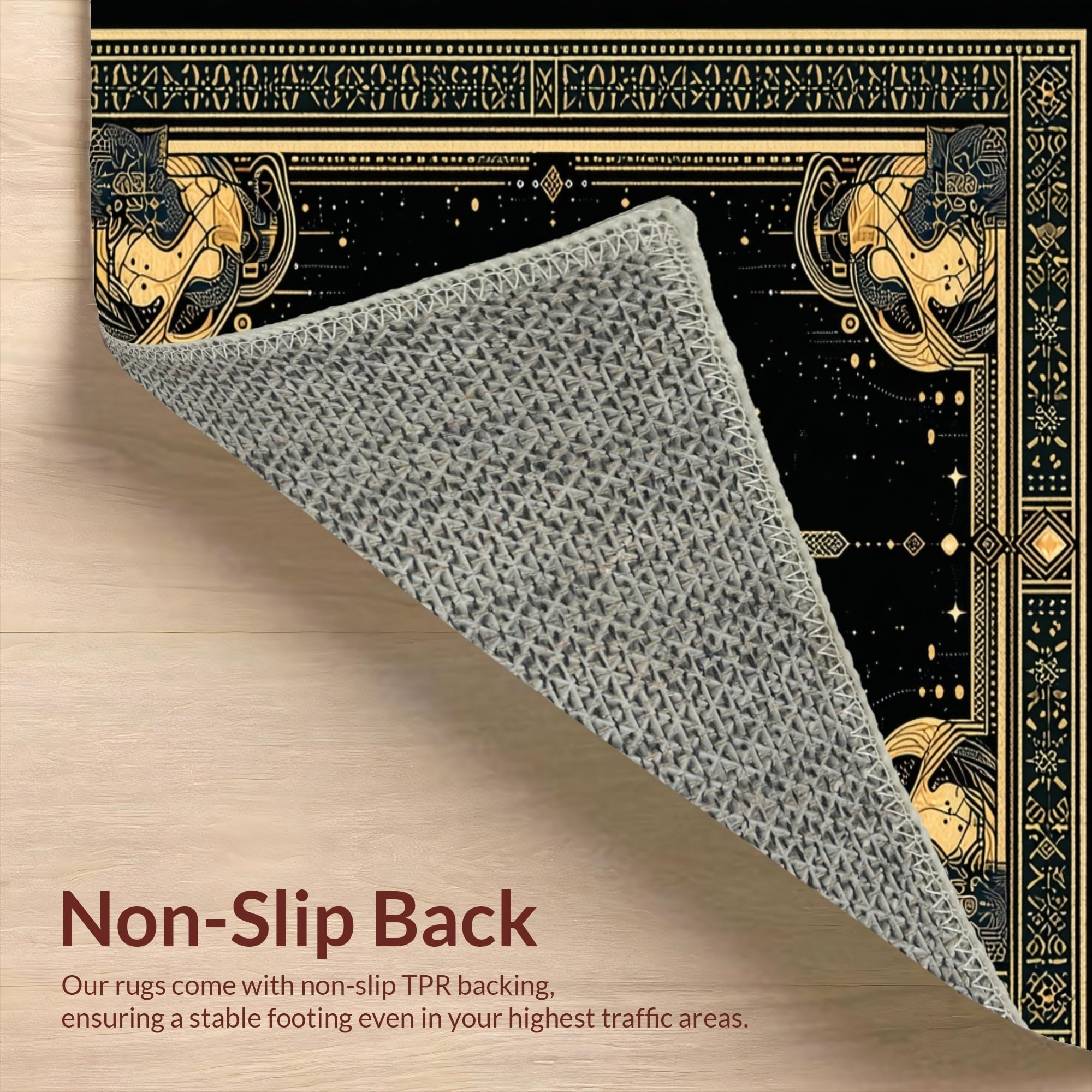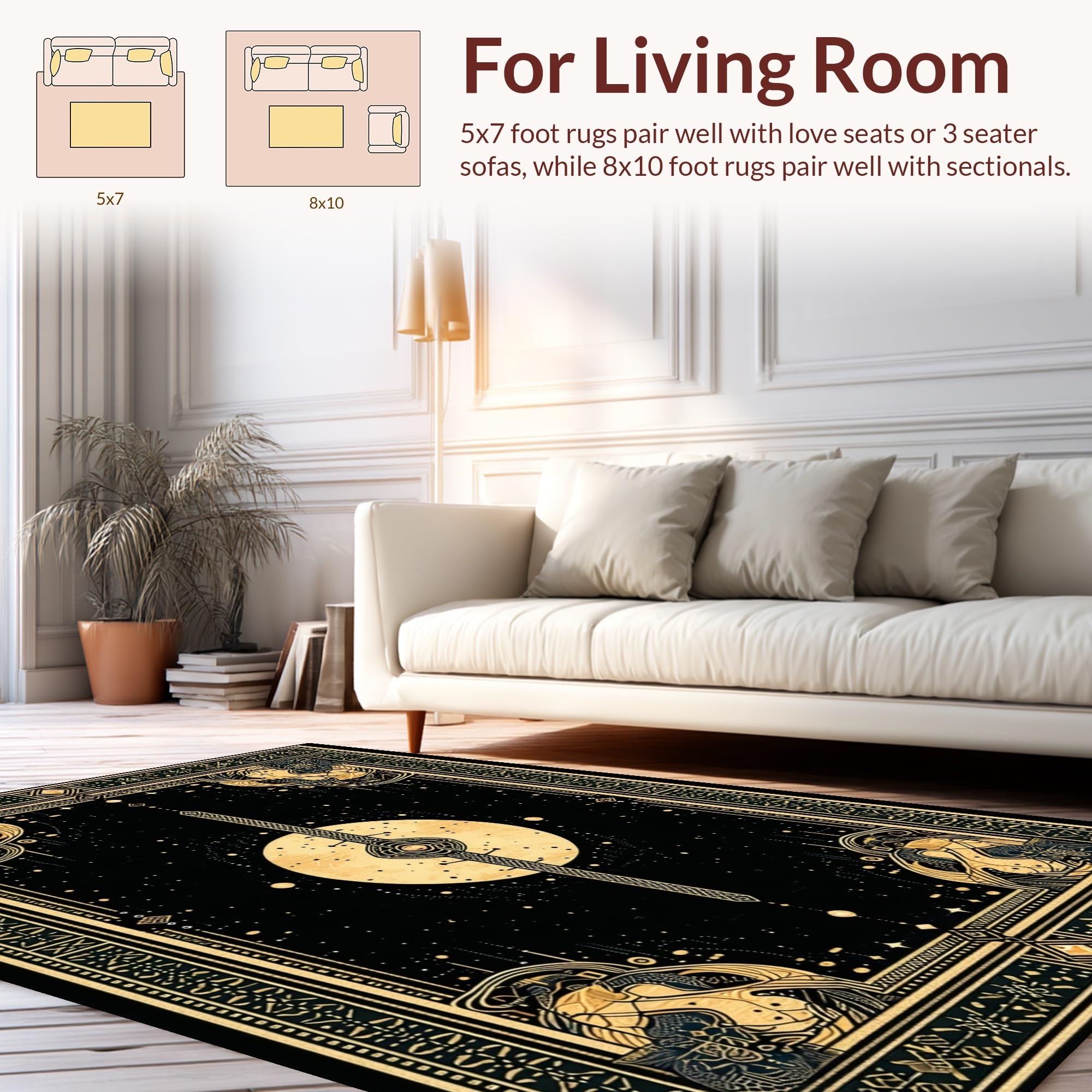 Ultra Soft Area Rug, Non Slip, Stain Resistant, Washable Area Rugs for Living Room, Bedroom, Eclectic Nature-Inspired Graphic(Black) Overview: