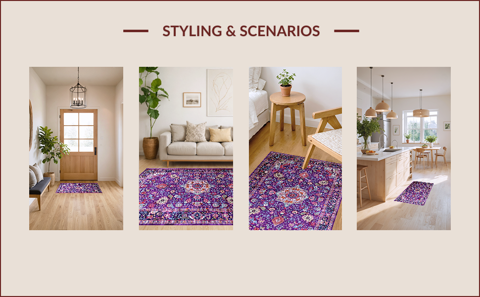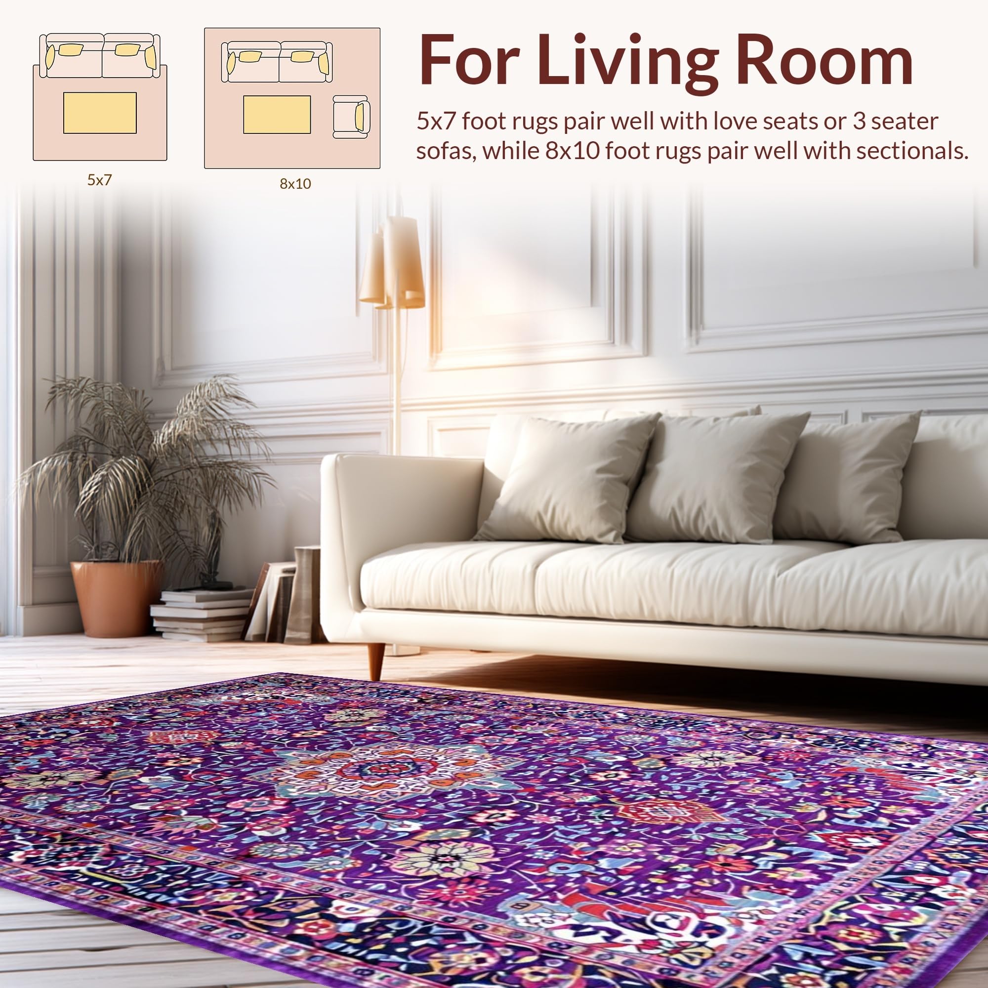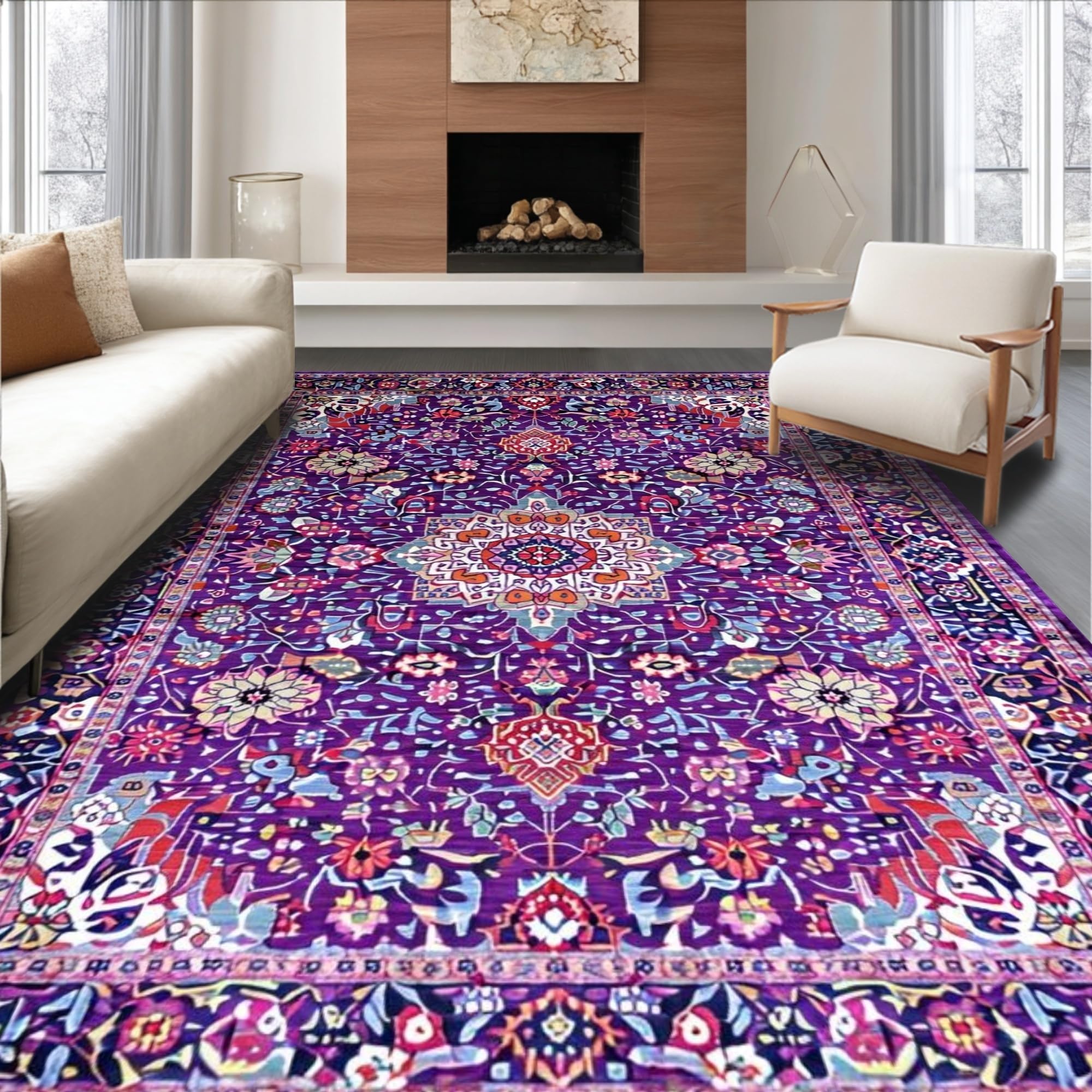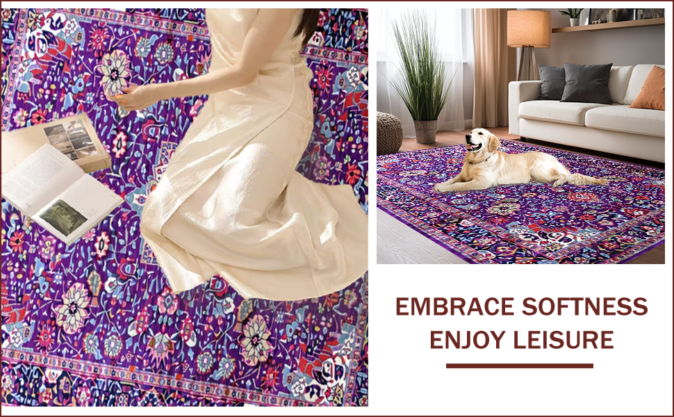 Ultra Soft Area Rug, Non Slip, Stain Resistant, Washable Area Rugs for Living Room, Bedroom, Eclectic Pastel Abstract Design(Purple) Overview: