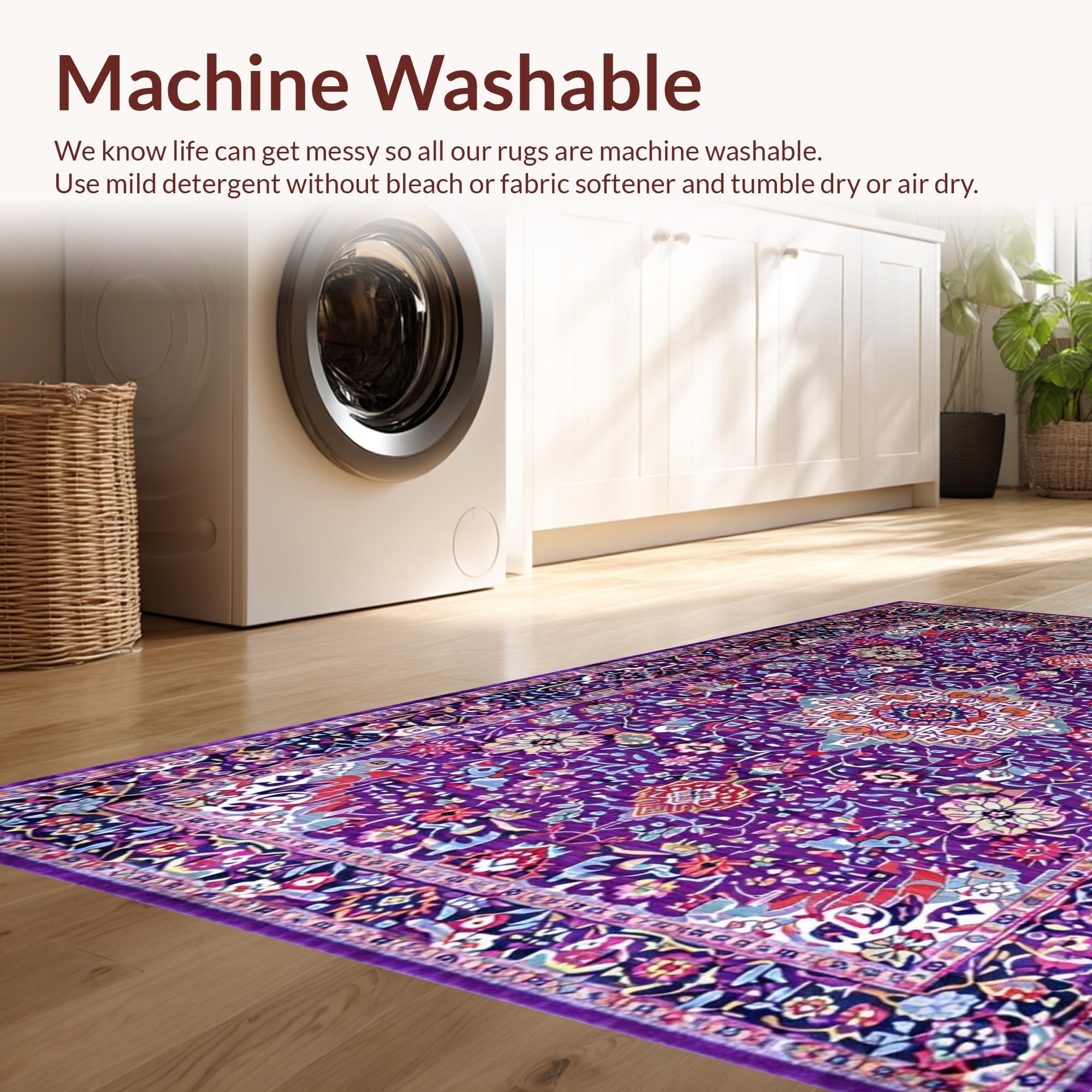 - Machine Washable: Our rugs can be easily thrown in the wash machine.
