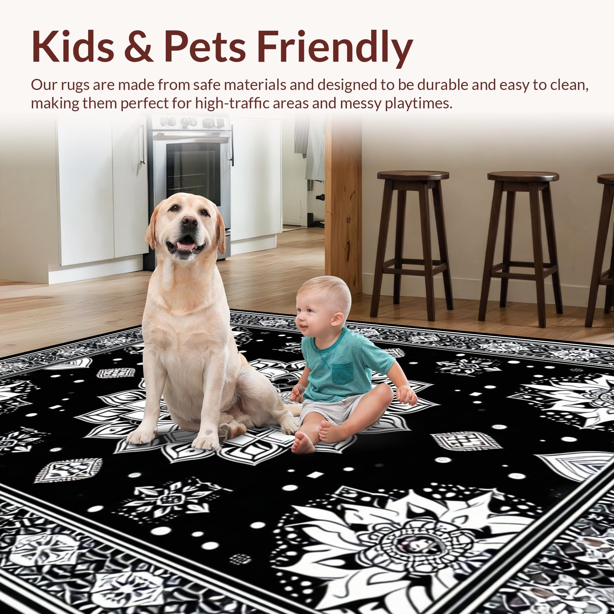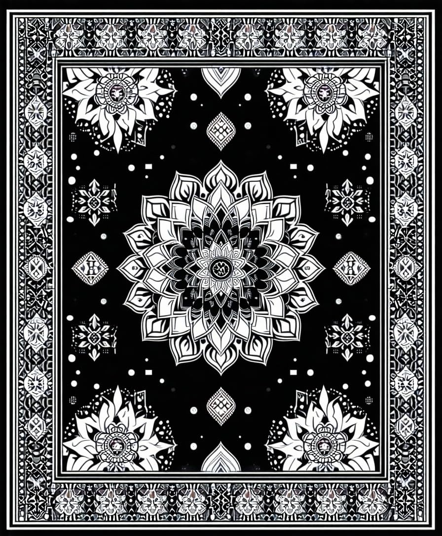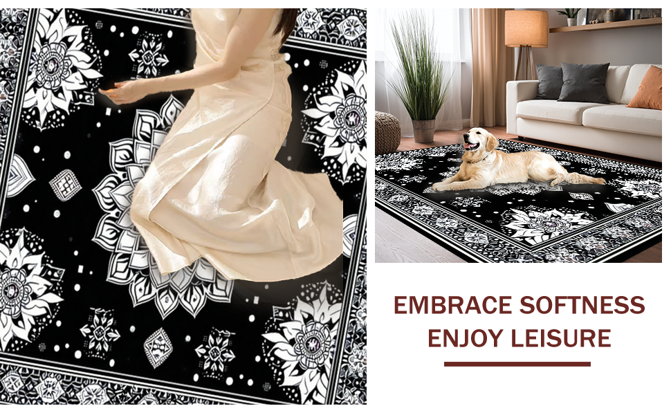 Ultra Soft Area Rug, Non Slip, Stain Resistant, Washable Area Rugs for Living Room, Bedroom, Eclectic Pom Pom Textured Style(Black) Overview: