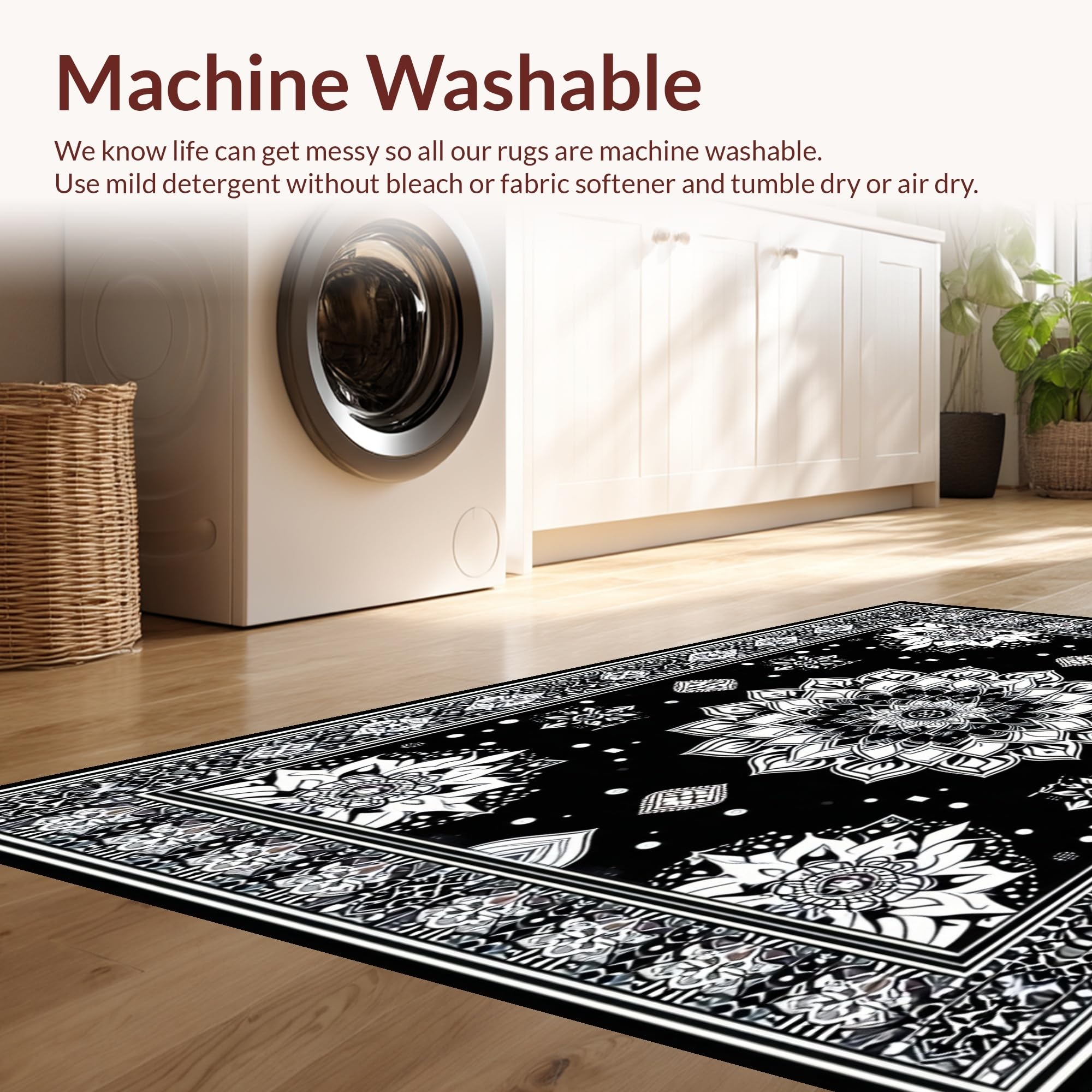 - Machine Washable: Our rugs can be easily thrown in the wash machine.