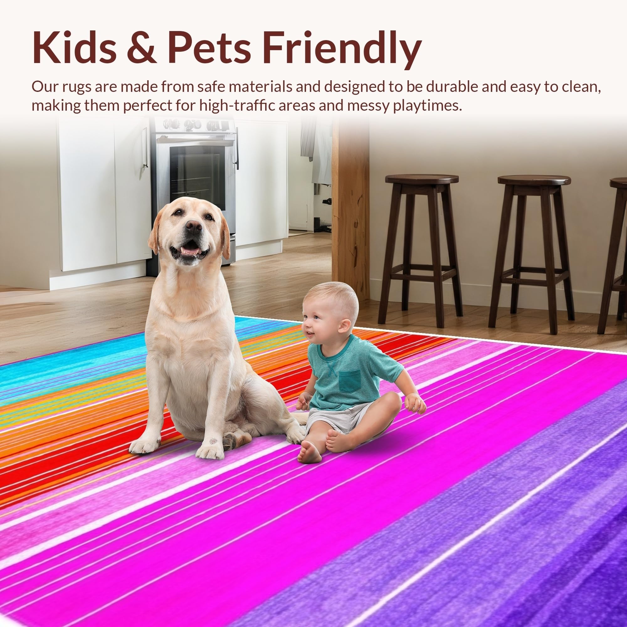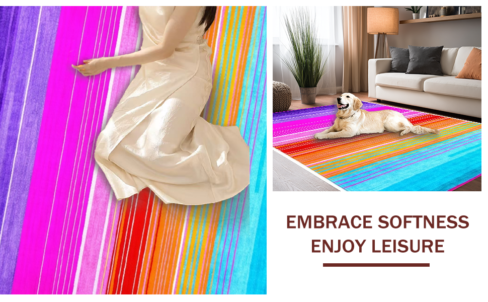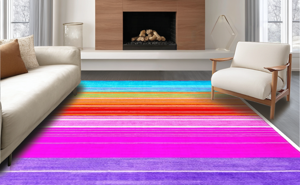 Ultra Soft Area Rug, Non Slip, Stain Resistant, Washable Area Rugs for Living Room, Bedroom, Eclectic Rainbow Wave Artistry(Blue) Overview: