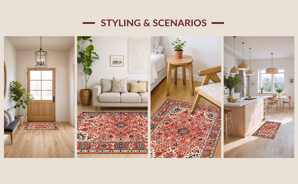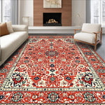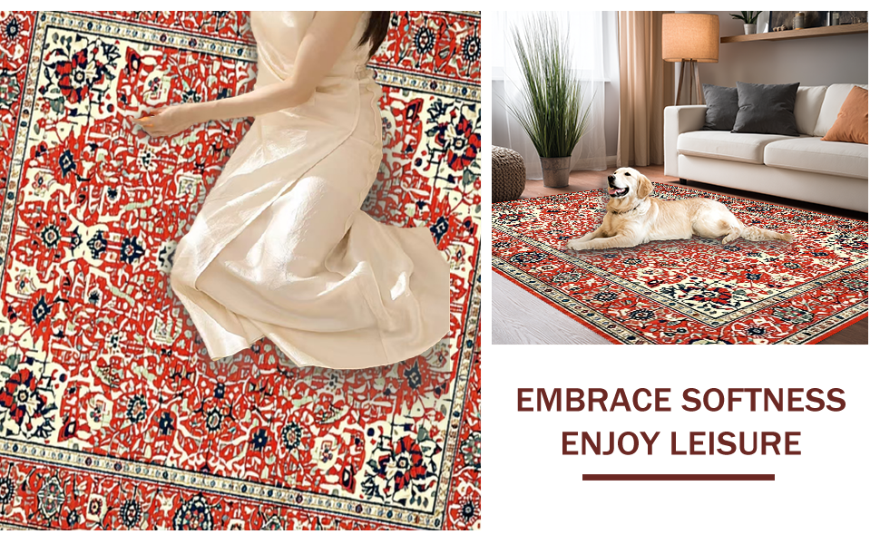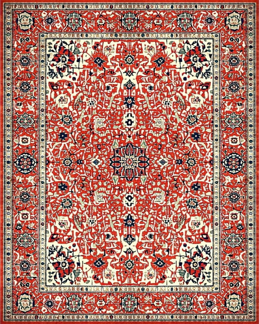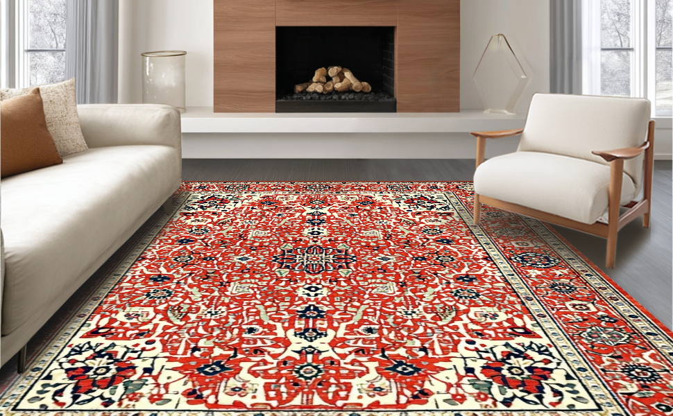 Ultra Soft Area Rug, Non Slip, Stain Resistant, Washable Area Rugs for Living Room, Bedroom, Eclectic Retro Floral Harmony(Red) Overview: