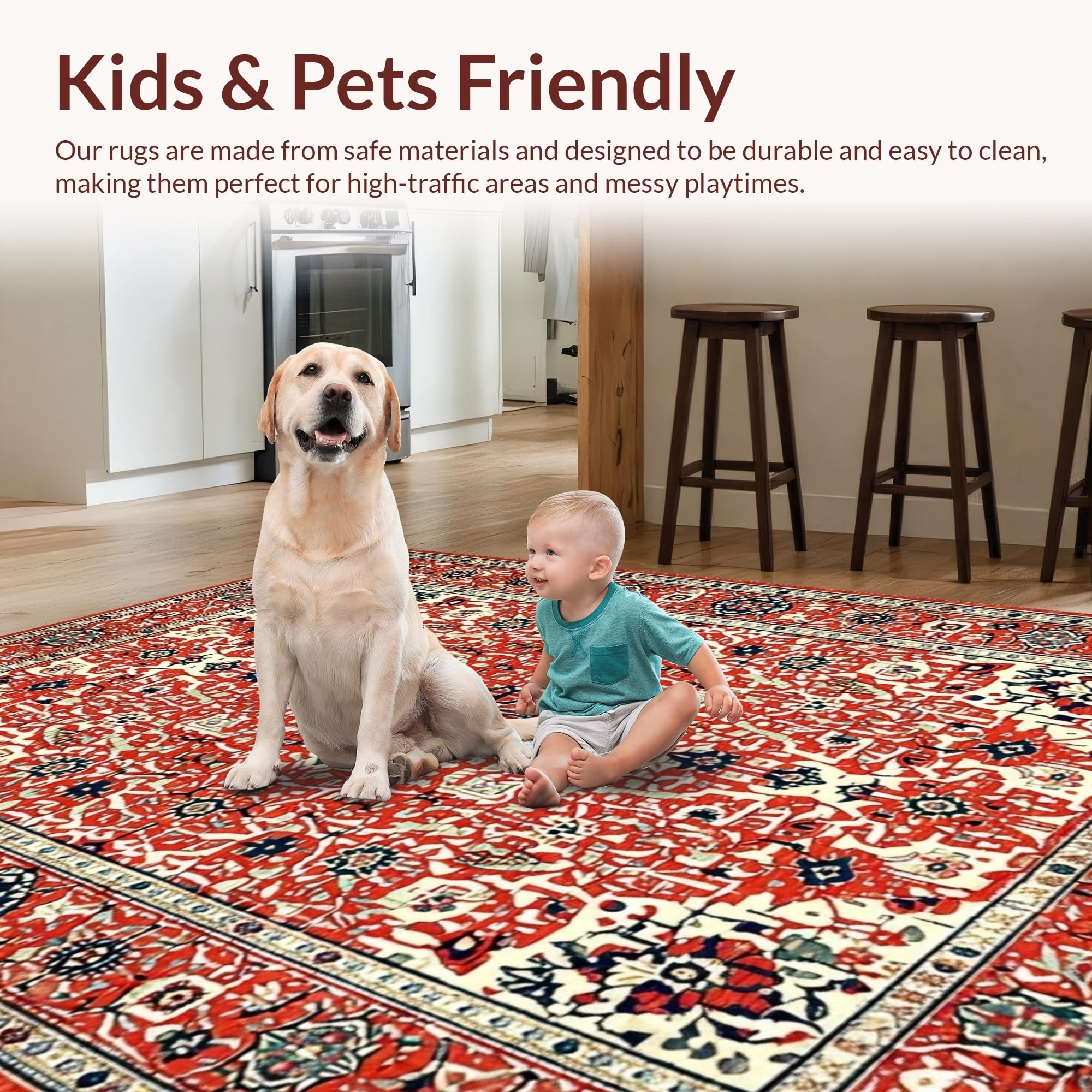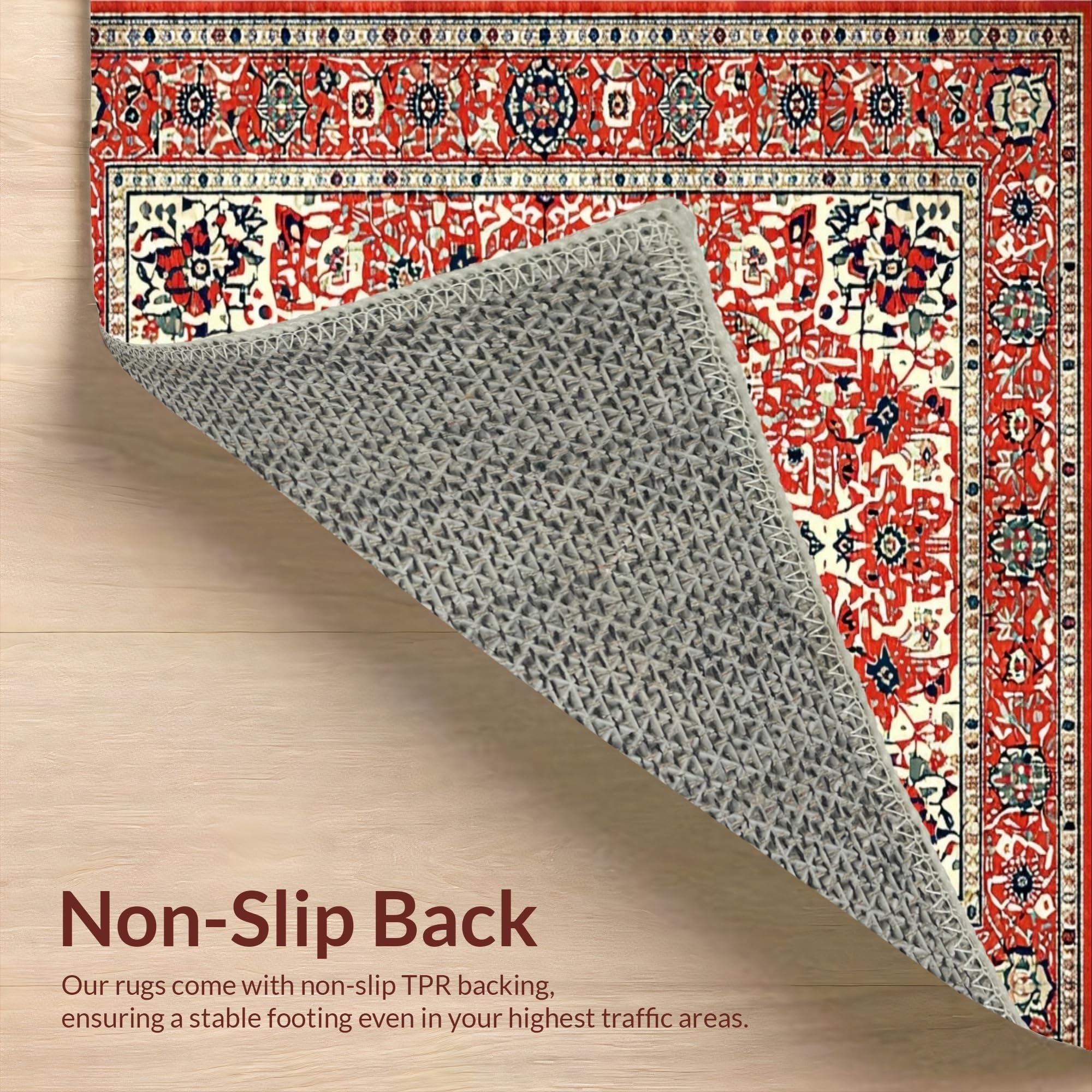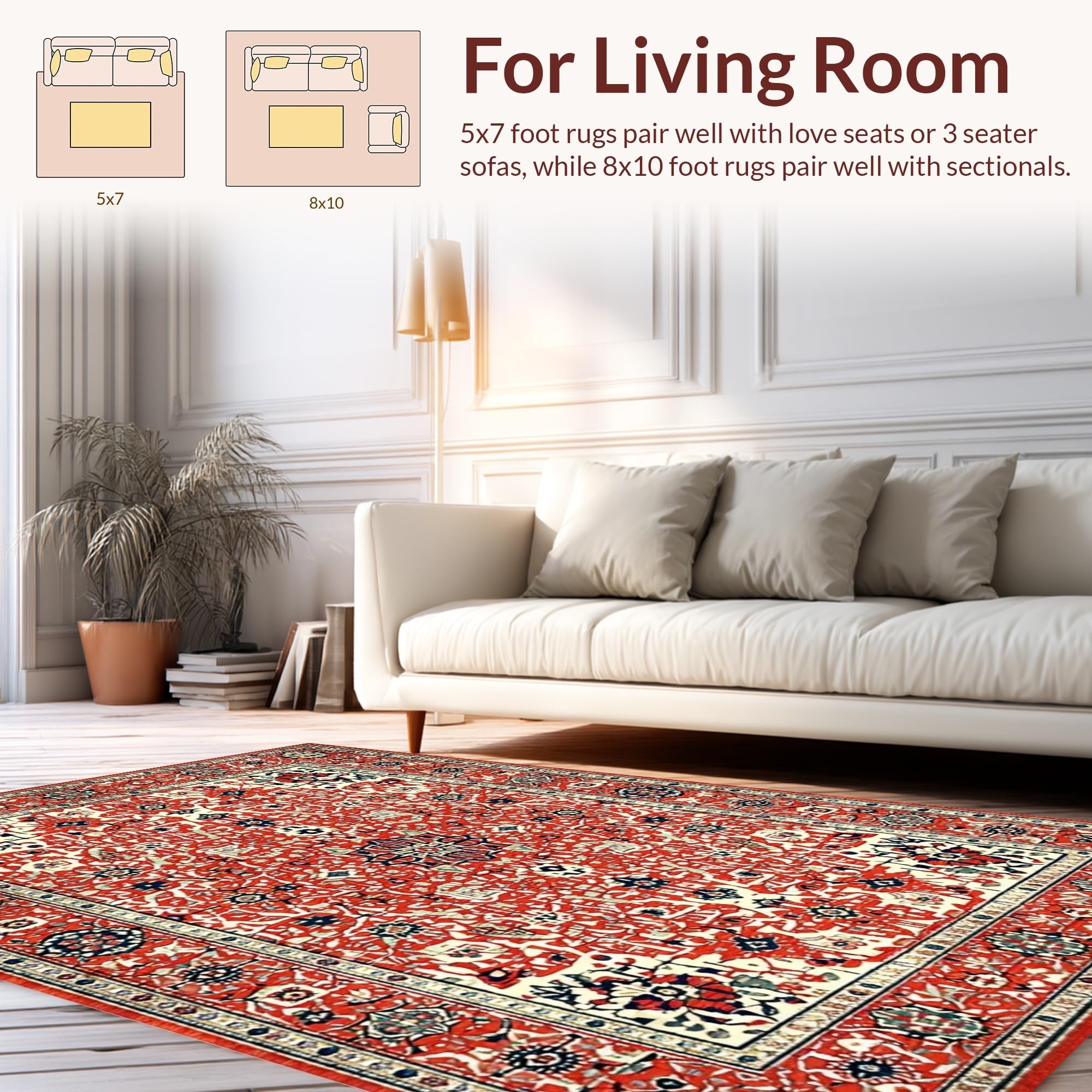 Ultra Soft Area Rug, Non Slip, Stain Resistant, Washable Area Rugs for Living Room, Bedroom, Eclectic Retro Floral Harmony(Red) Overview: