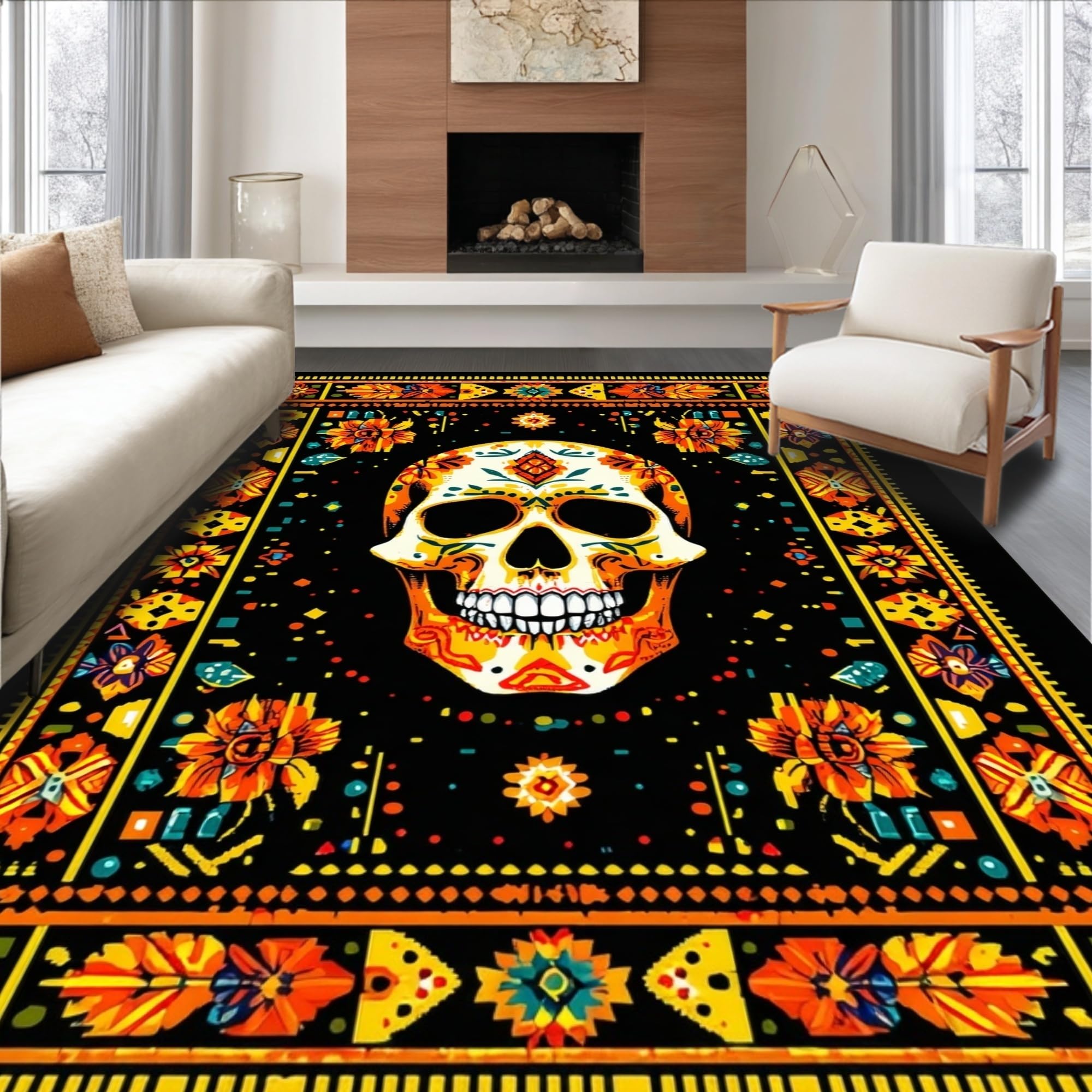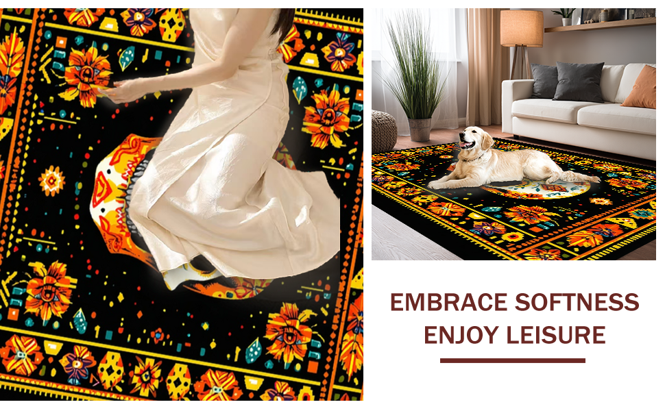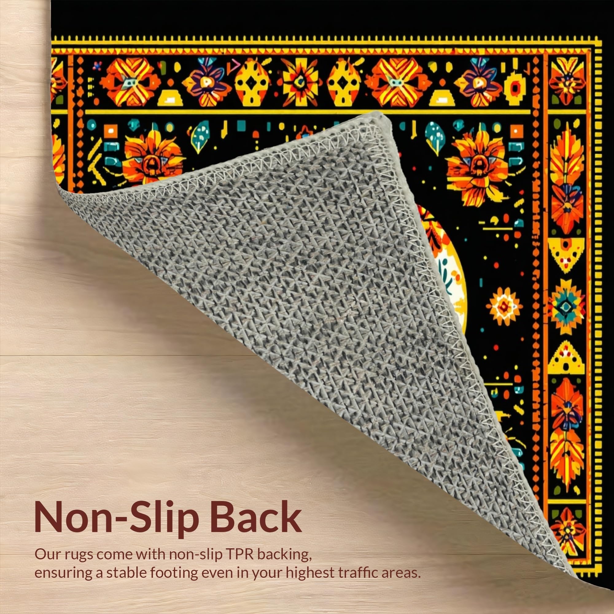 Ultra Soft Area Rug, Non Slip, Stain Resistant, Washable Area Rugs for Living Room, Bedroom, Eclectic Round Ethnic Textile(Orange) Overview: