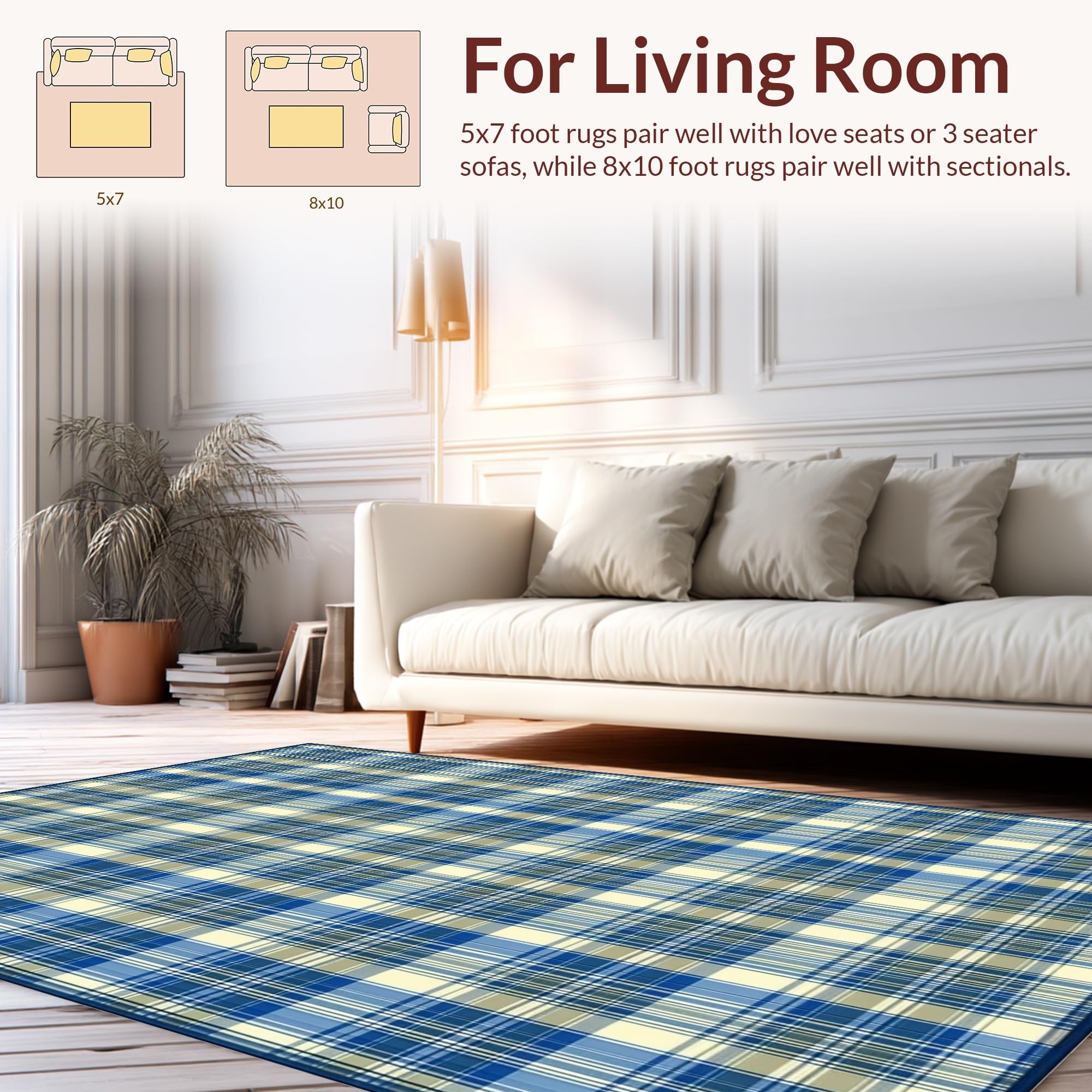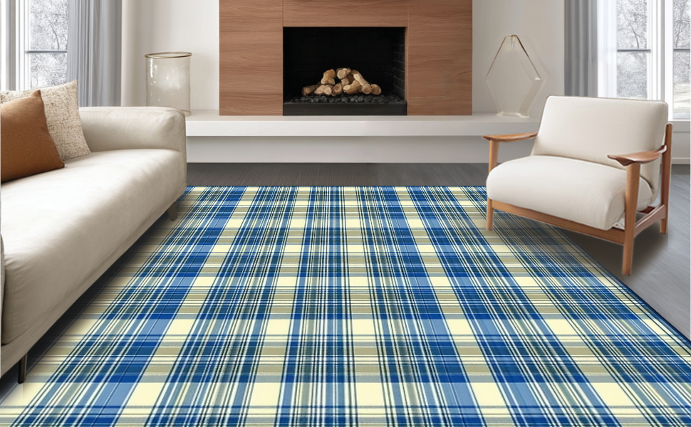 Ultra Soft Area Rug, Non Slip, Stain Resistant, Washable Area Rugs for Living Room, Bedroom, Eclectic Soft Blue Striped Texture(Beige) Overview: