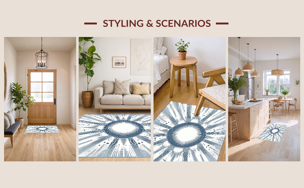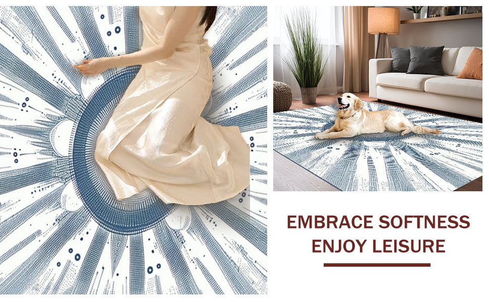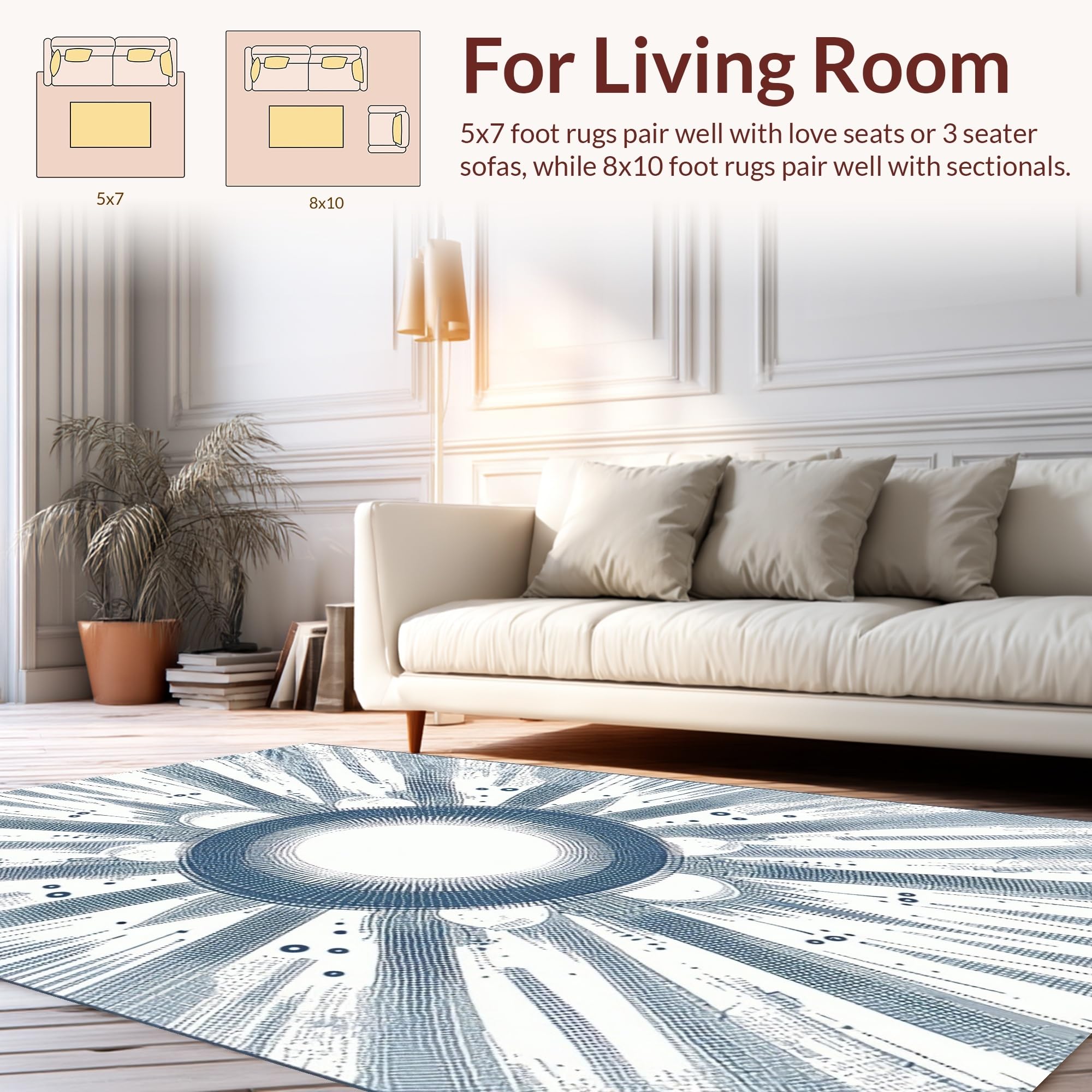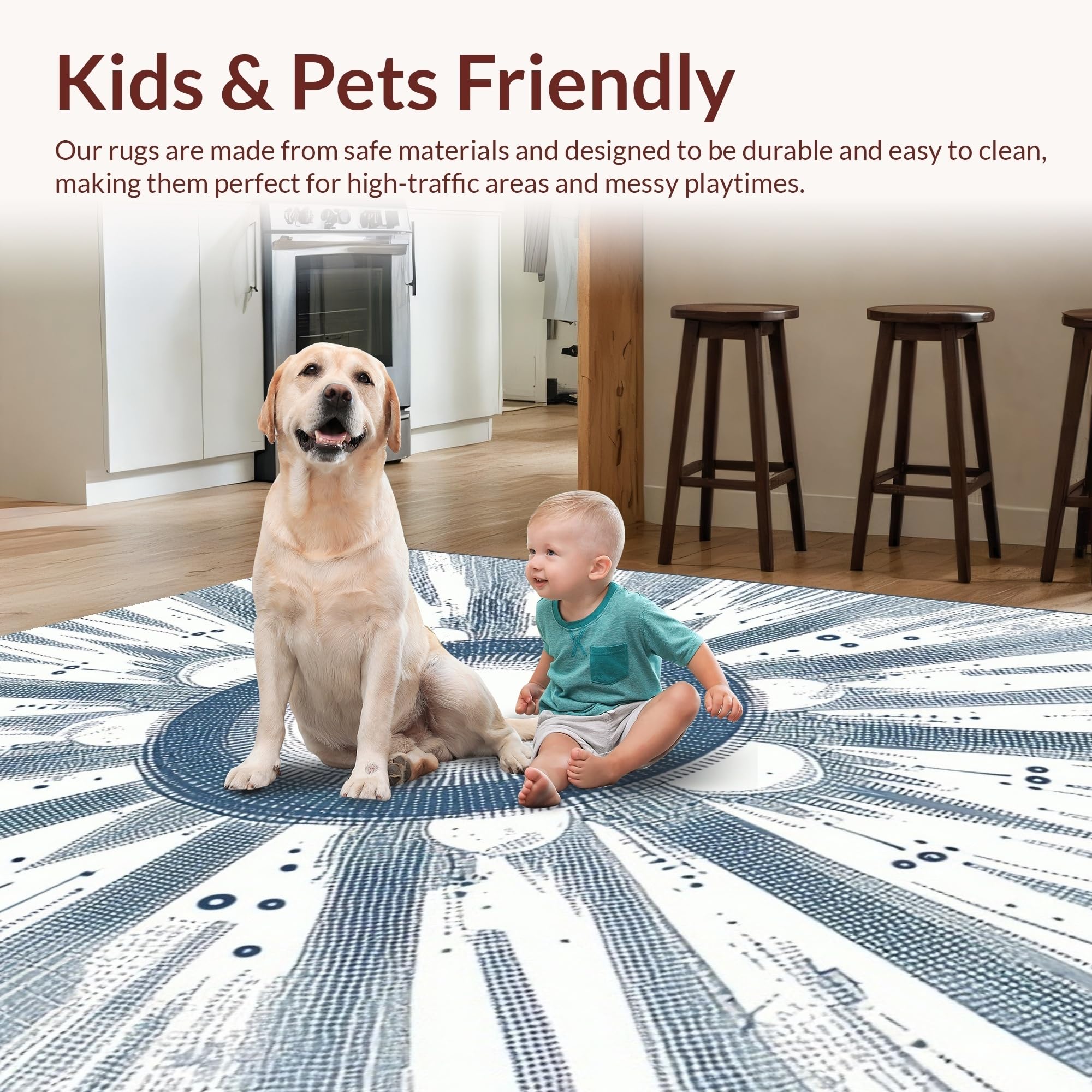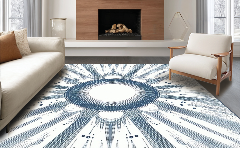 Ultra Soft Area Rug, Non Slip, Stain Resistant, Washable Area Rugs for Living Room, Bedroom, Eclectic Soft Distressed Mandala Motif(Blue) Overview: