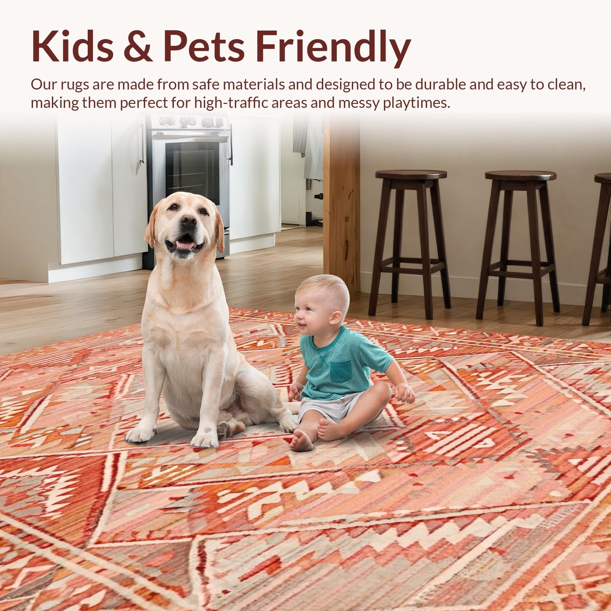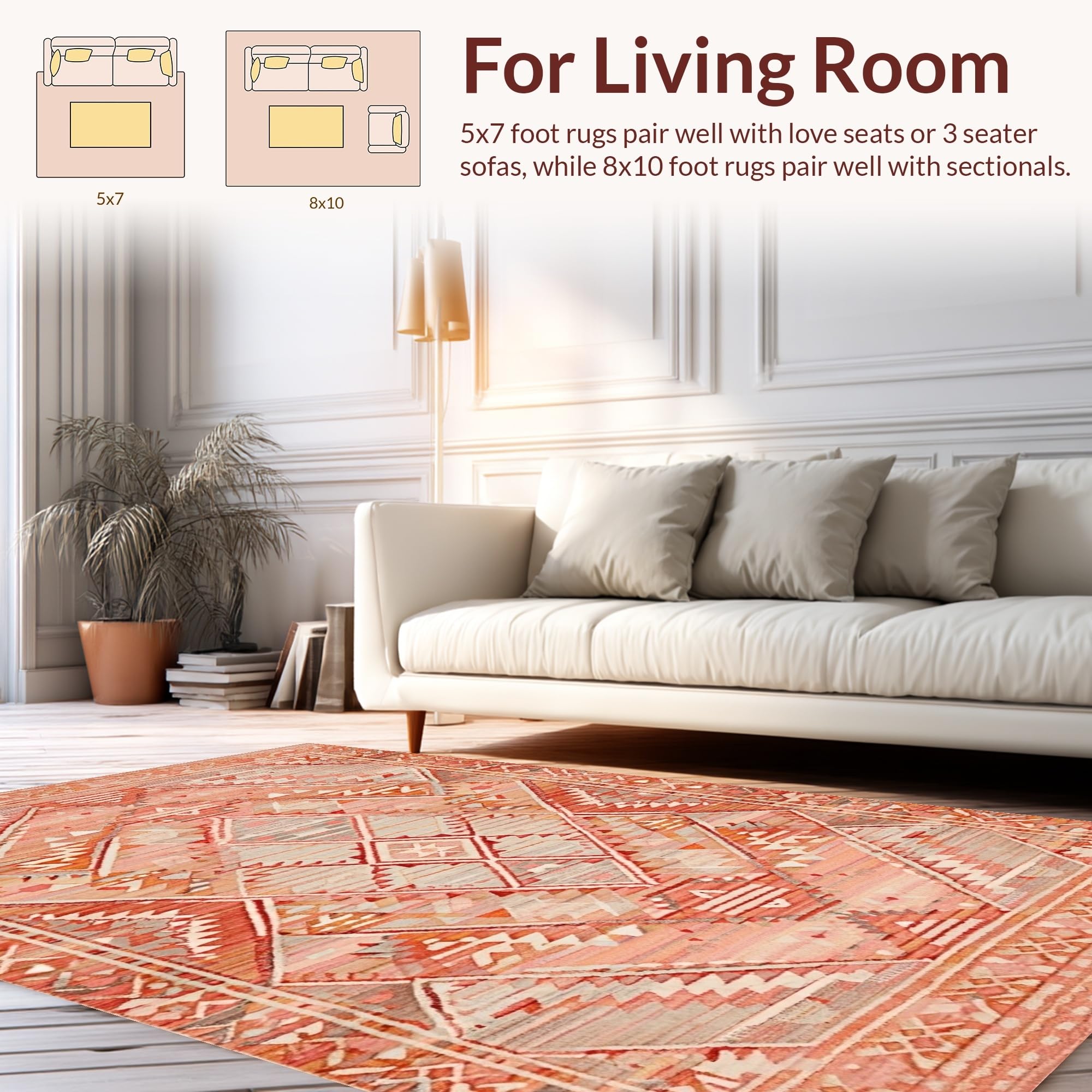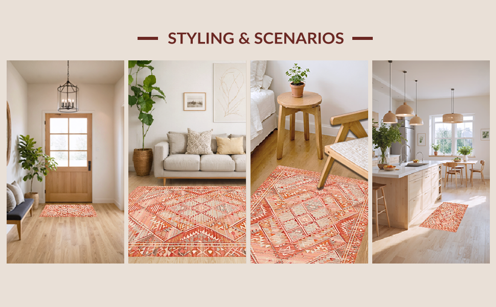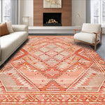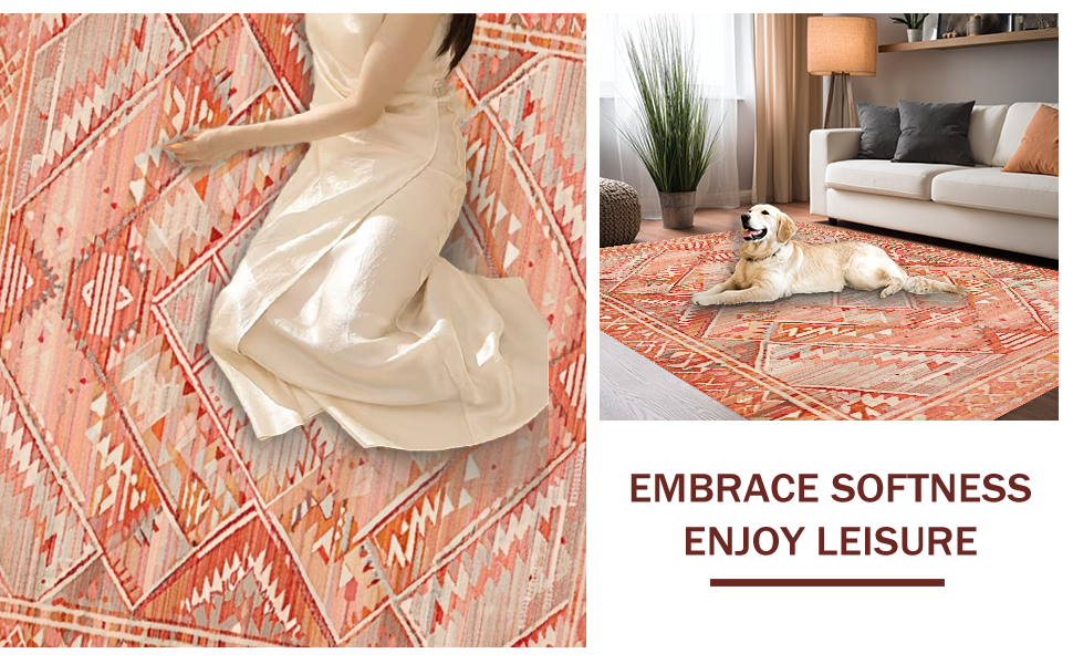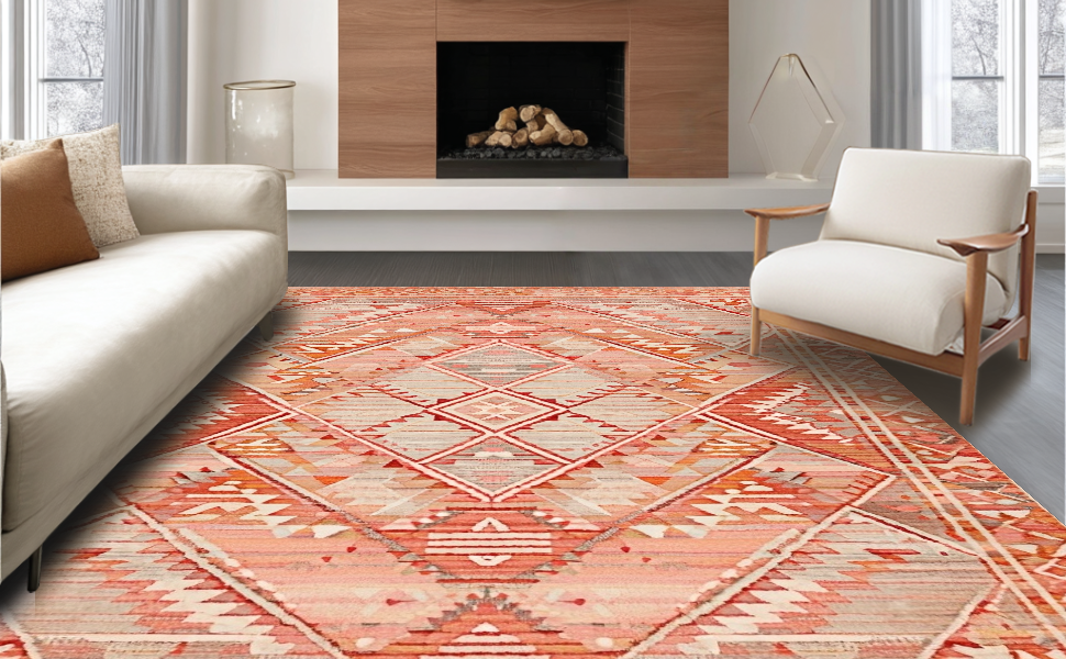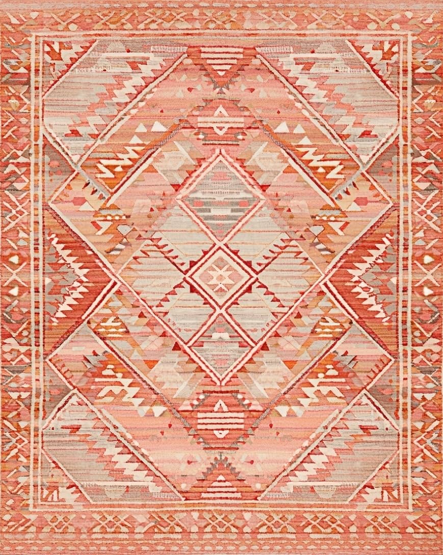 Ultra Soft Area Rug, Non Slip, Stain Resistant, Washable Area Rugs for Living Room, Bedroom, Eclectic Terracotta Geometric Motif(Pink) Overview: