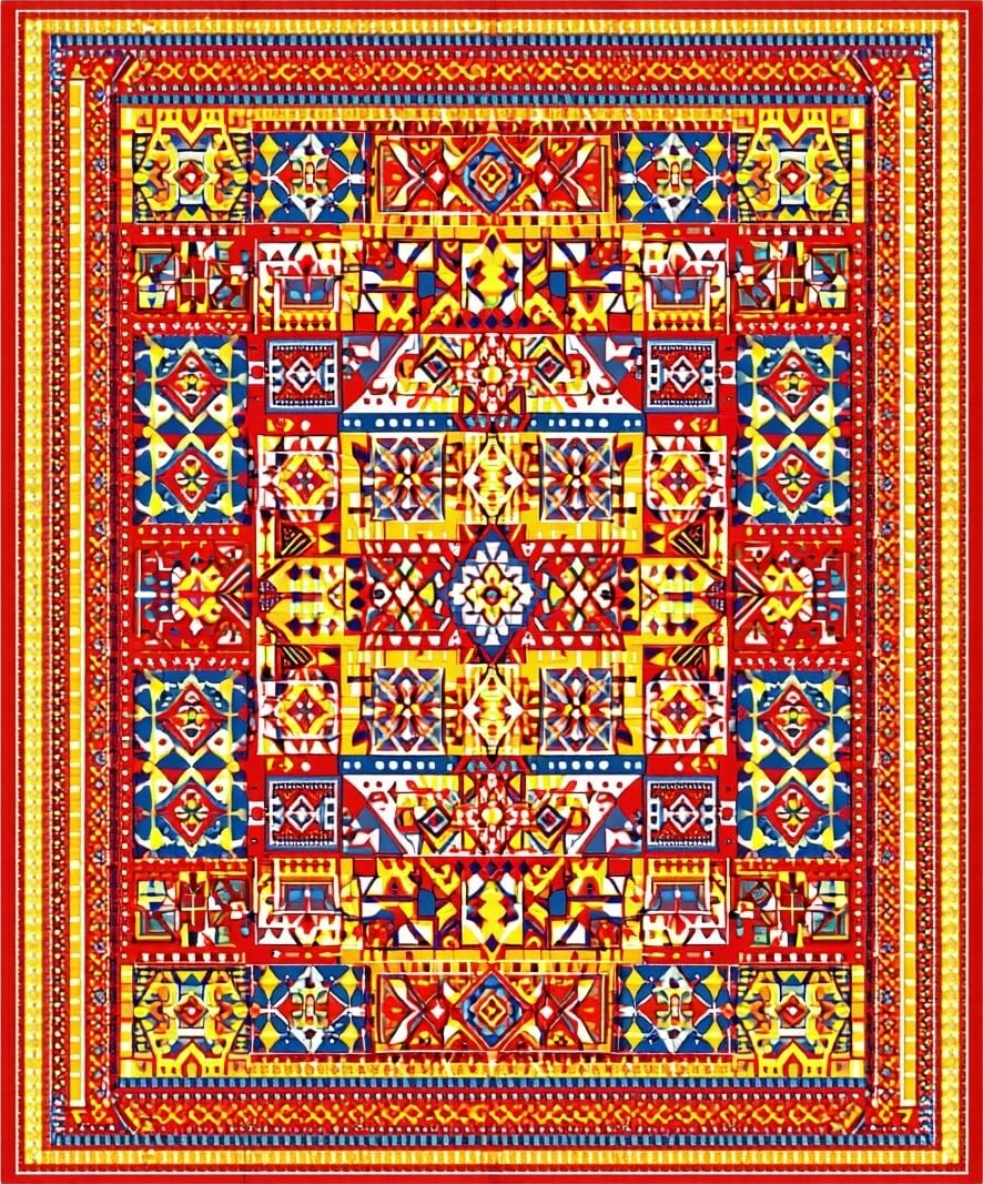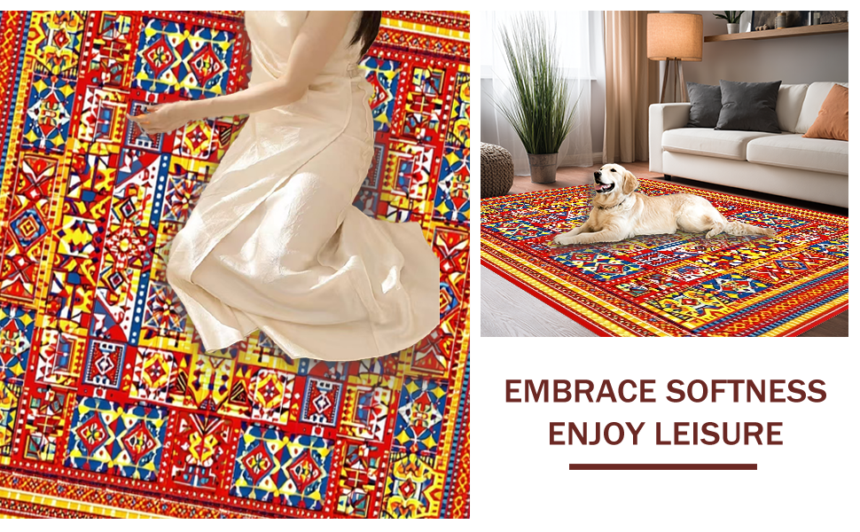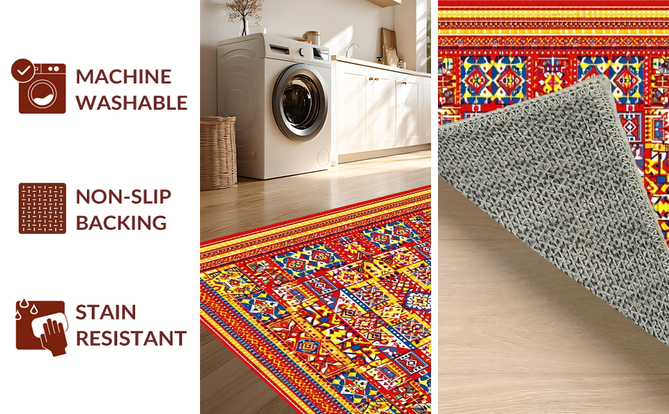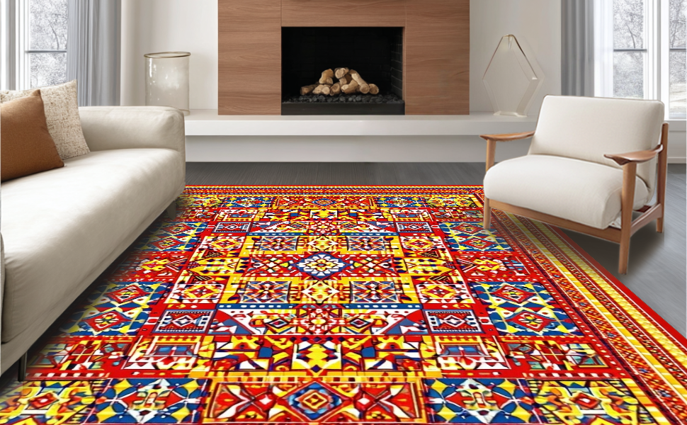 Ultra Soft Area Rug, Non Slip, Stain Resistant, Washable Area Rugs for Living Room, Bedroom, Eclectic Tiled Patterned Piece(Red) Overview: