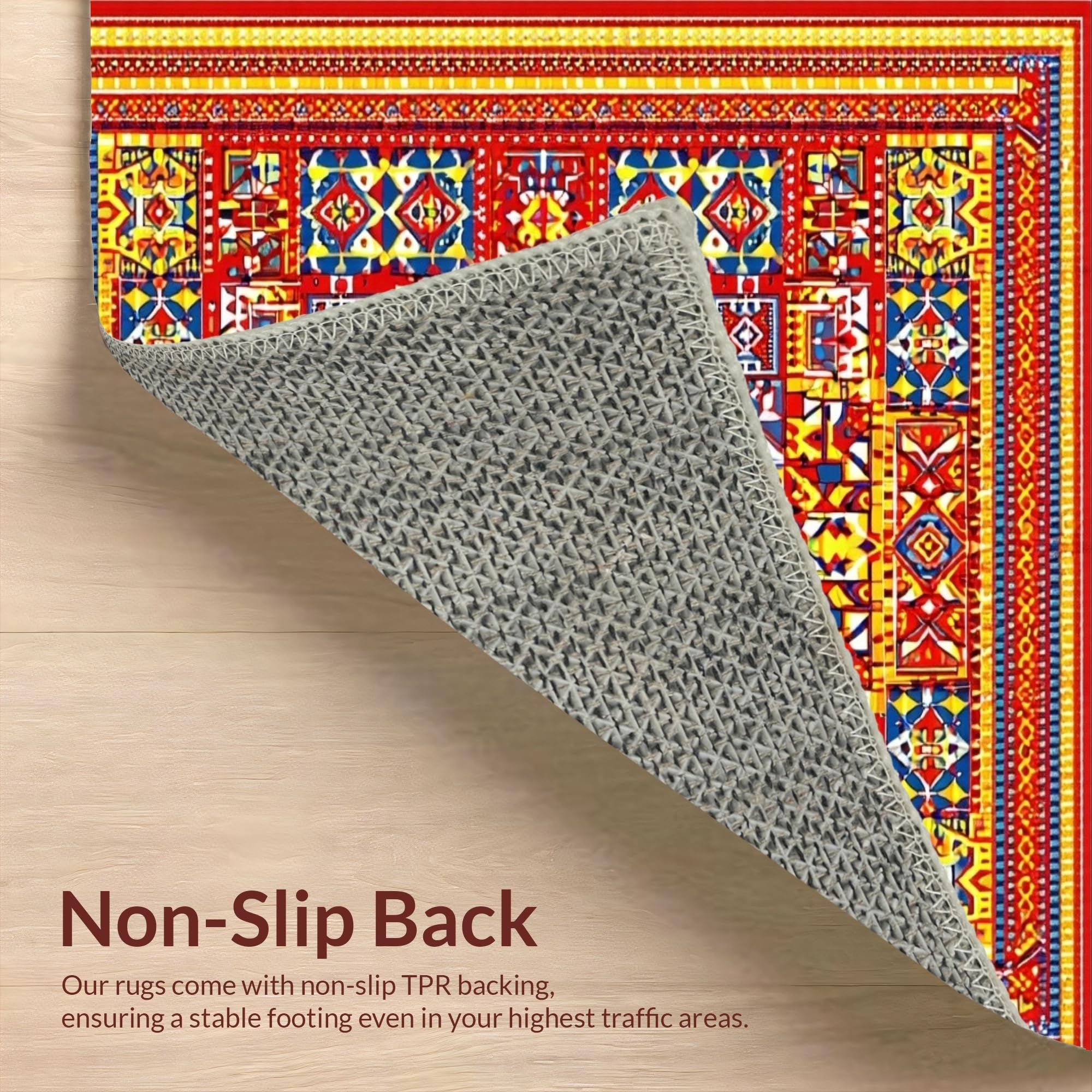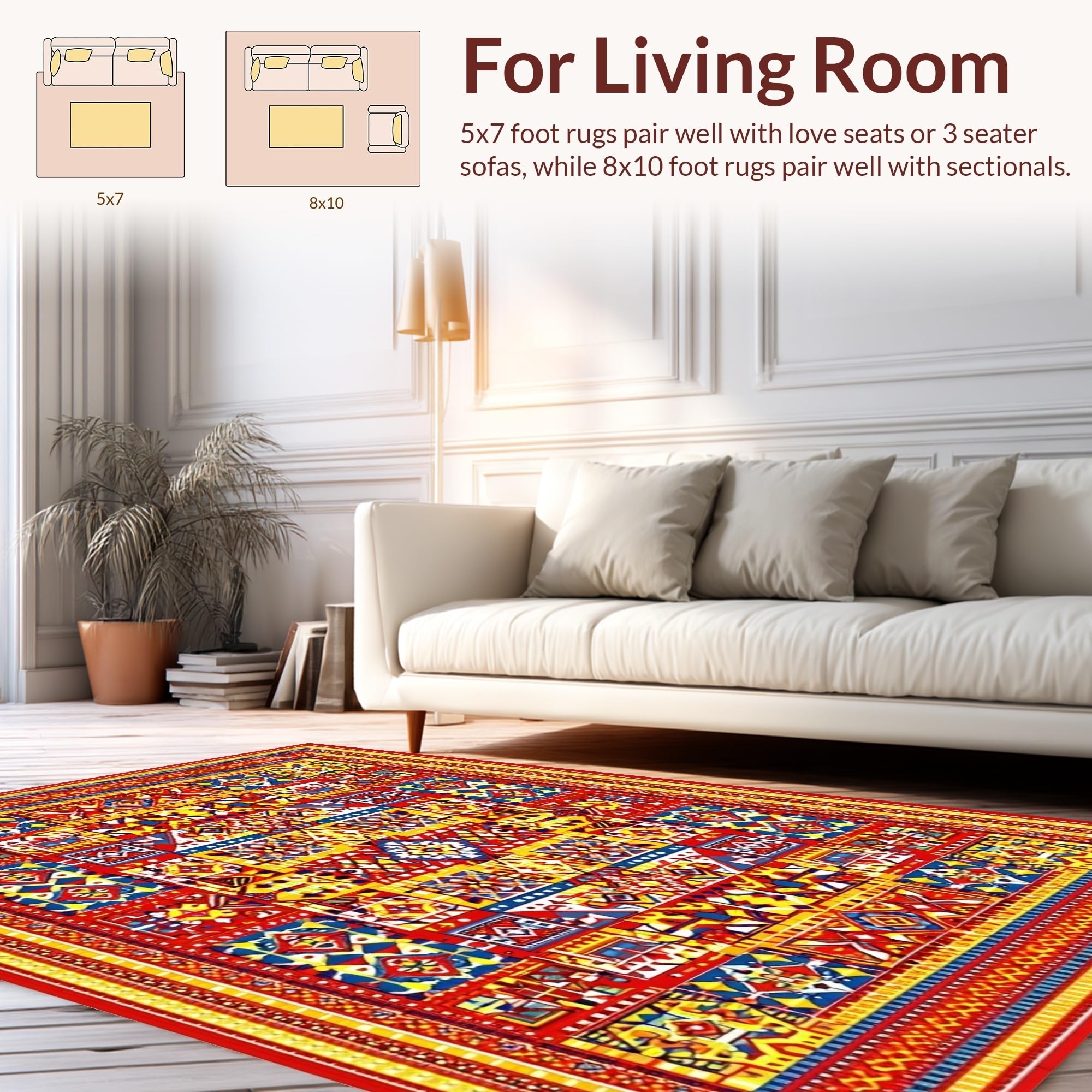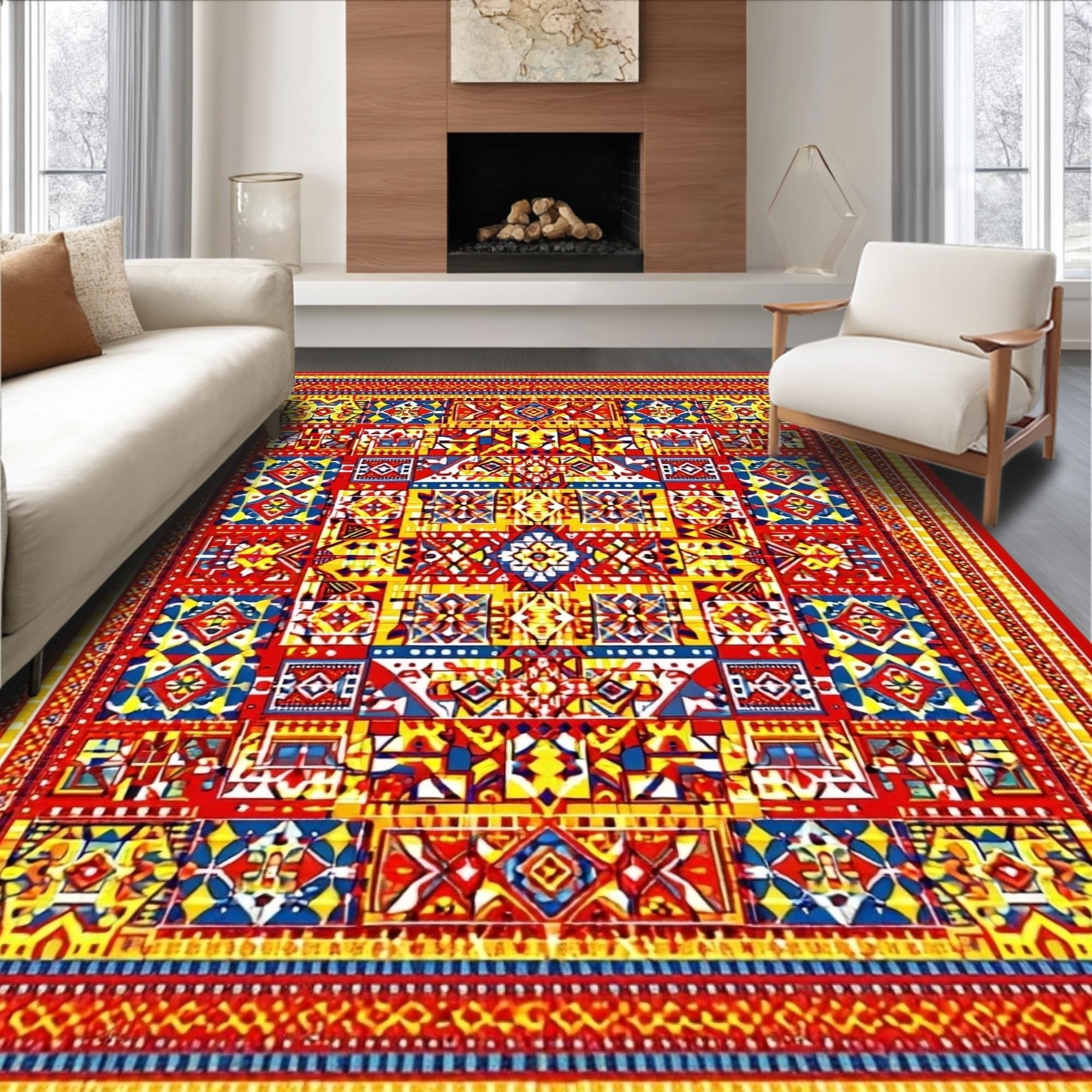 Ultra Soft Area Rug, Non Slip, Stain Resistant, Washable Area Rugs for Living Room, Bedroom, Eclectic Tiled Patterned Piece(Red) Overview: