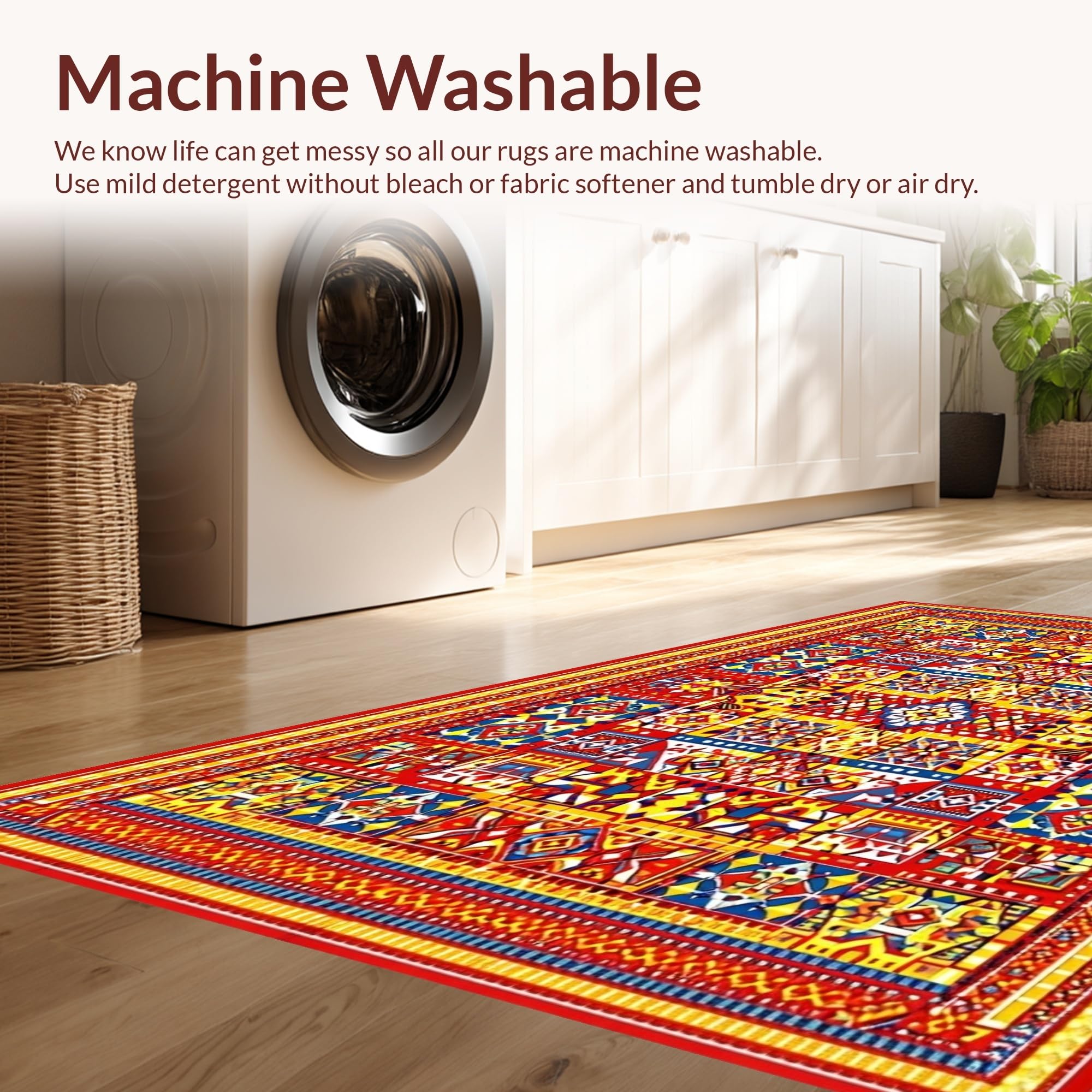 - Machine Washable: Our rugs can be easily thrown in the wash machine.