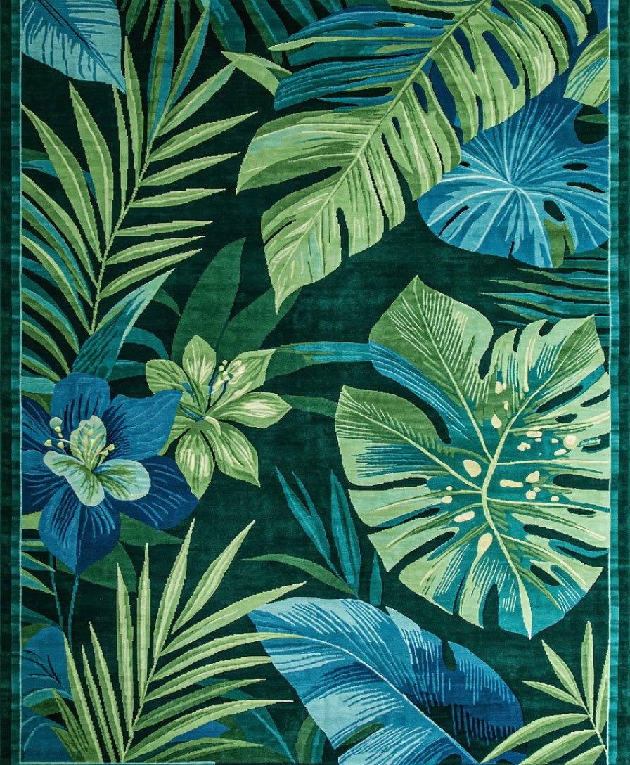 Flatwoven High Traffic Area Rug, Eclectic Tropical Floral Motif, Non Slip, Stain Resistant, Washable Area Rugs for Living Room, Bedroom (Blue) Overview: