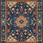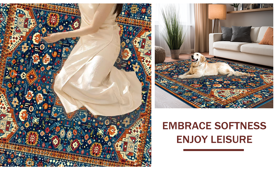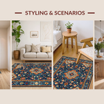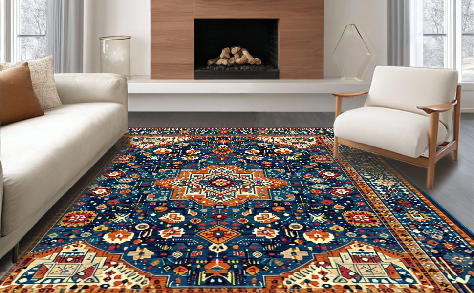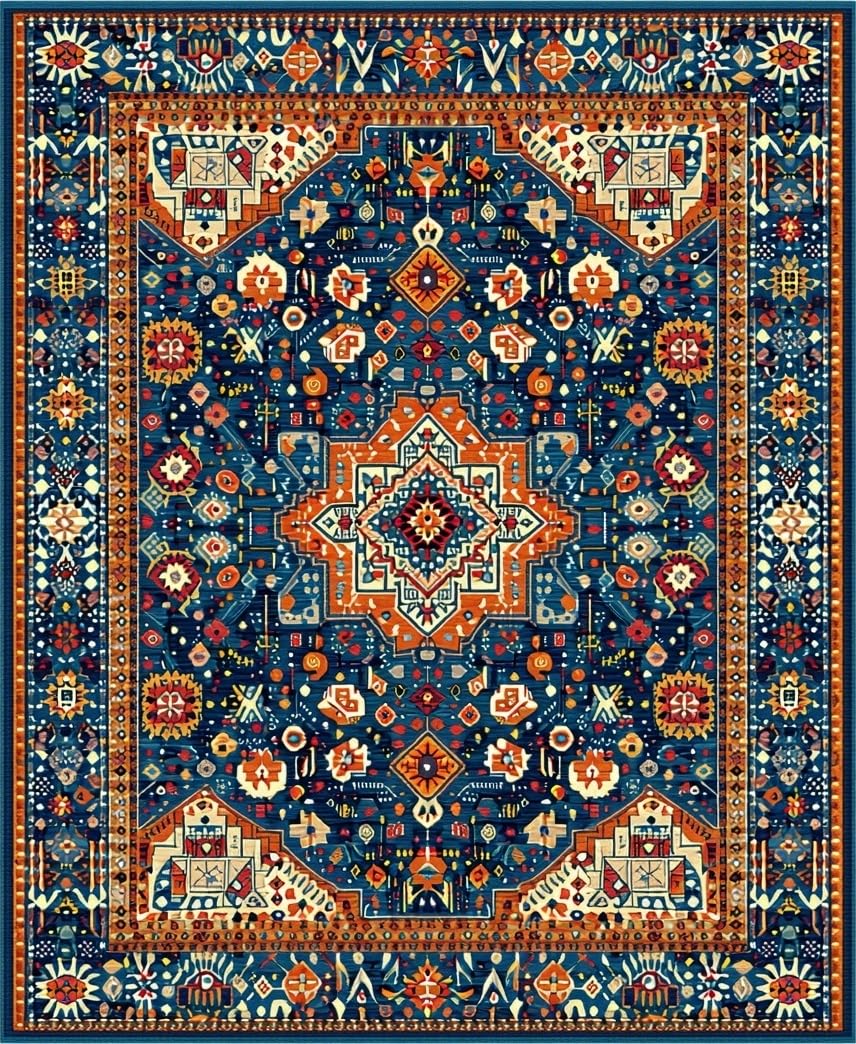Ultra Soft Area Rug, Non Slip, Stain Resistant, Washable Area Rugs for Living Room, Bedroom, Eclectic Vintage Medallion Aesthetic(Blue) Overview: