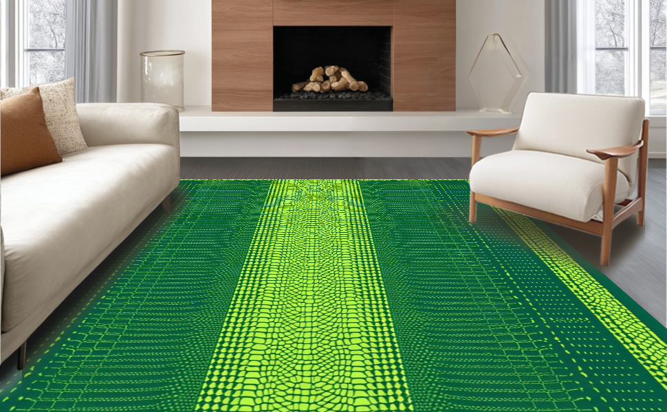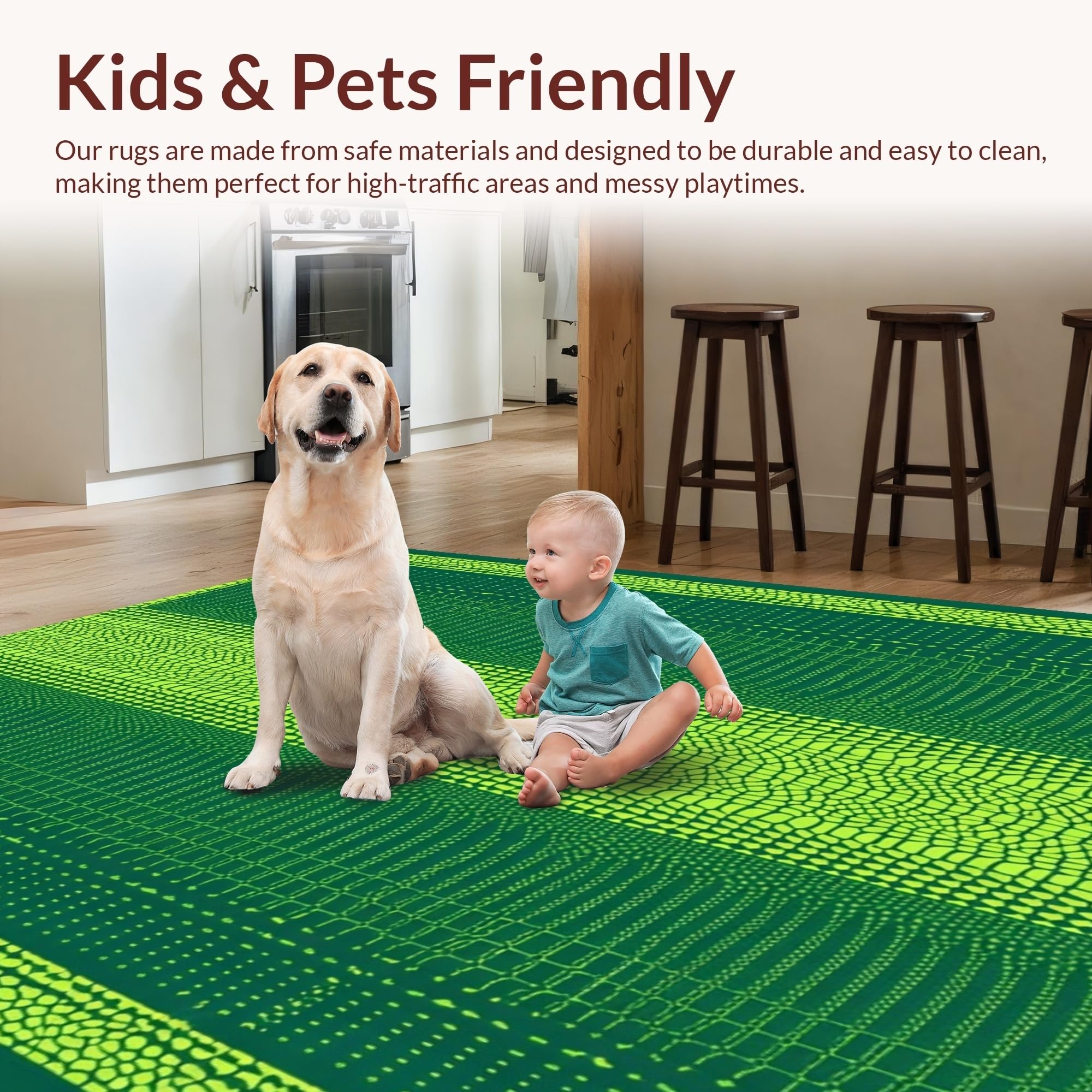 Ultra Soft Area Rug, Non Slip, Stain Resistant, Washable Area Rugs for Living Room, Bedroom, Eclectic Wildlife Cartoonish Design(Green) Overview: