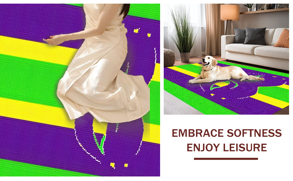 Ultra Soft Area Rug, Non Slip, Stain Resistant, Washable Area Rugs for Living Room, Bedroom, Ecstatic Colorful Celebration Rug(Green) Overview: