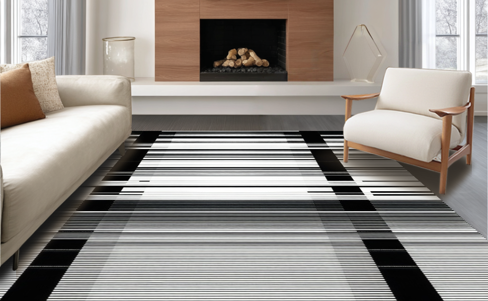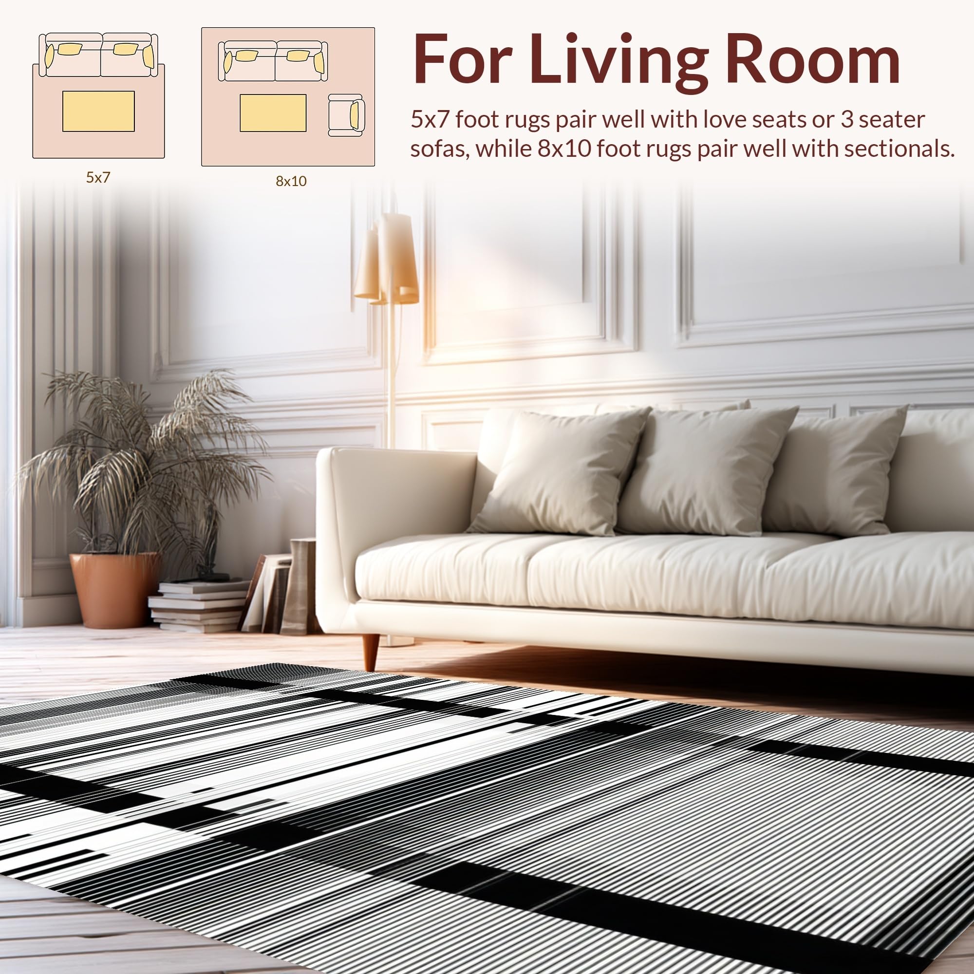 Ultra Soft Area Rug, Non Slip, Stain Resistant, Washable Area Rugs for Living Room, Bedroom, Edgy Modern Symmetrical Lines(Black) Overview: