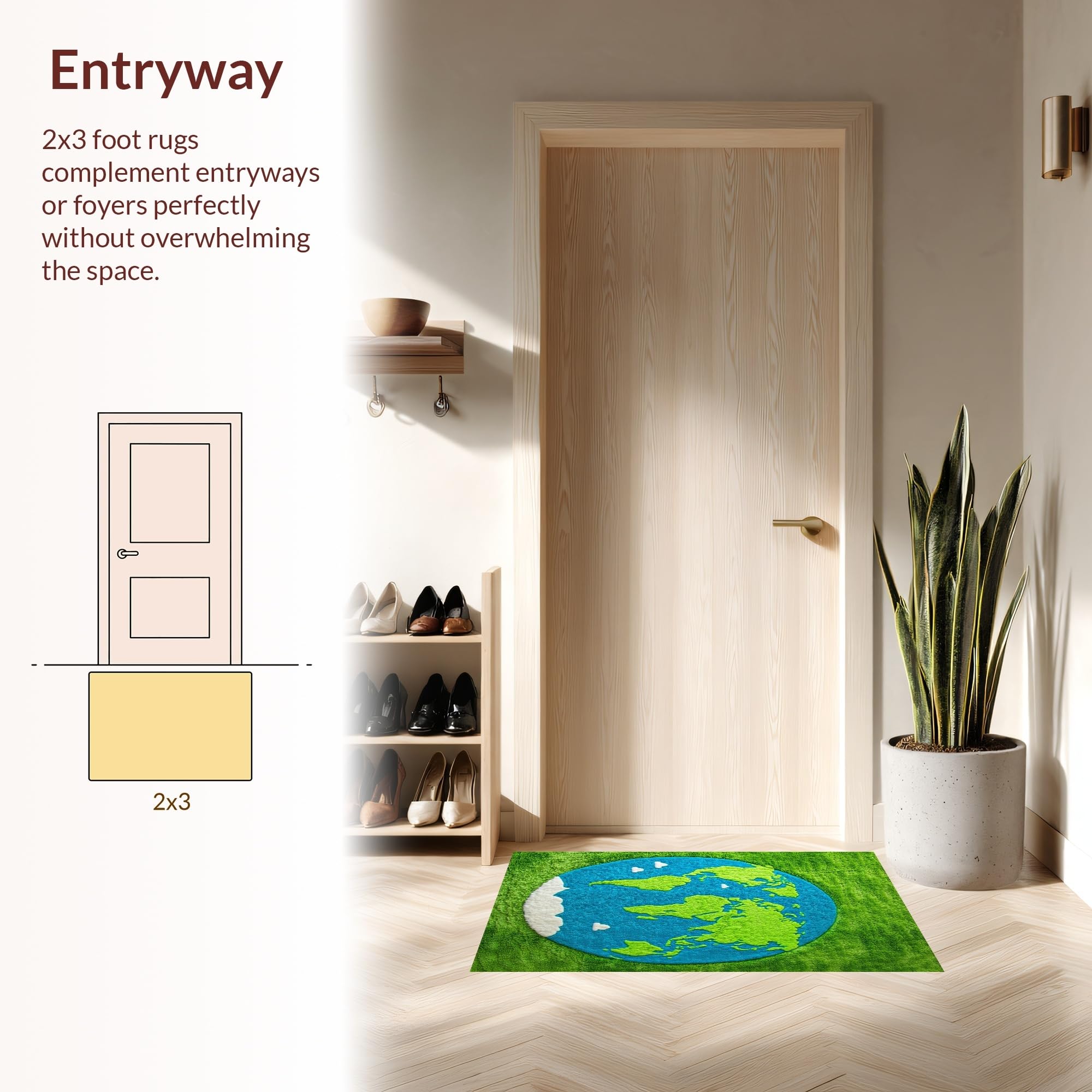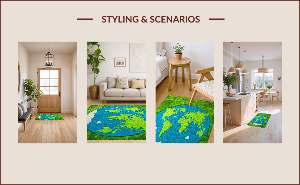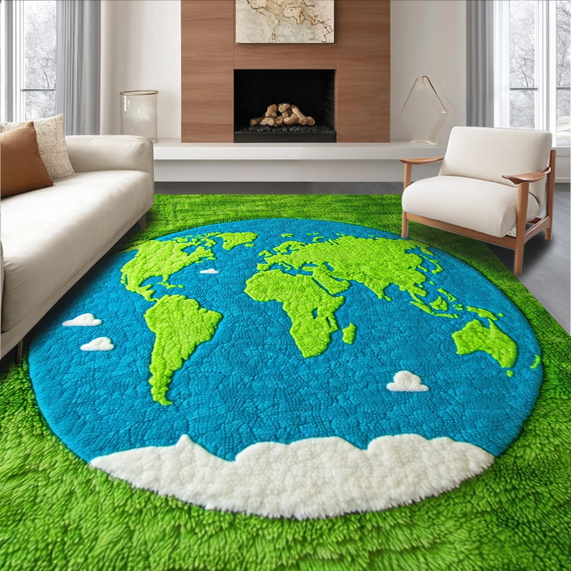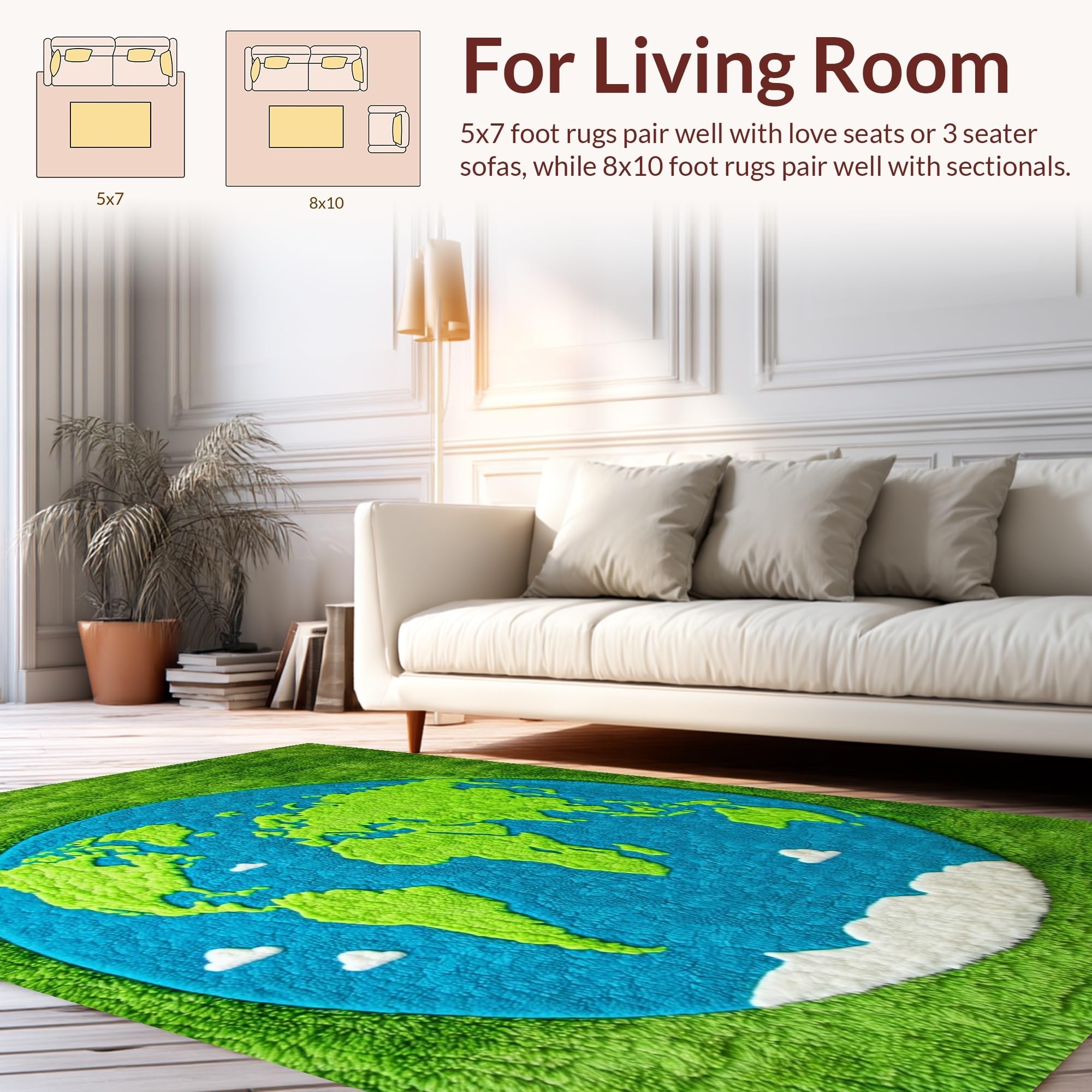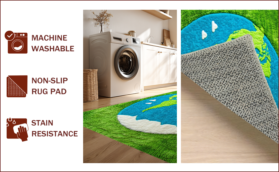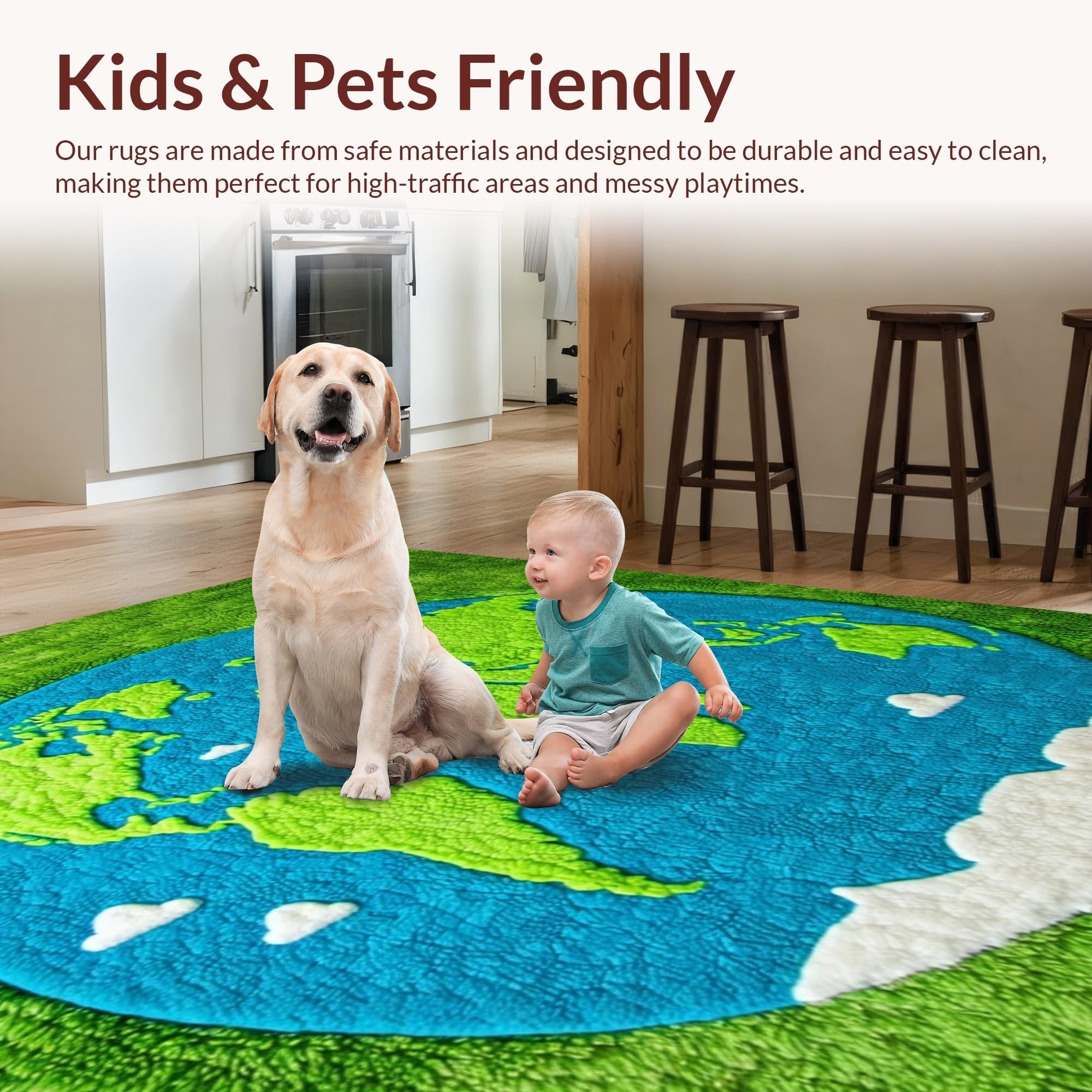 Ultra Soft Area Rug, Non Slip, Stain Resistant, Washable Area Rugs for Living Room, Bedroom, Educational Green World Map Rug for Kids Classroom(Green) Overview: