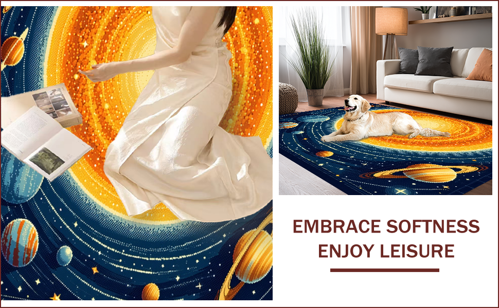 Ultra Soft Area Rug, Non Slip, Stain Resistant, Washable Area Rugs for Living Room, Bedroom, Educational Planet Theme Bedroom Round Carpet(Orange) Overview: