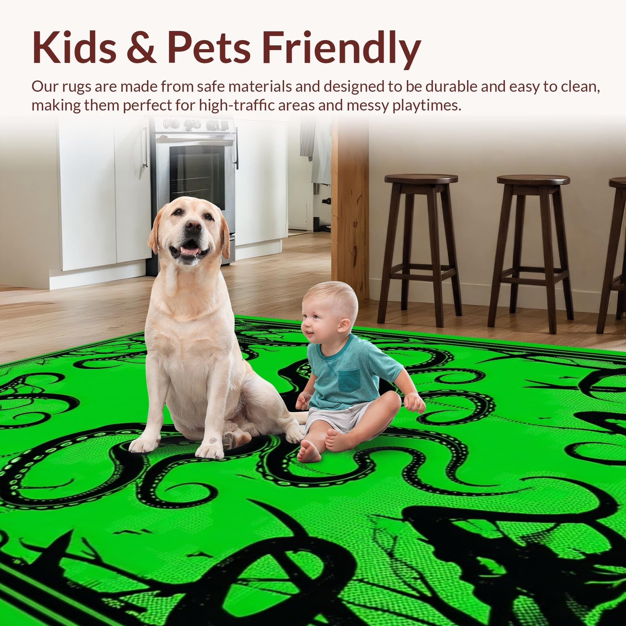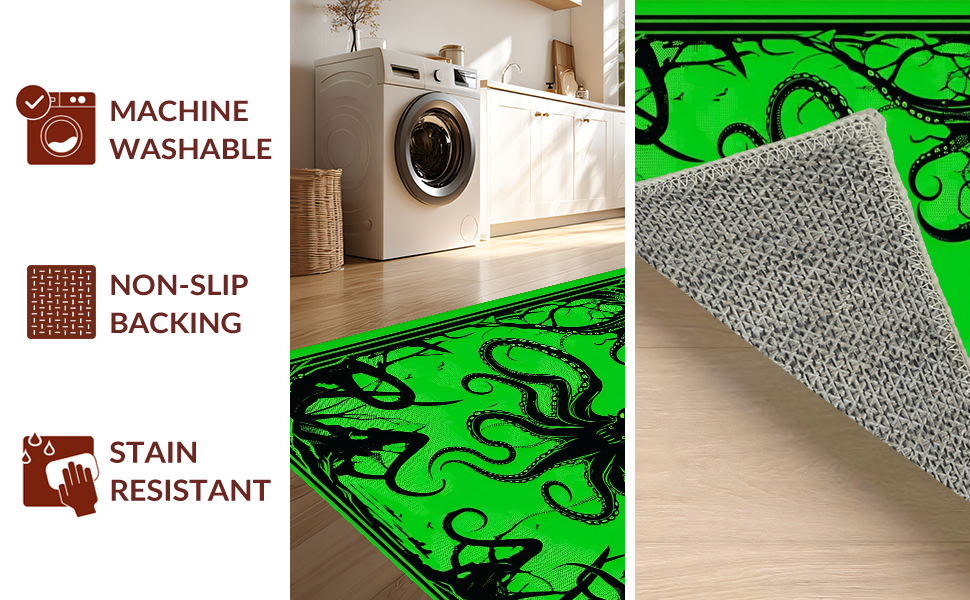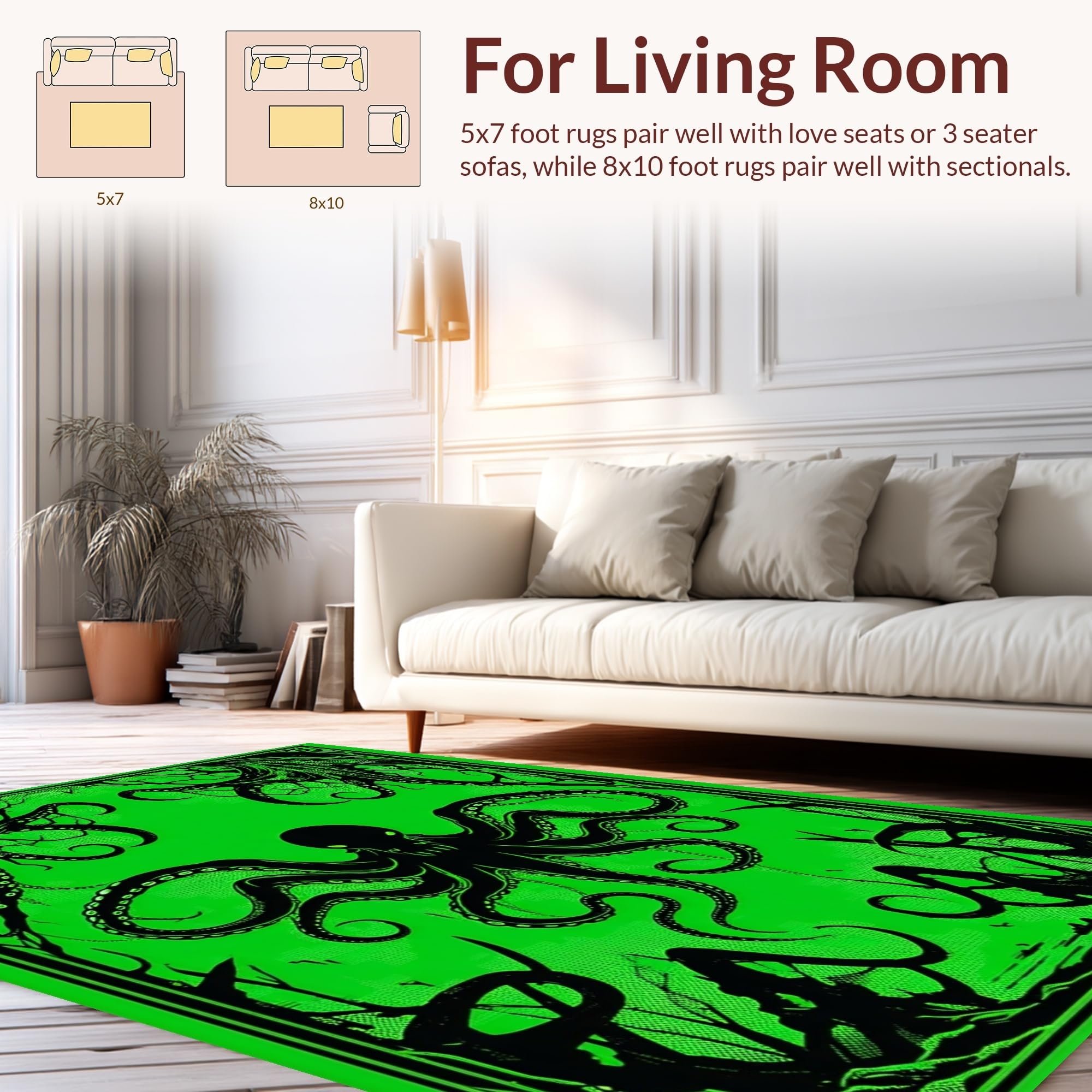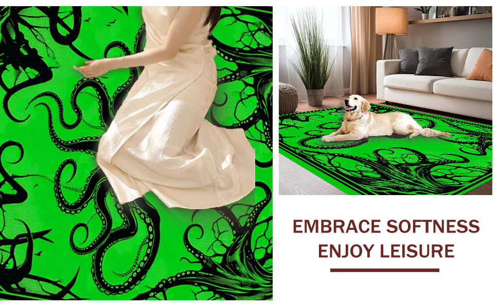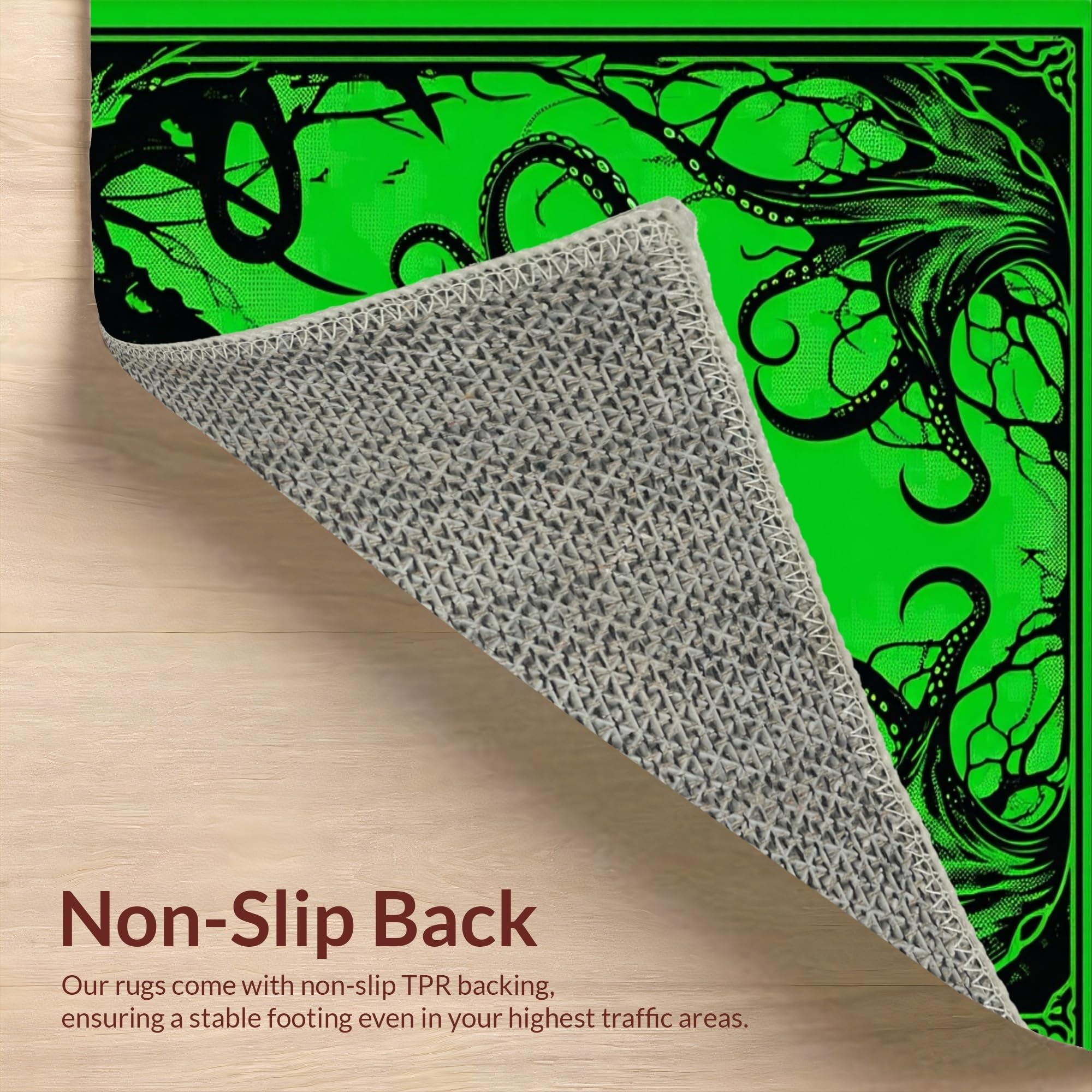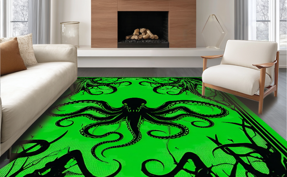 Ultra Soft Area Rug, Non Slip, Stain Resistant, Washable Area Rugs for Living Room, Bedroom, Eerie Nautical Tentacle Aesthetic(Green) Overview: