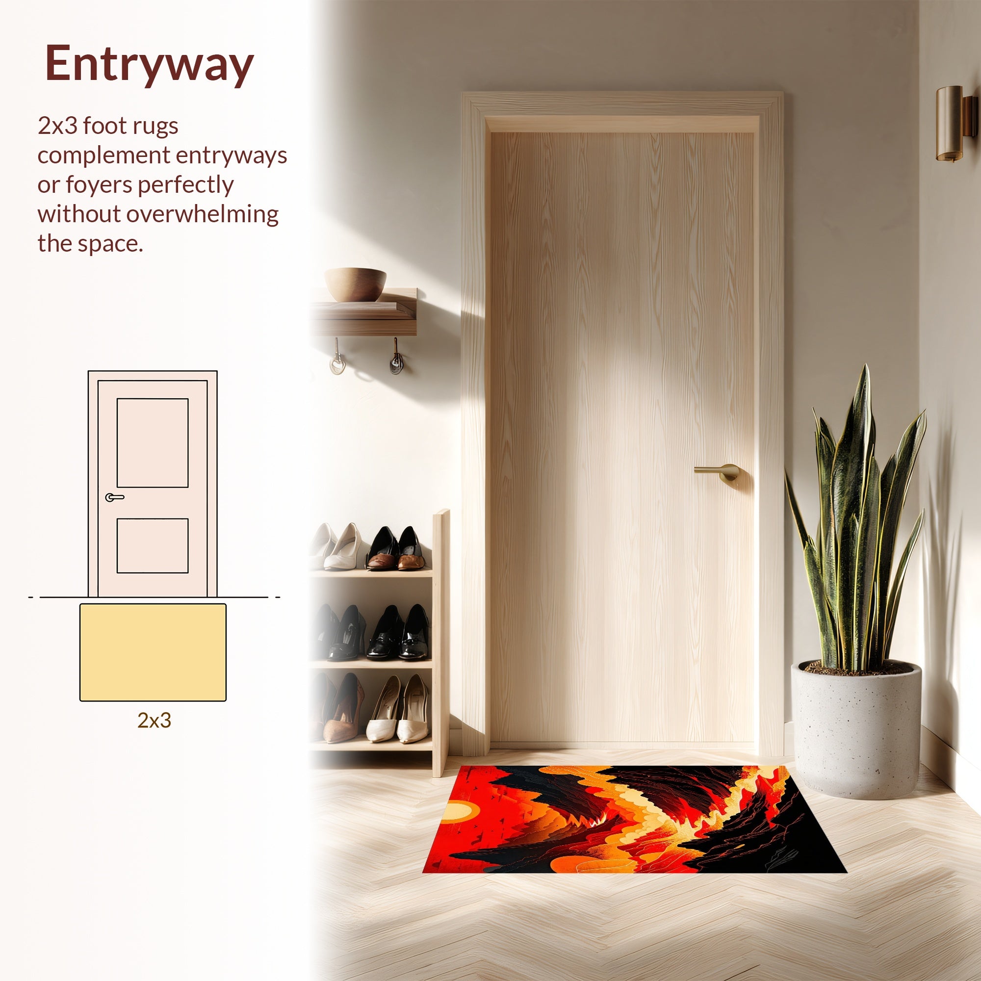 Flatwoven High Traffic Area Rug, Electric Orange Swirling Design, Non Slip, Stain Resistant, Washable Area Rugs for Living Room, Bedroom (Red) Overview: