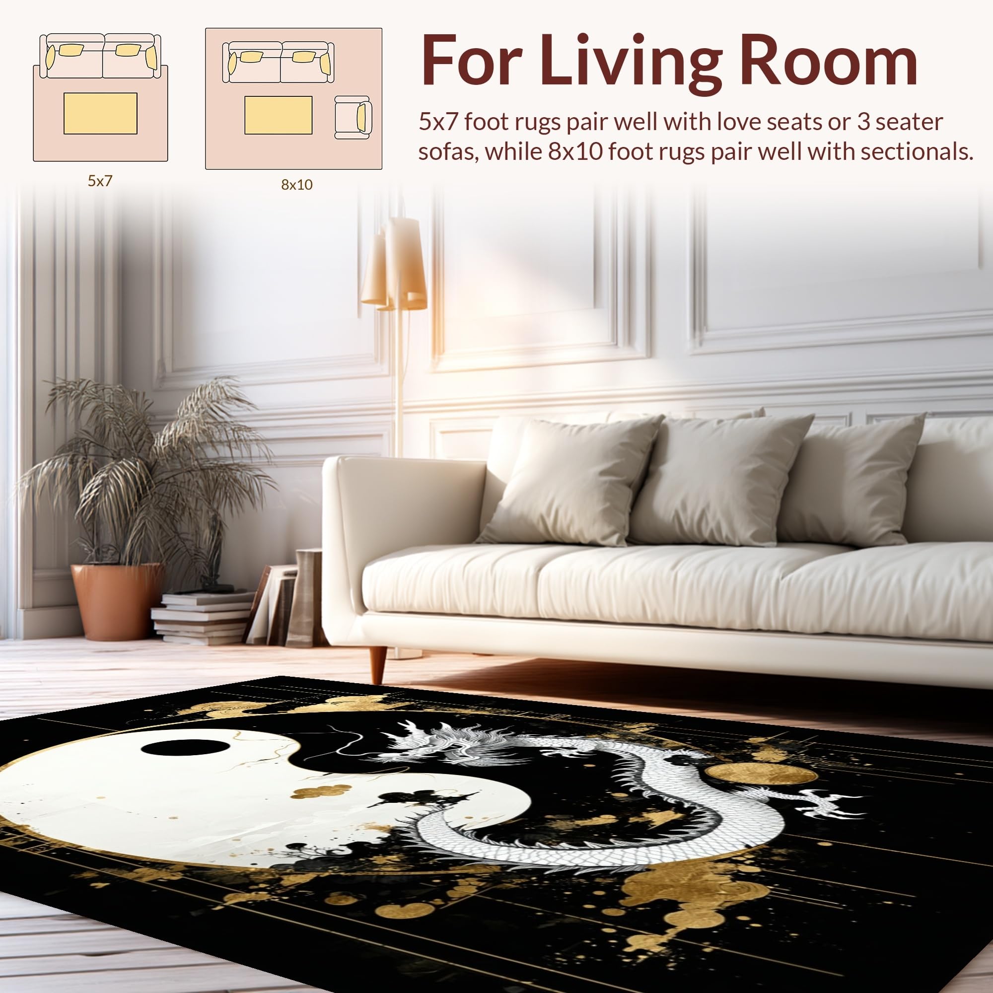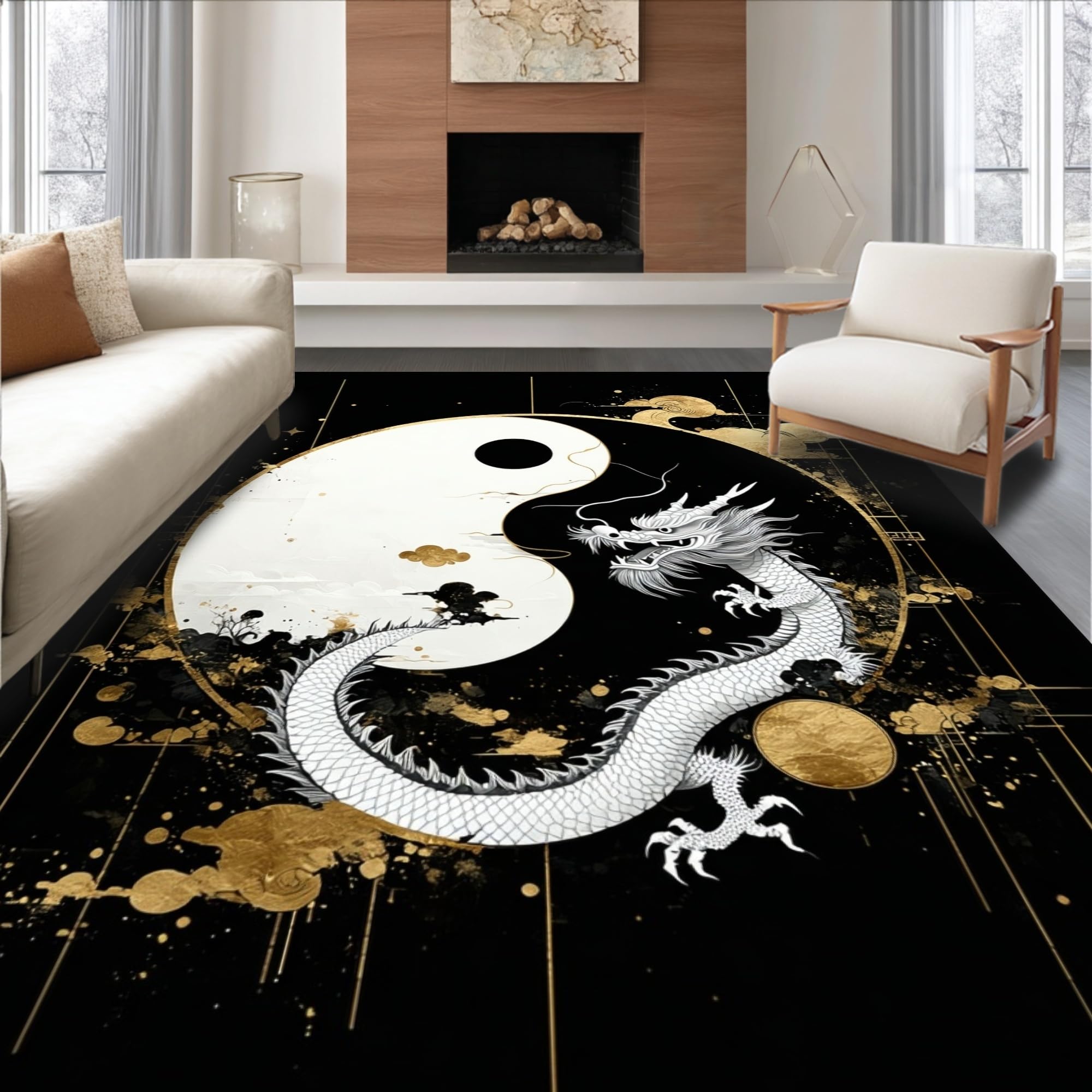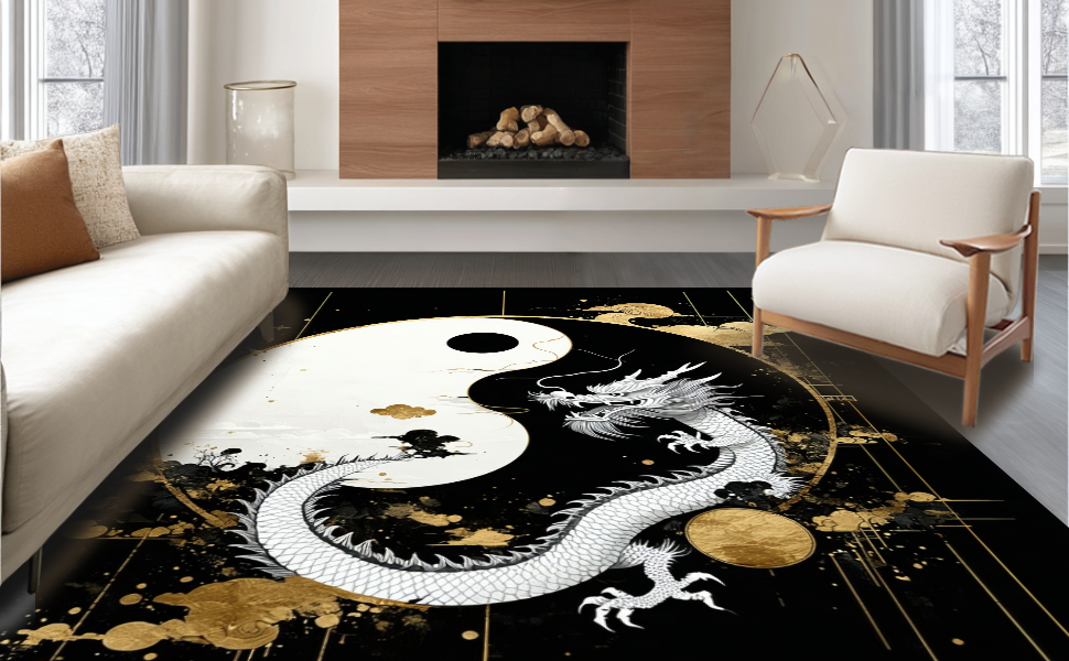 Ultra Soft Area Rug, Non Slip, Stain Resistant, Washable Area Rugs for Living Room, Bedroom, Elegant 3D Yin Yang Aesthetic(White) Overview: