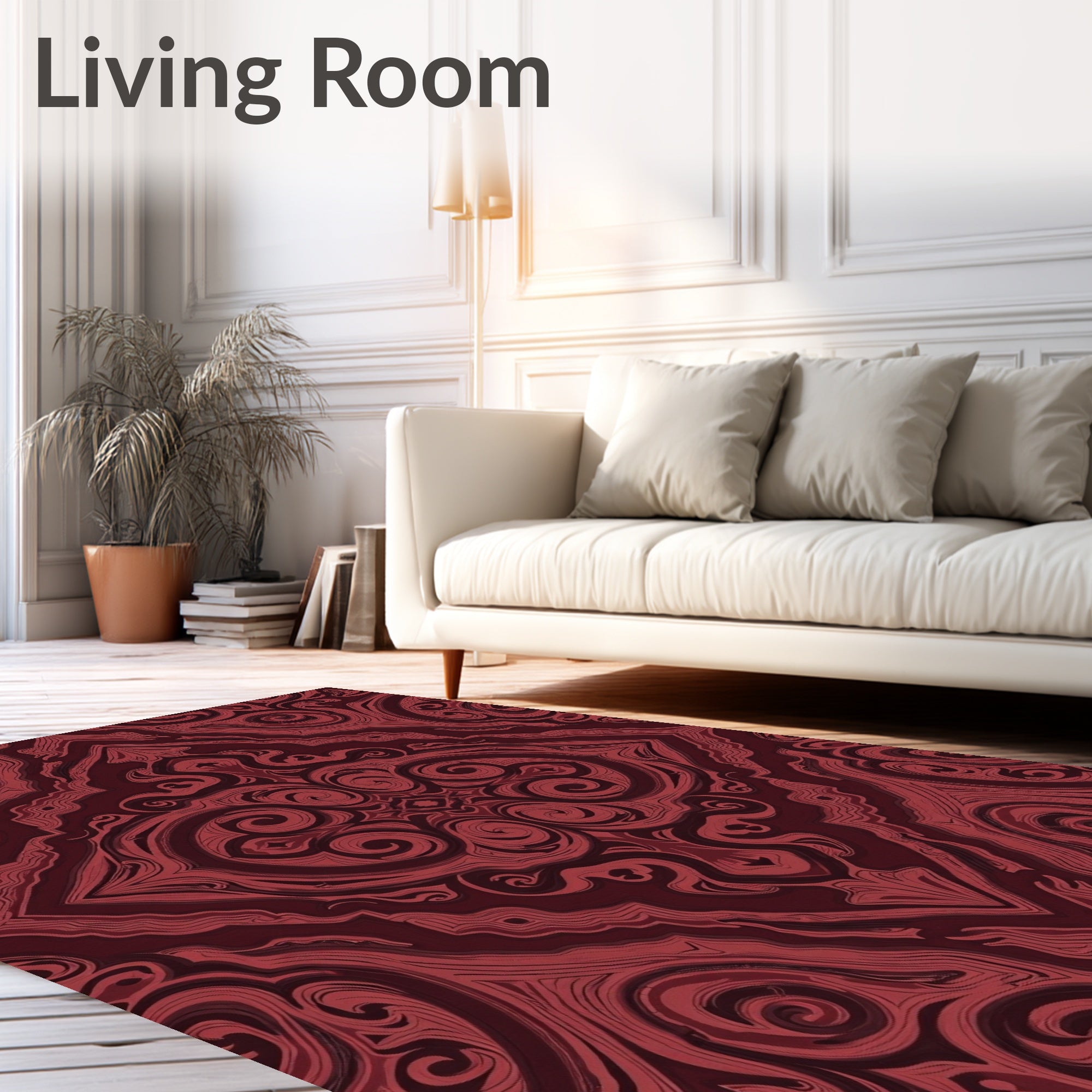 Ultra Soft Area Rug, Non Slip, Stain Resistant, Washable Area Rugs for Living Room, Bedroom, Elegant Abstract Damask Swirl Classic Traditional Flooring(Red) Overview: