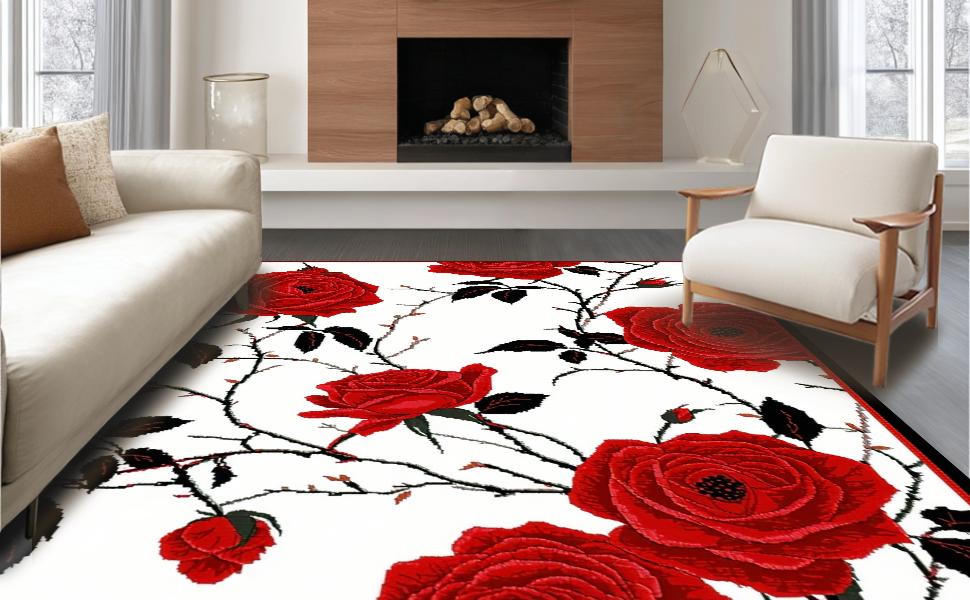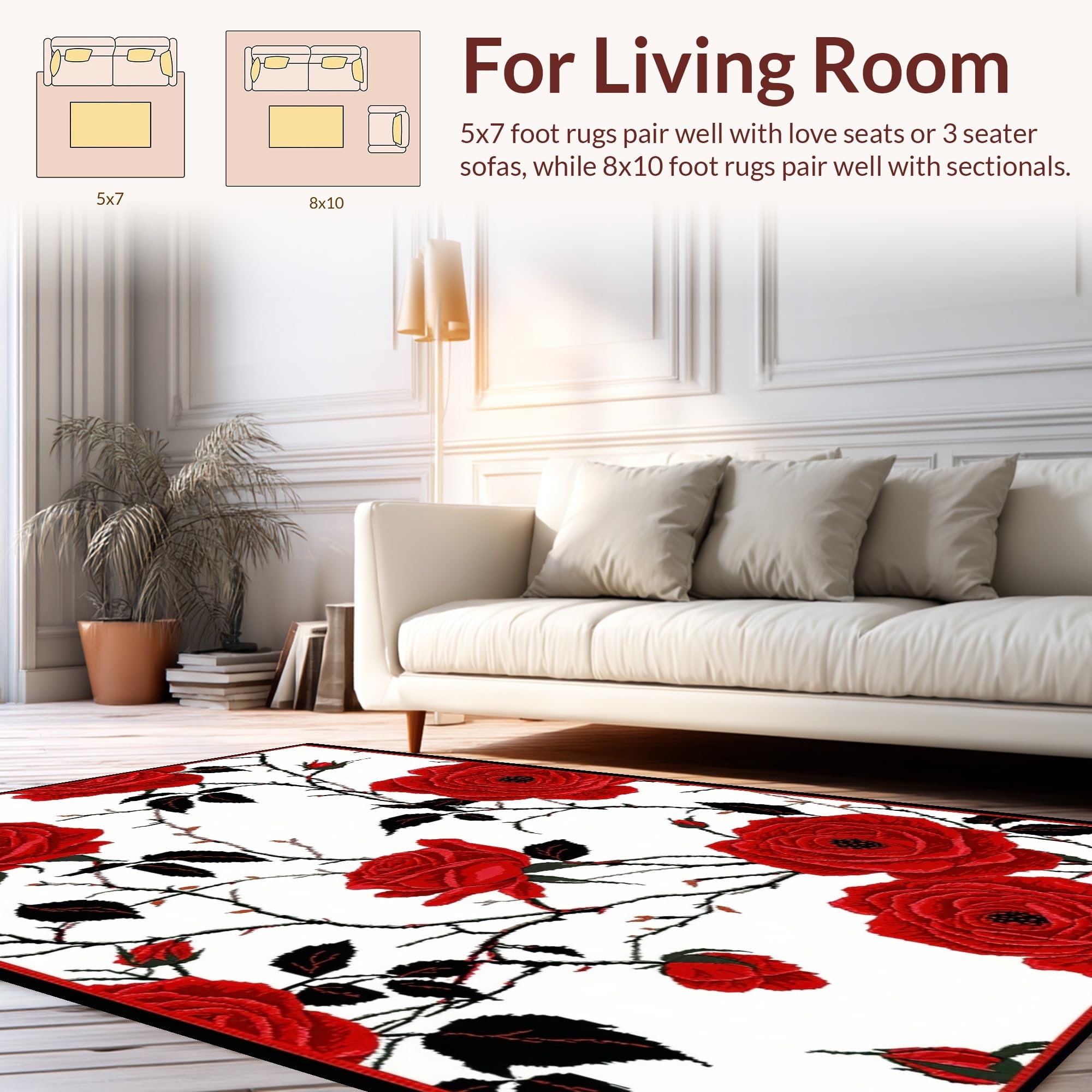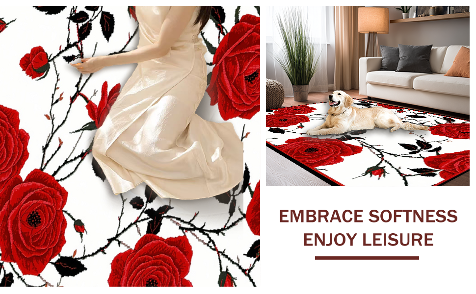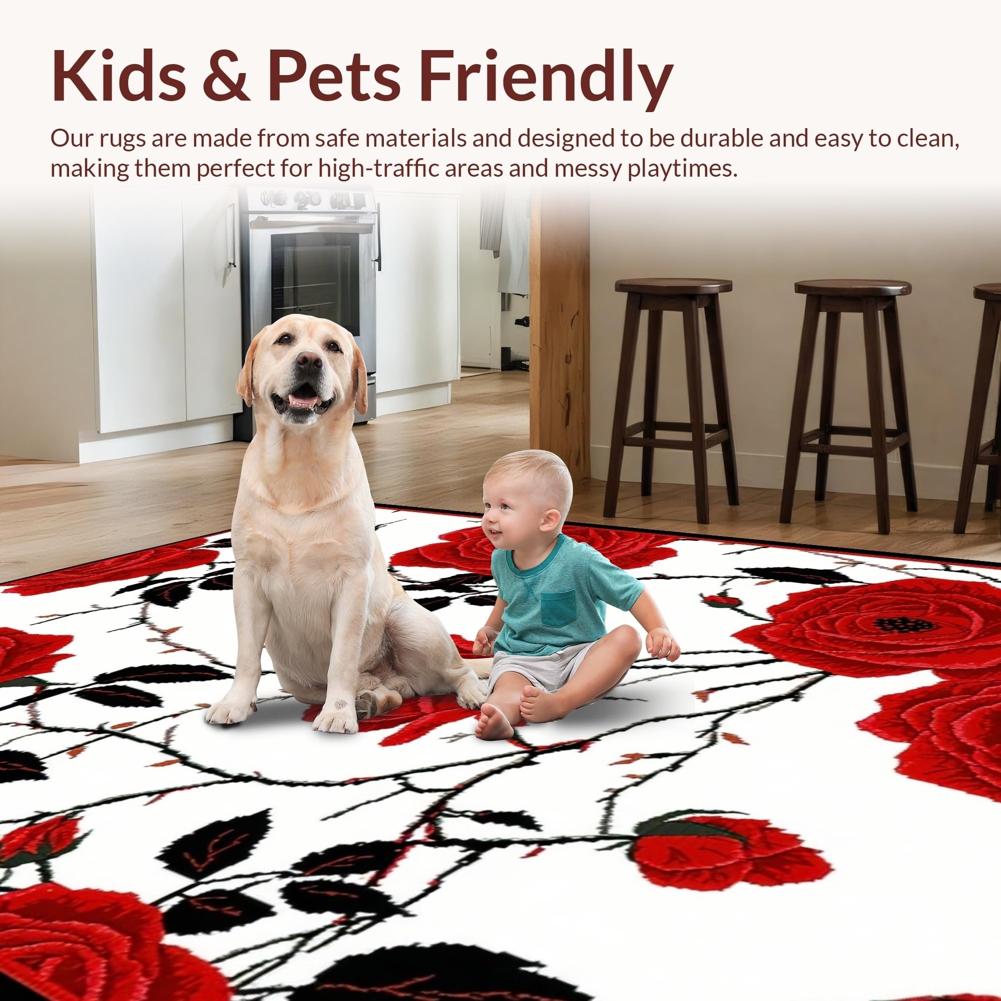 Ultra Soft Area Rug, Non Slip, Stain Resistant, Washable Area Rugs for Living Room, Bedroom, Elegant Abstract Floral Arrangement(Red) Overview: