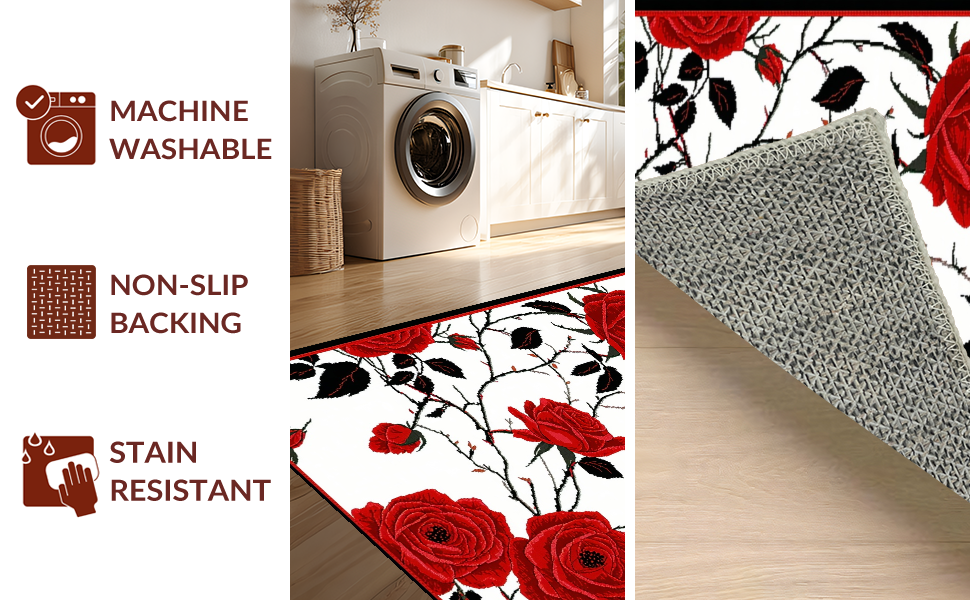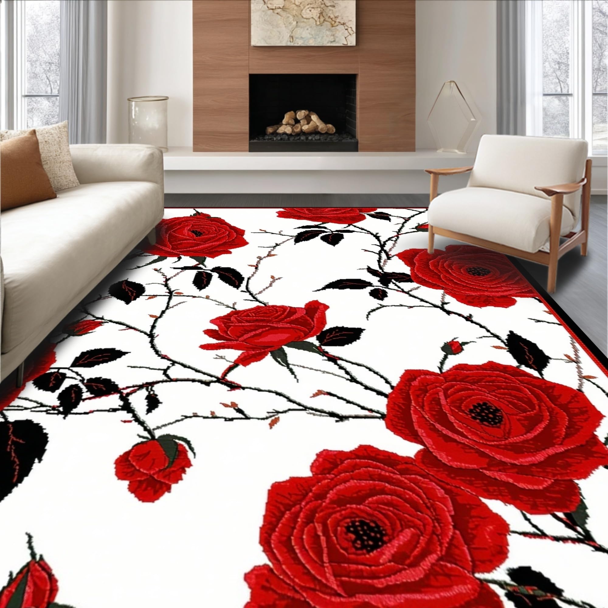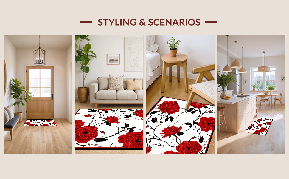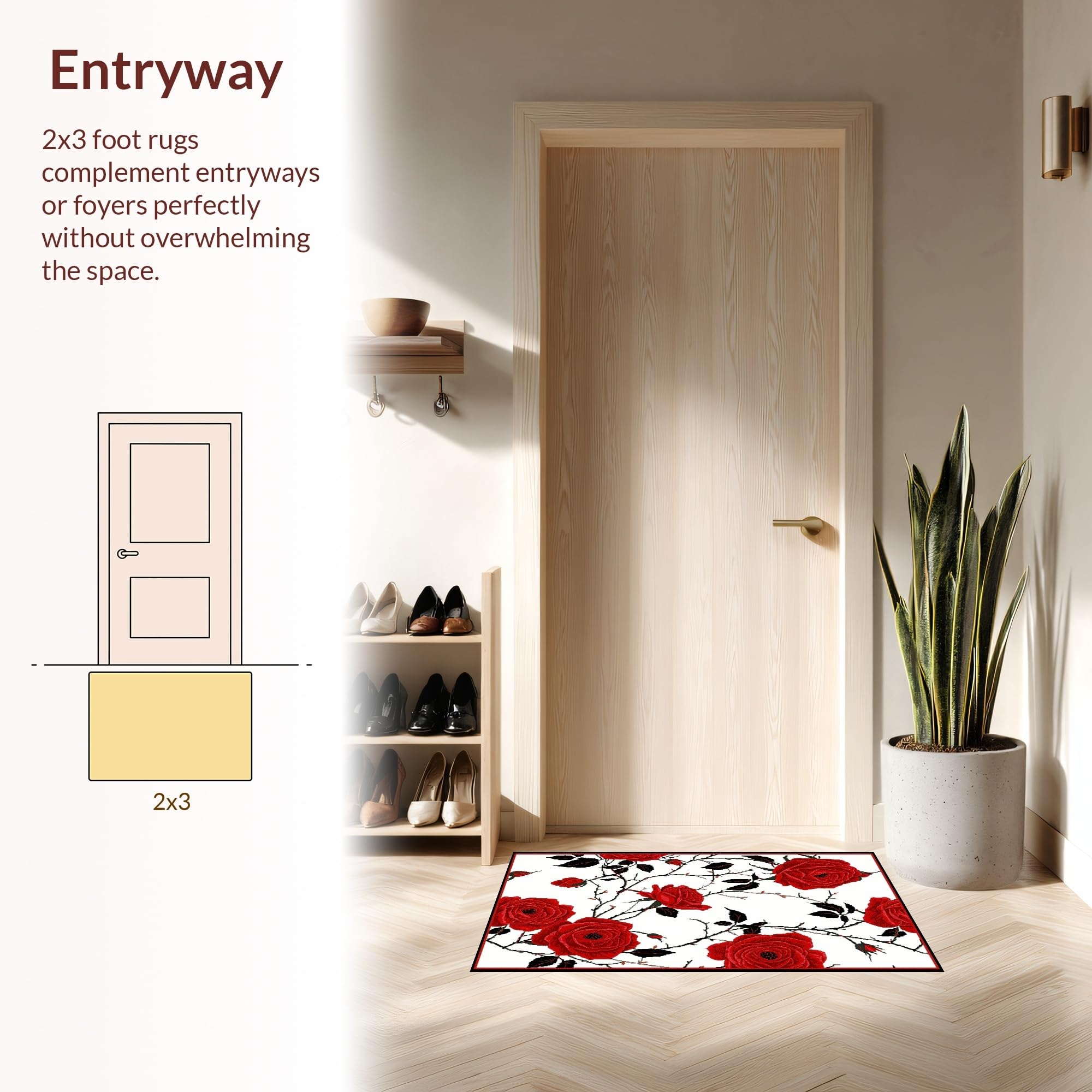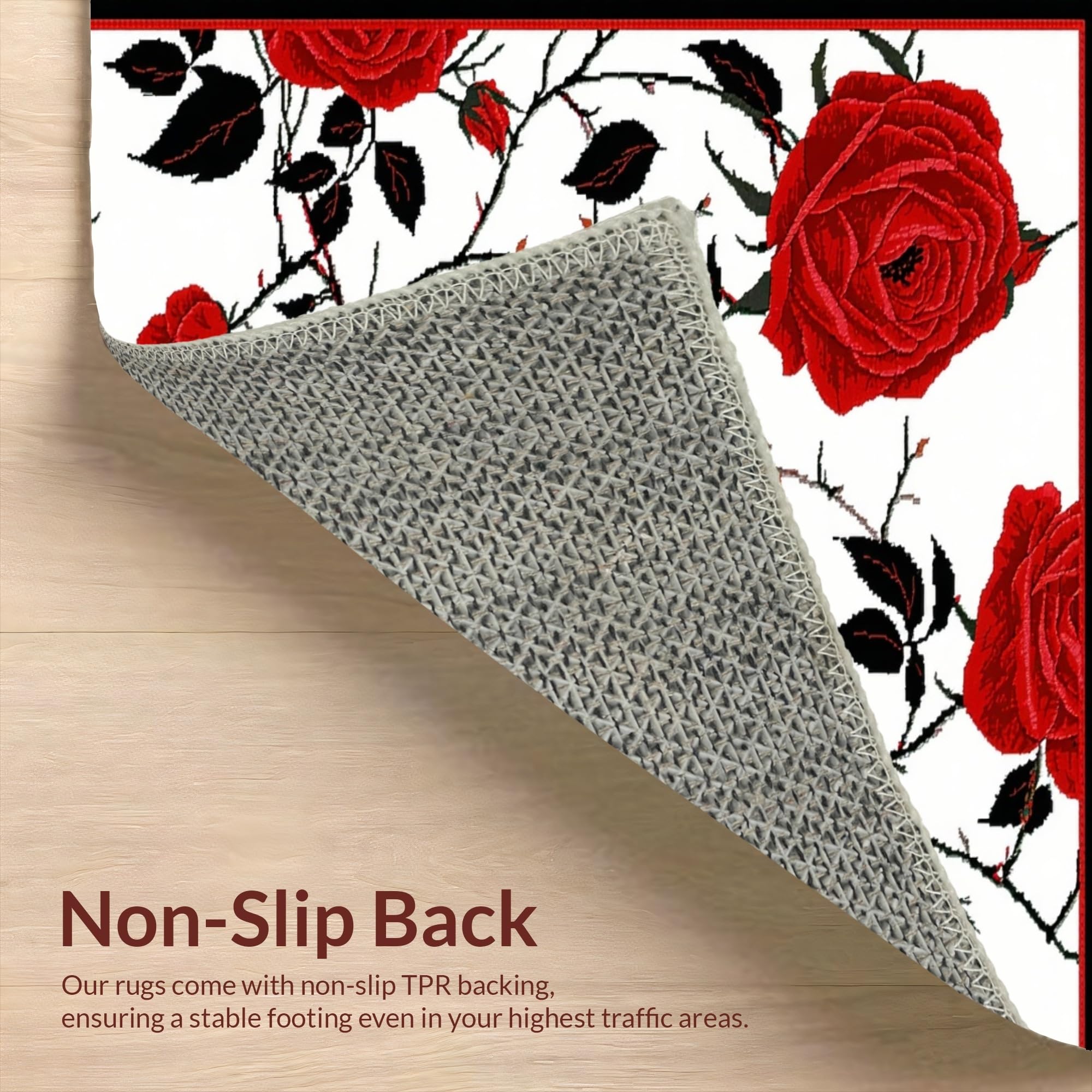 Ultra Soft Area Rug, Non Slip, Stain Resistant, Washable Area Rugs for Living Room, Bedroom, Elegant Abstract Floral Arrangement(Red) Overview: