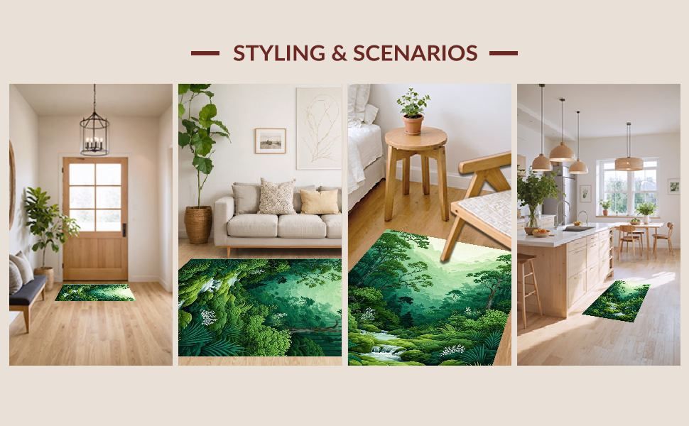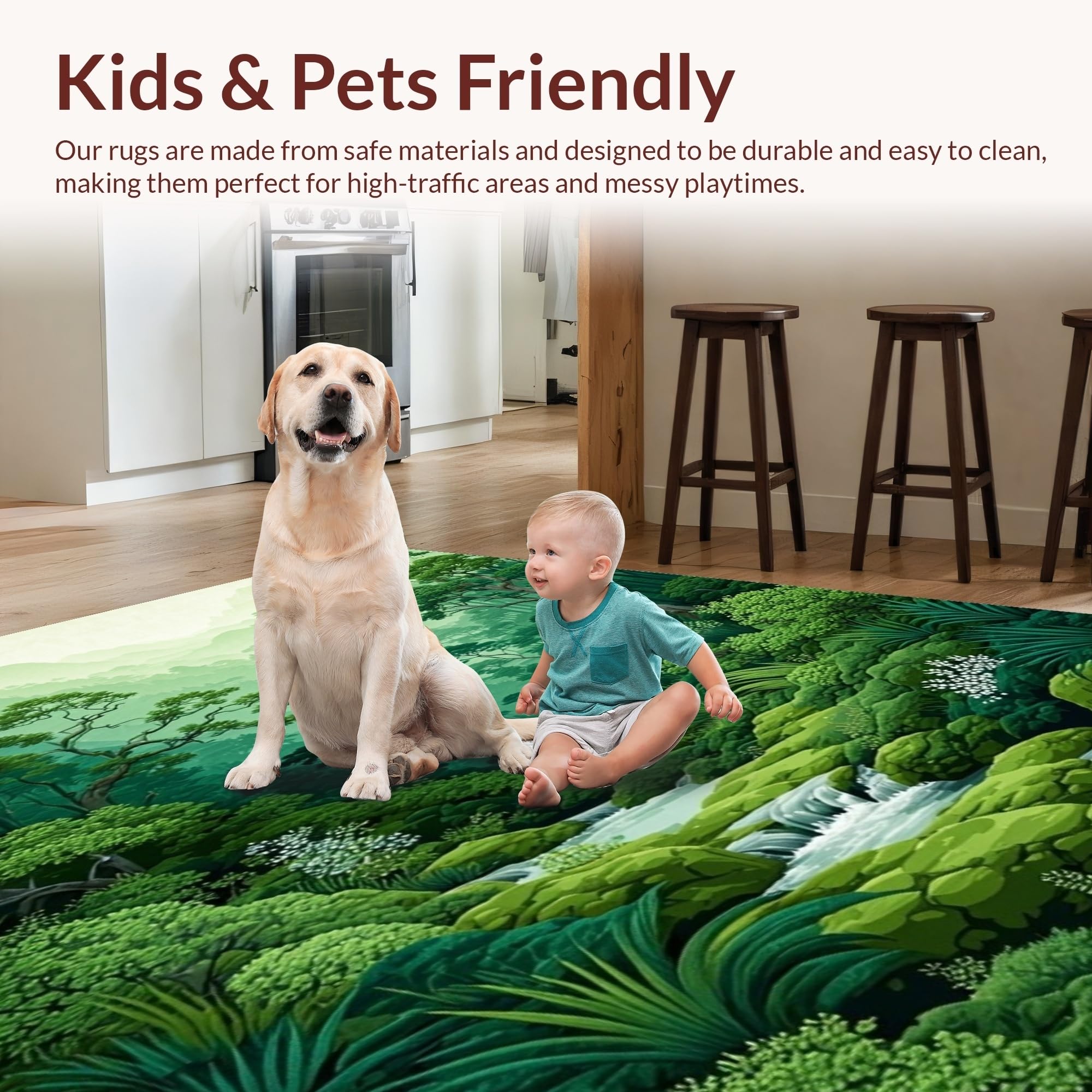 Ultra Soft Area Rug, Non Slip, Stain Resistant, Washable Area Rugs for Living Room, Bedroom, Elegant Abstract Forest Green(Green) Overview: