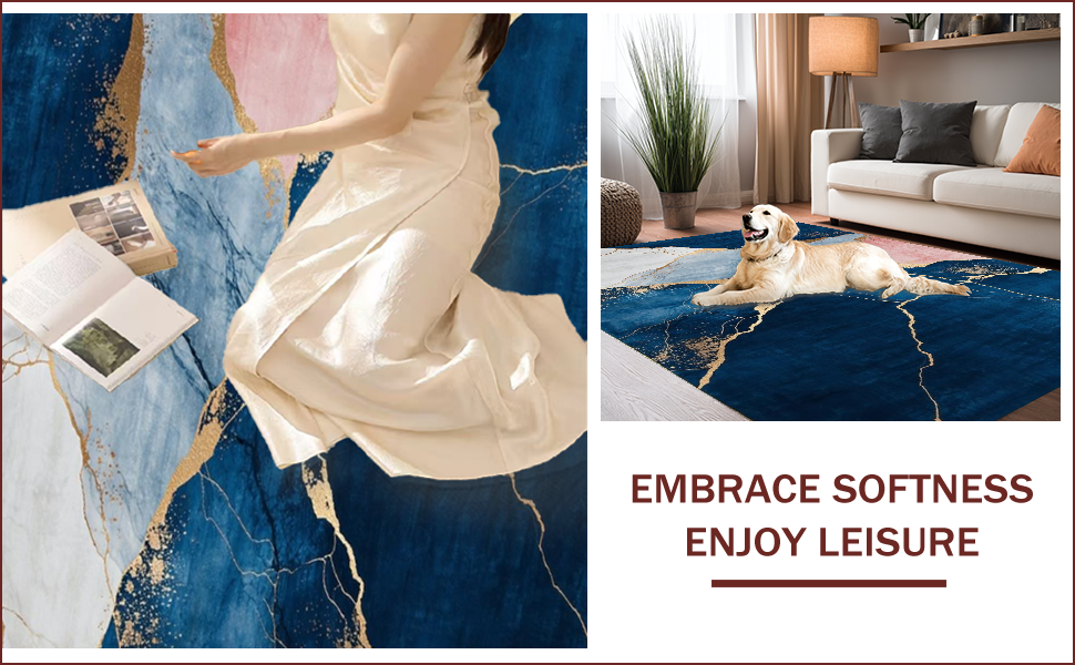 Ultra Soft Area Rug, Non Slip, Stain Resistant, Washable Area Rugs for Living Room, Bedroom, Elegant Abstract Marble Motif(Blue) Overview: