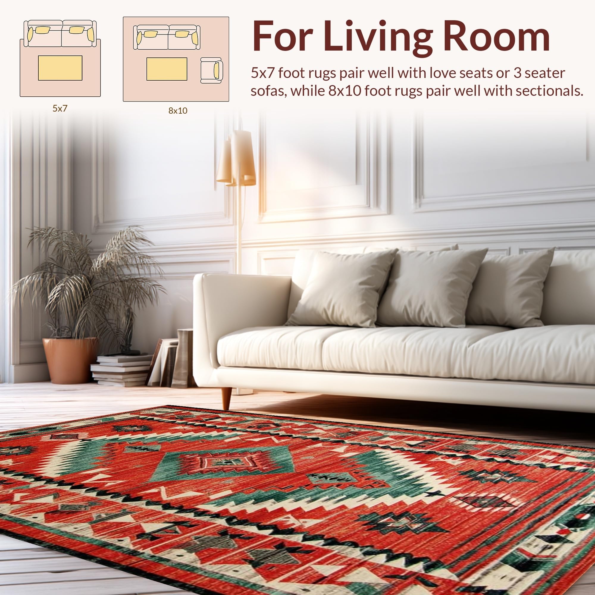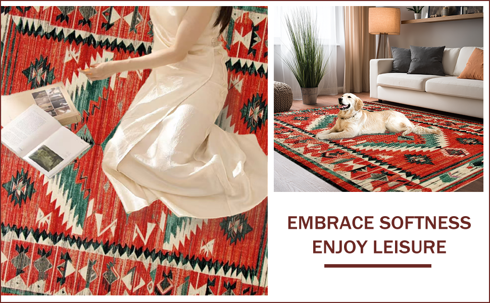 Ultra Soft Area Rug, Non Slip, Stain Resistant, Washable Area Rugs for Living Room, Bedroom, Elegant Abstract Red Motif(Red) Overview: