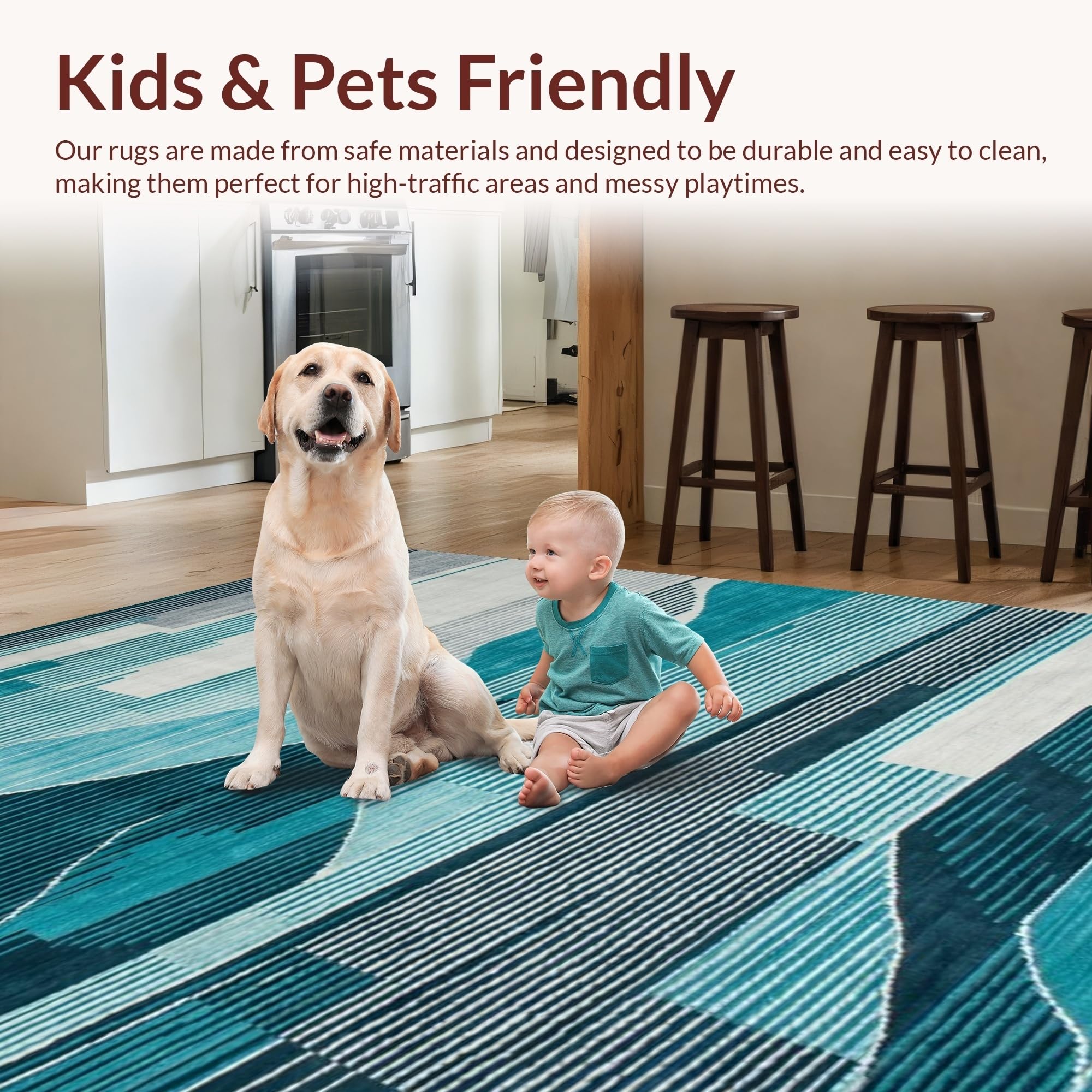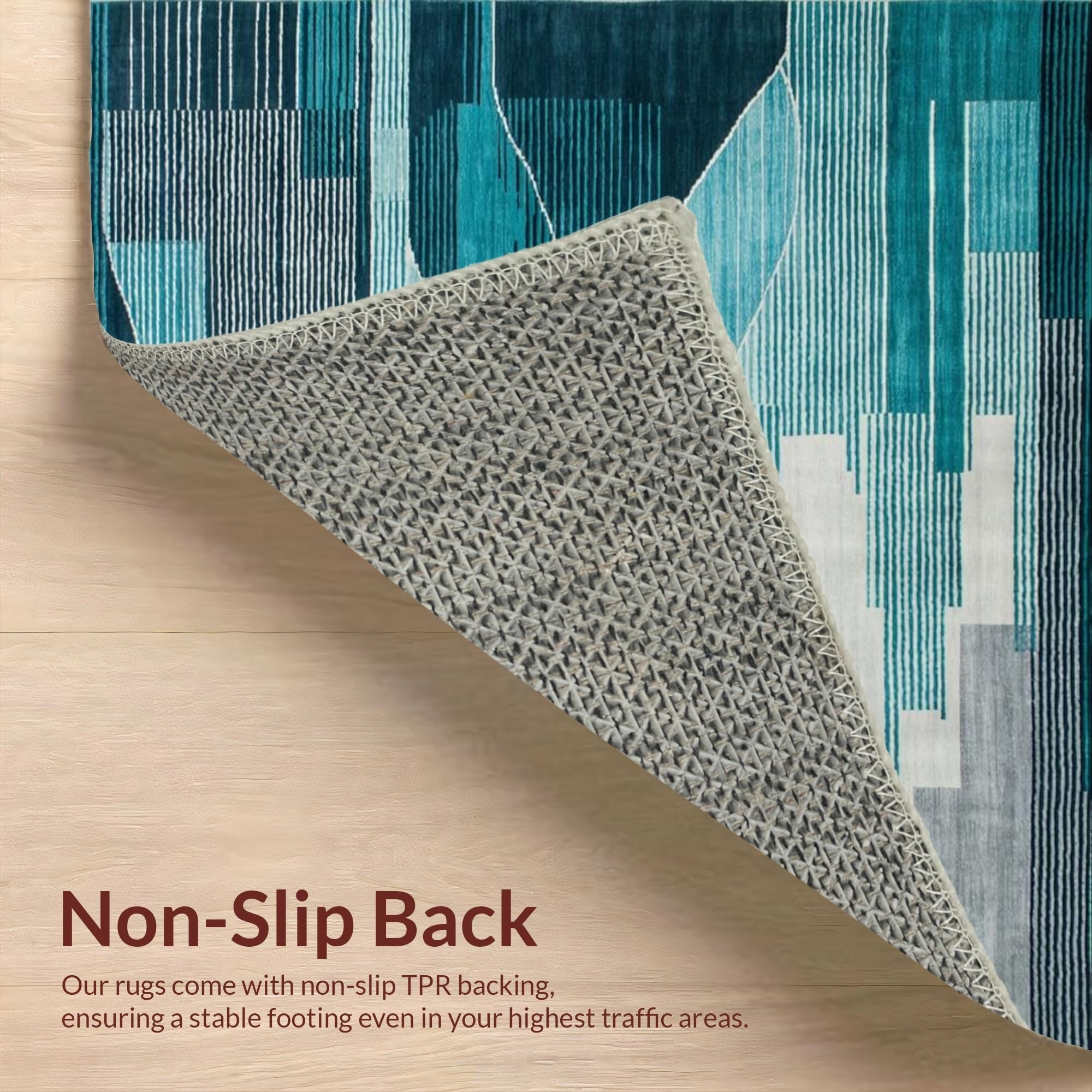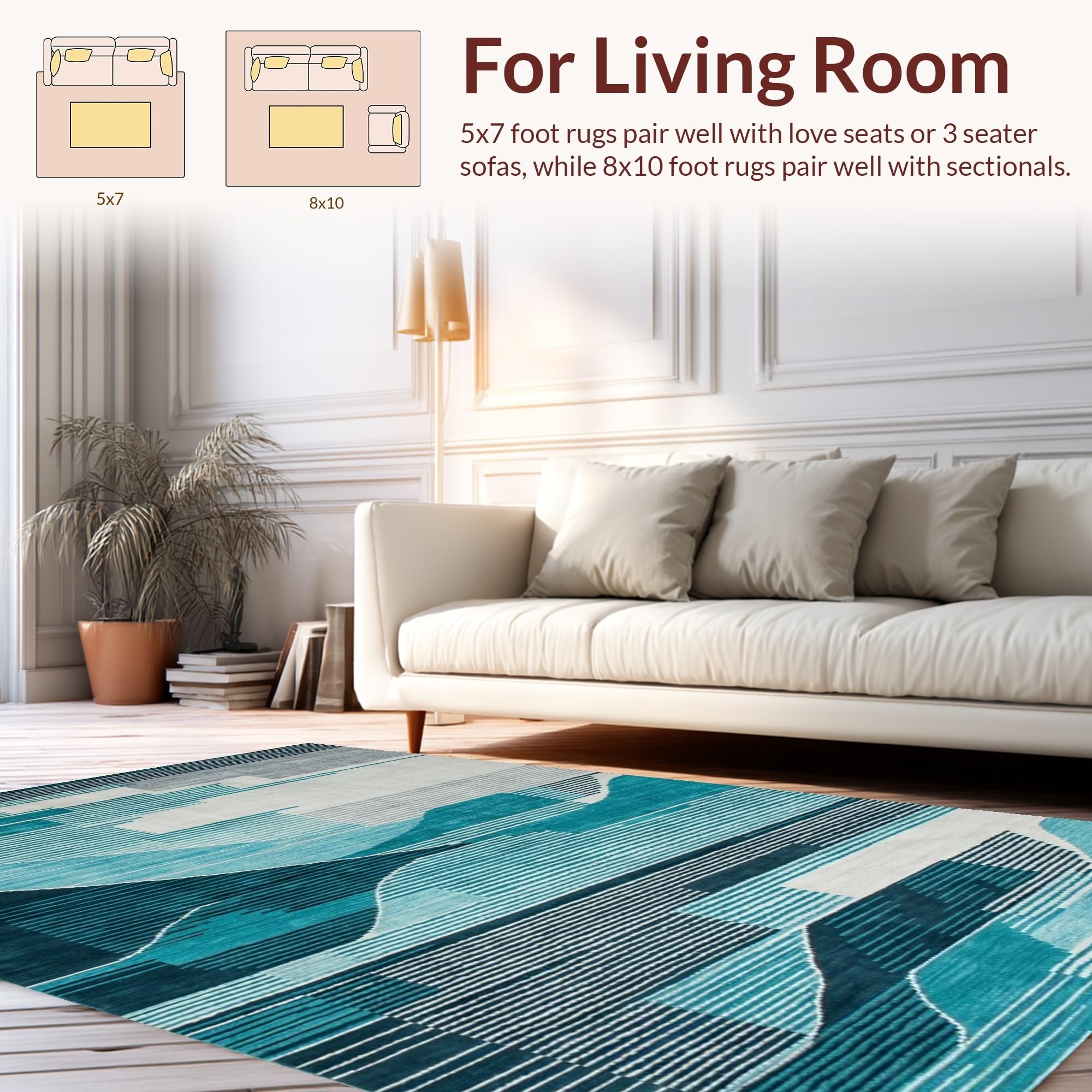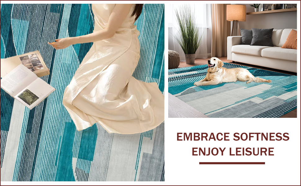 Ultra Soft Area Rug, Non Slip, Stain Resistant, Washable Area Rugs for Living Room, Bedroom, Elegant Abstract Teal Grey Composition(Blue) Overview: