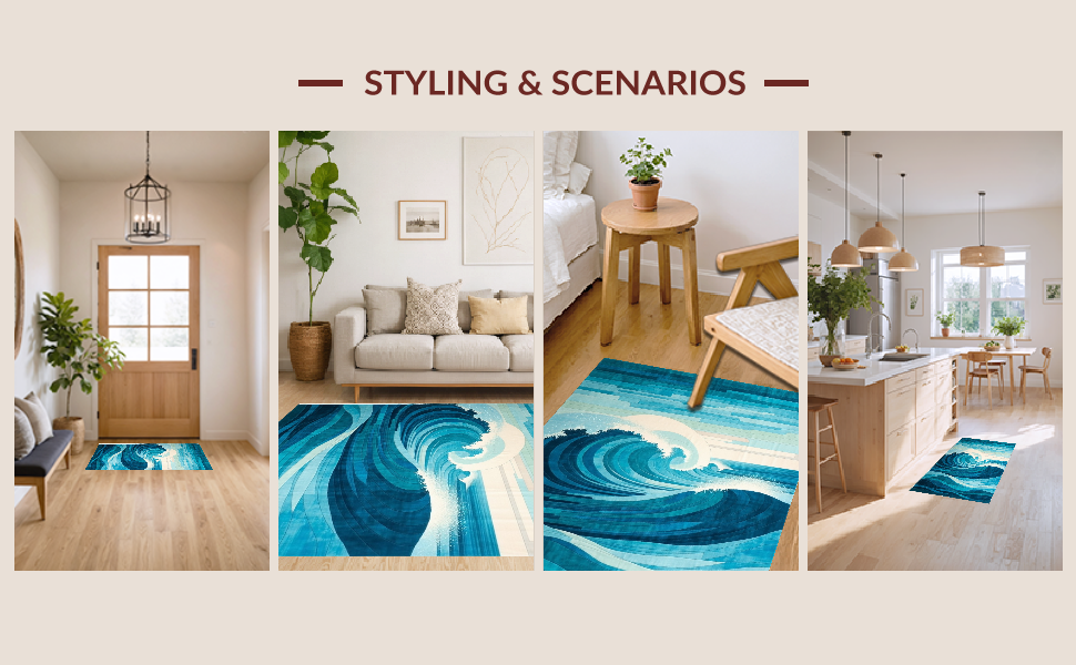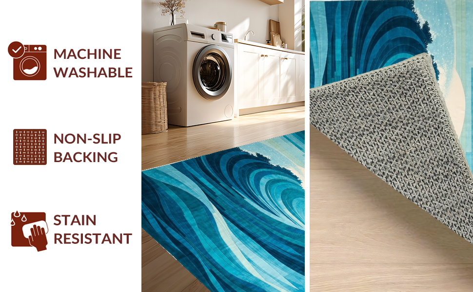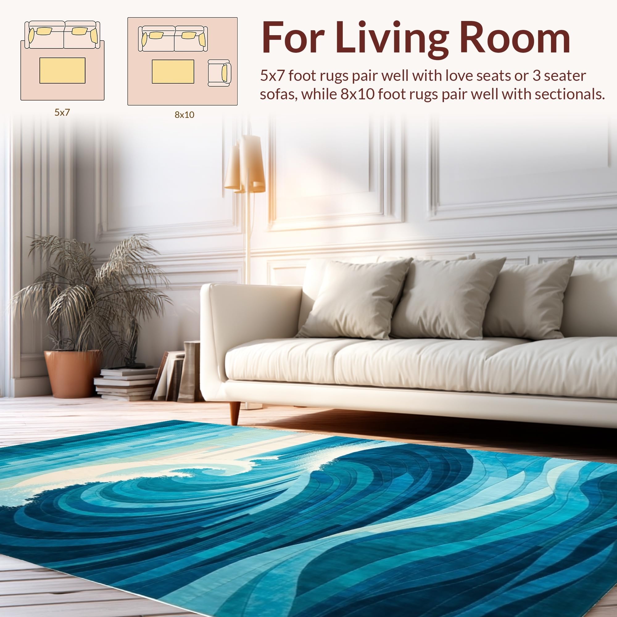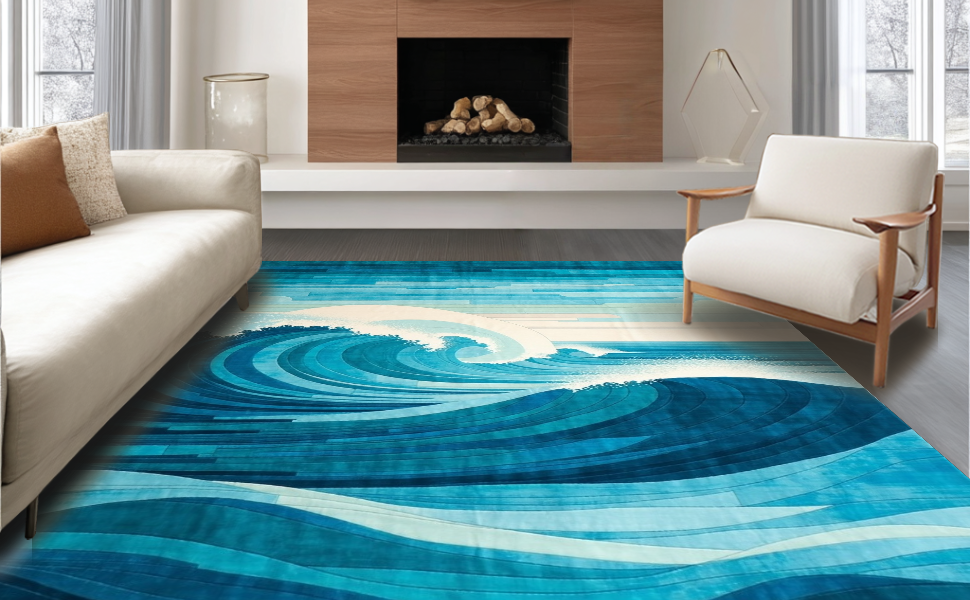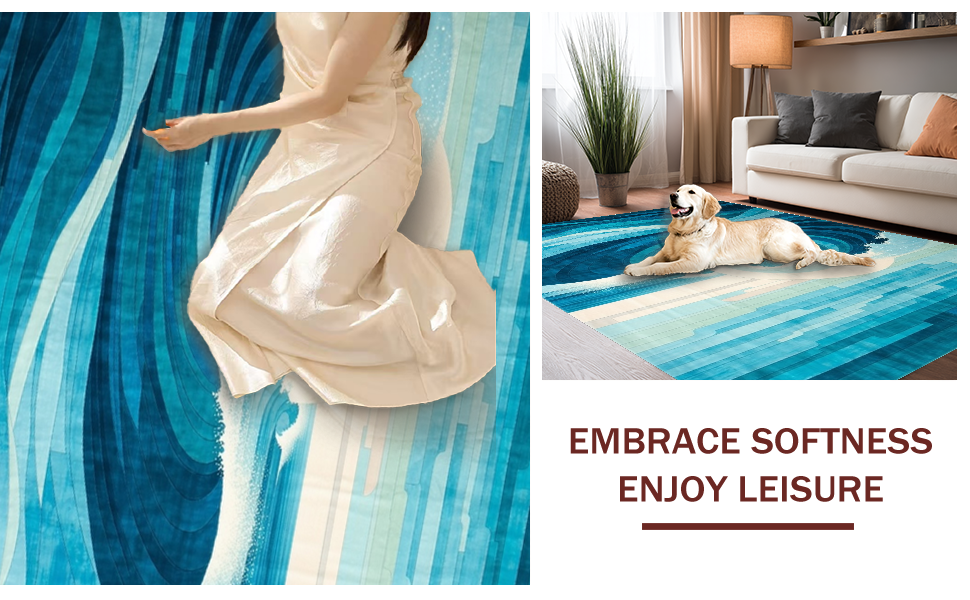Ultra Soft Area Rug, Non Slip, Stain Resistant, Washable Area Rugs for Living Room, Bedroom, Elegant Abstract Water Patterns(Blue) Overview: