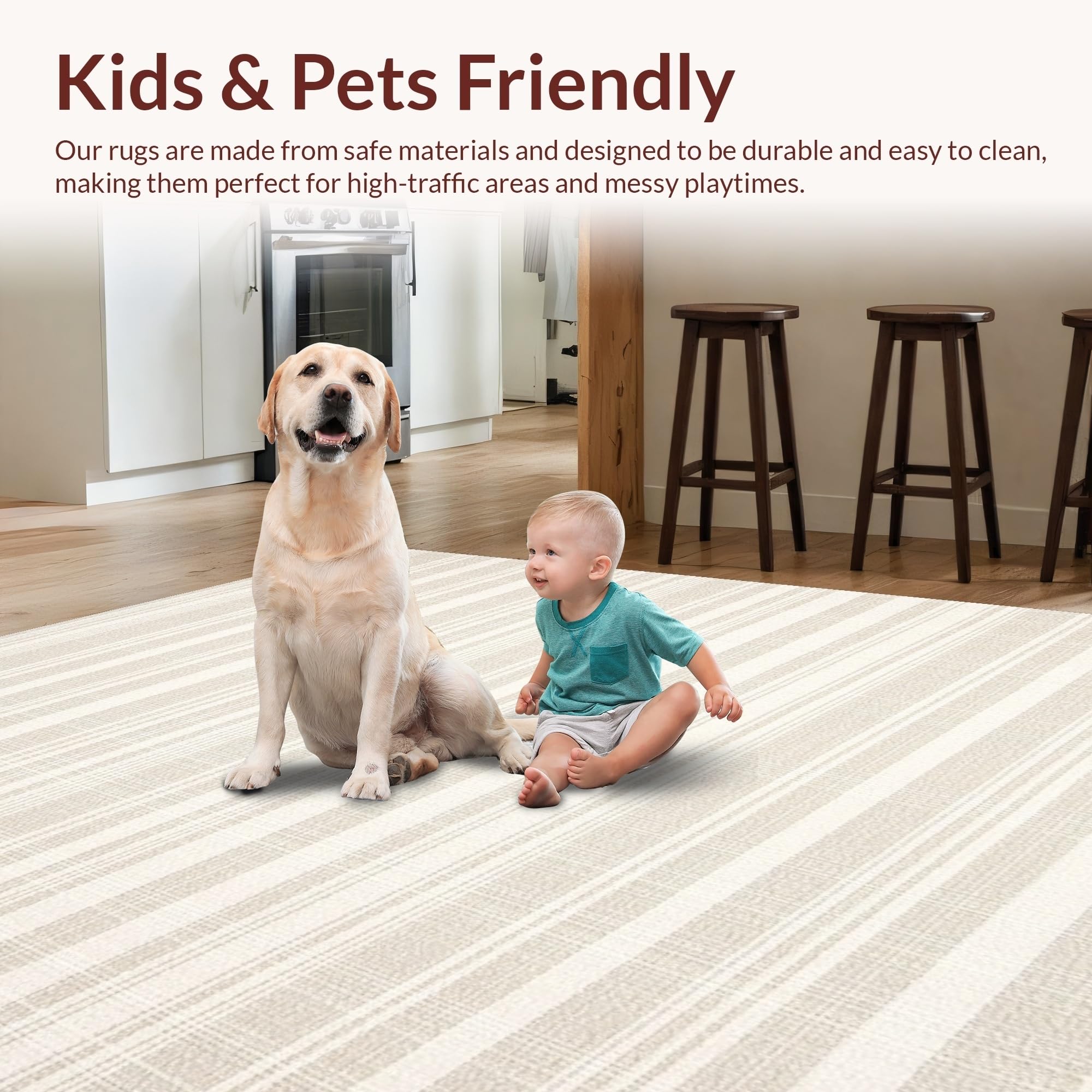 Ultra Soft Area Rug, Non Slip, Stain Resistant, Washable Area Rugs for Living Room, Bedroom, Elegant Almond Tiled Arrangement(Beige) Overview: