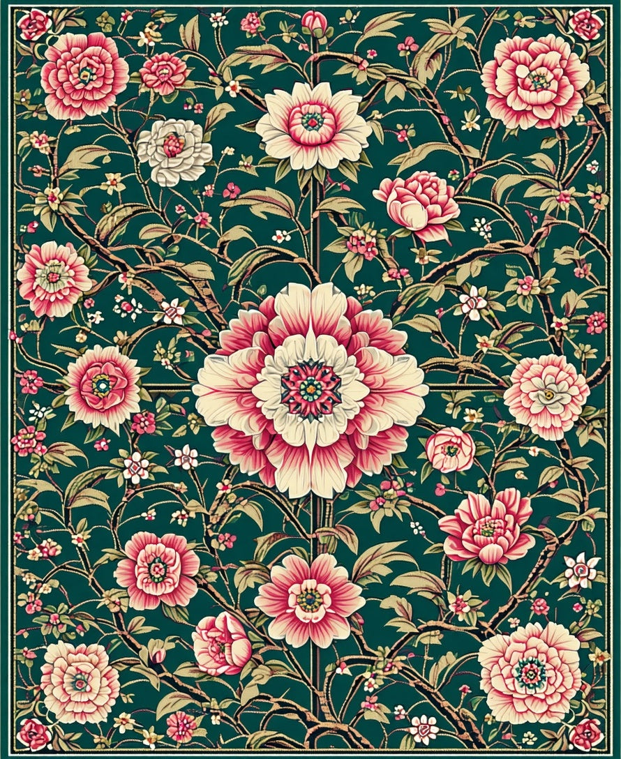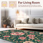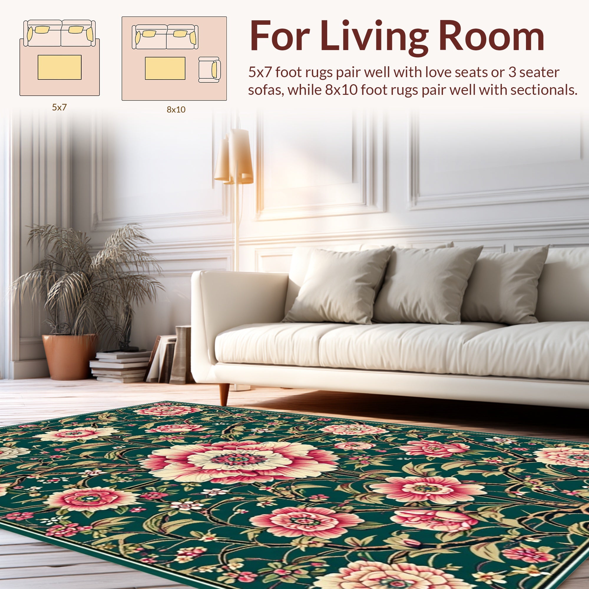 Flatwoven High Traffic Area Rug, Elegant Botanical Flourish, Non Slip, Stain Resistant, Washable Area Rugs for Living Room, Bedroom (Green) Overview: