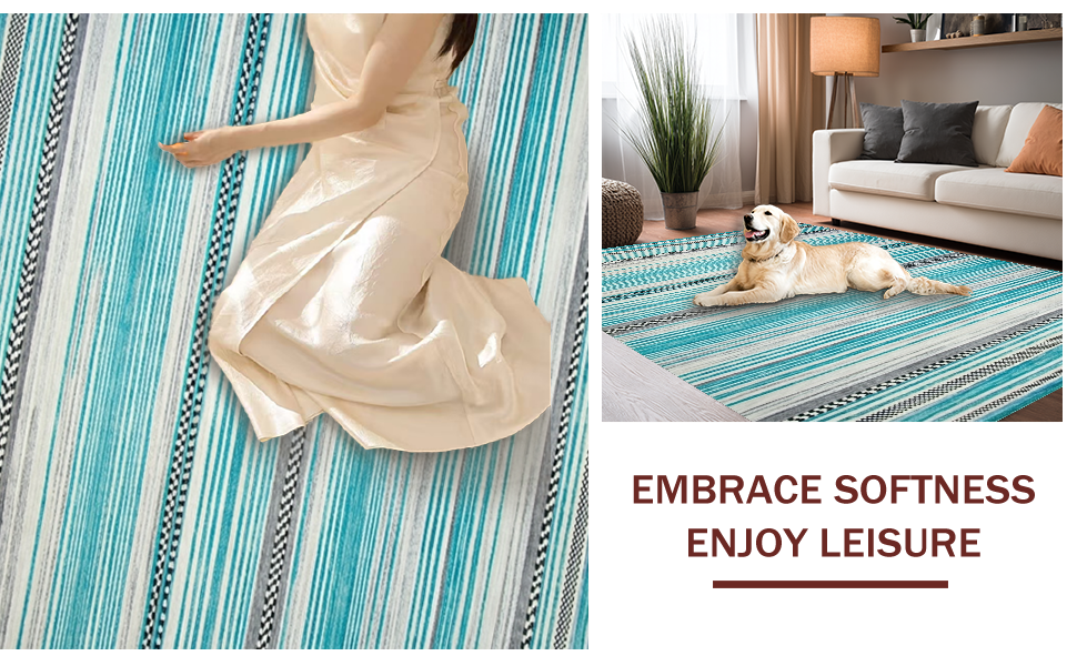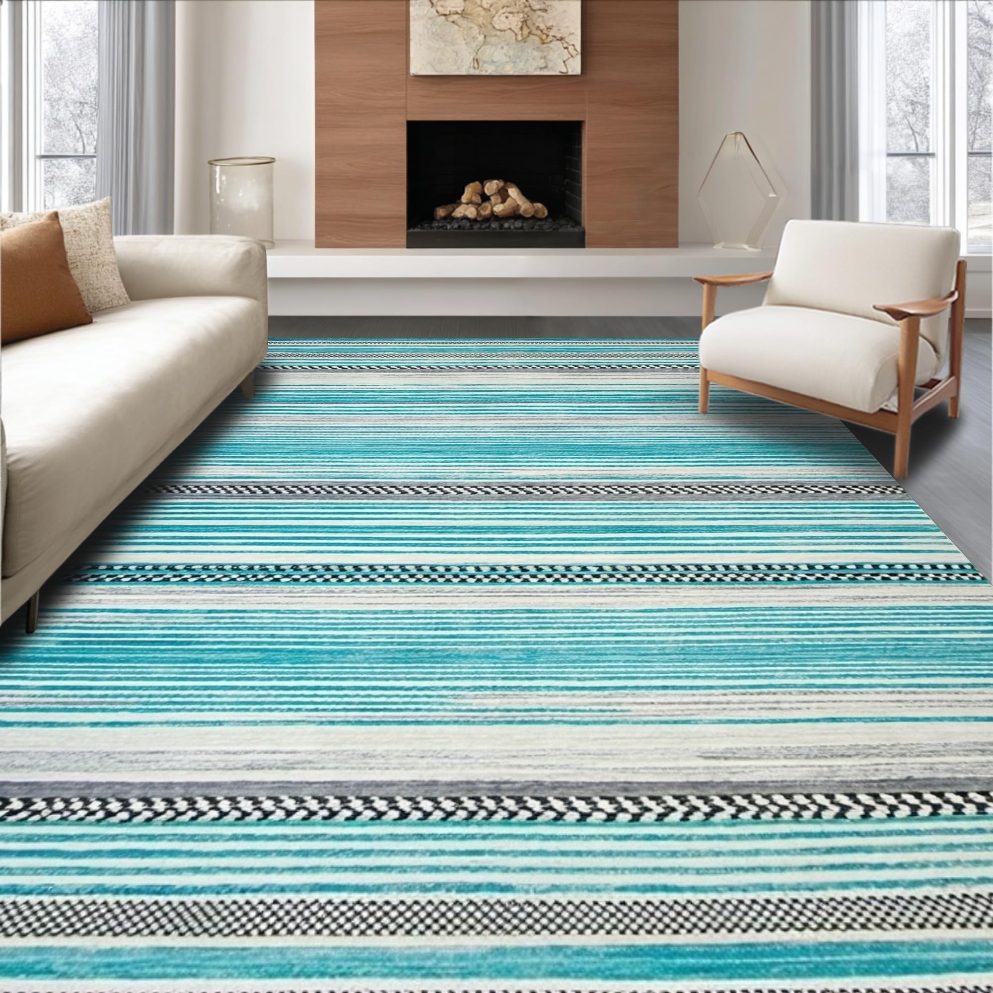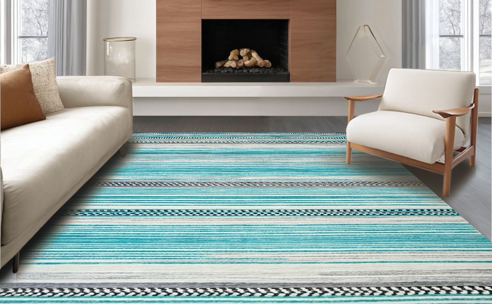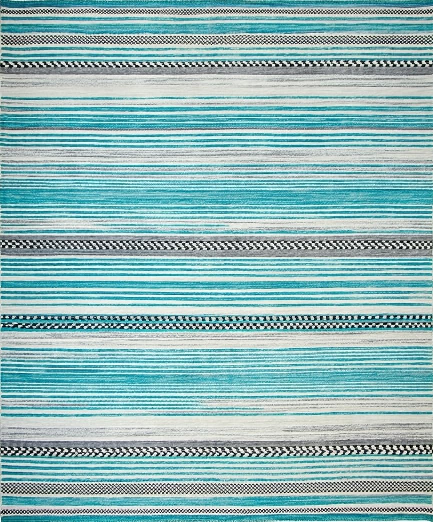 Ultra Soft Area Rug, Non Slip, Stain Resistant, Washable Area Rugs for Living Room, Bedroom, Elegant Aqua Tiled Design(Blue) Overview: