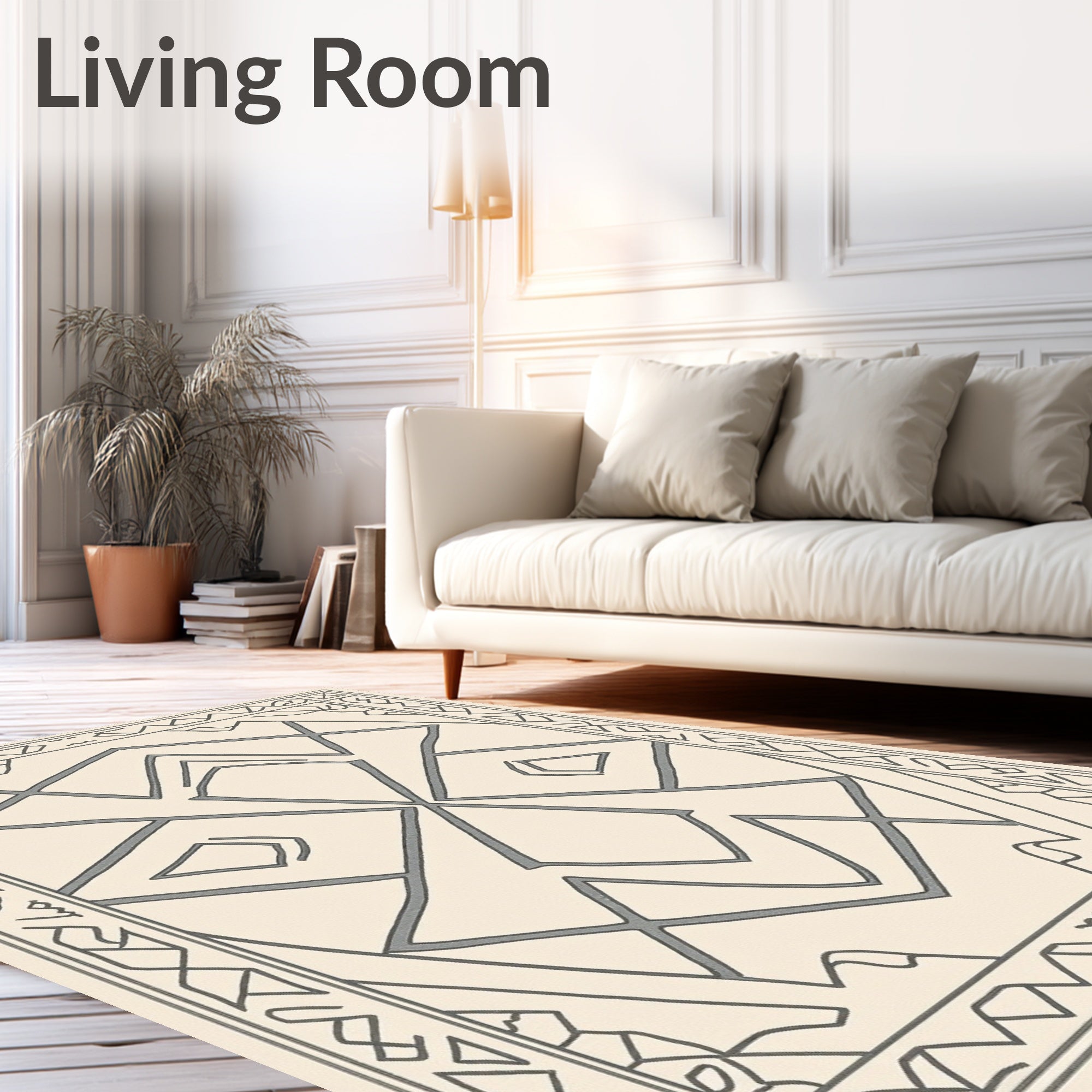 Ultra Soft Area Rug, Non Slip, Stain Resistant, Washable Area Rugs for Living Room, Bedroom, Elegant Aztec Boho Tapestry Contemporary Abstract(Ivory) Overview: