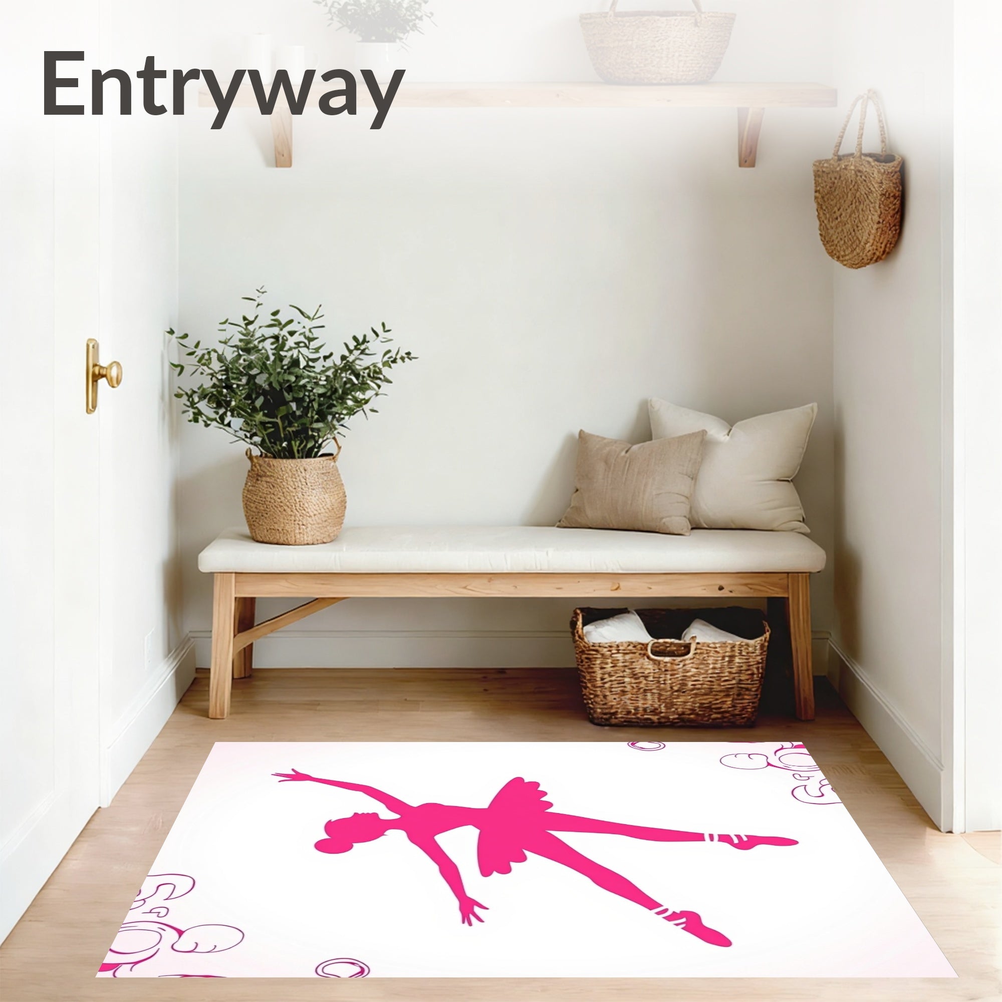 Ultra Soft Area Rug, Non Slip, Stain Resistant, Washable Area Rugs for Living Room, Bedroom, Elegant Ballerina With Delicate Bowknot Accent(Pink) Overview: