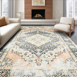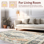 Ultra Soft Area Rug, Non Slip, Stain Resistant, Washable Area Rugs for Living Room, Bedroom, Elegant Beige and Grey with Faded Eastern Style Medallion Floral(Beige) Overview:
