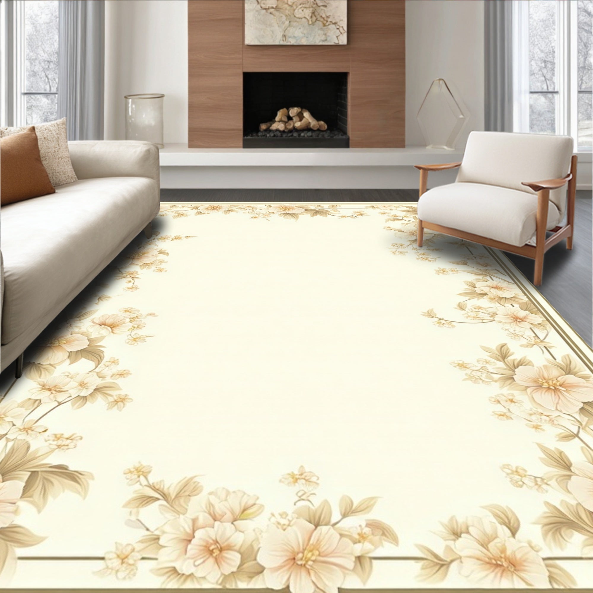 Flatwoven High Traffic Area Rug, Elegant Beige Low Pile Modern Bordered, Non Slip, Stain Resistant, Washable Area Rugs for Living Room, Bedroom (Beige) Overview: