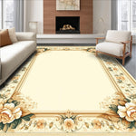 Ultra Soft Area Rug, Non Slip, Stain Resistant, Washable Area Rugs for Living Room, Bedroom, Elegant Beige Floral Border Area Timeless Geometric Design(Beige) Overview: