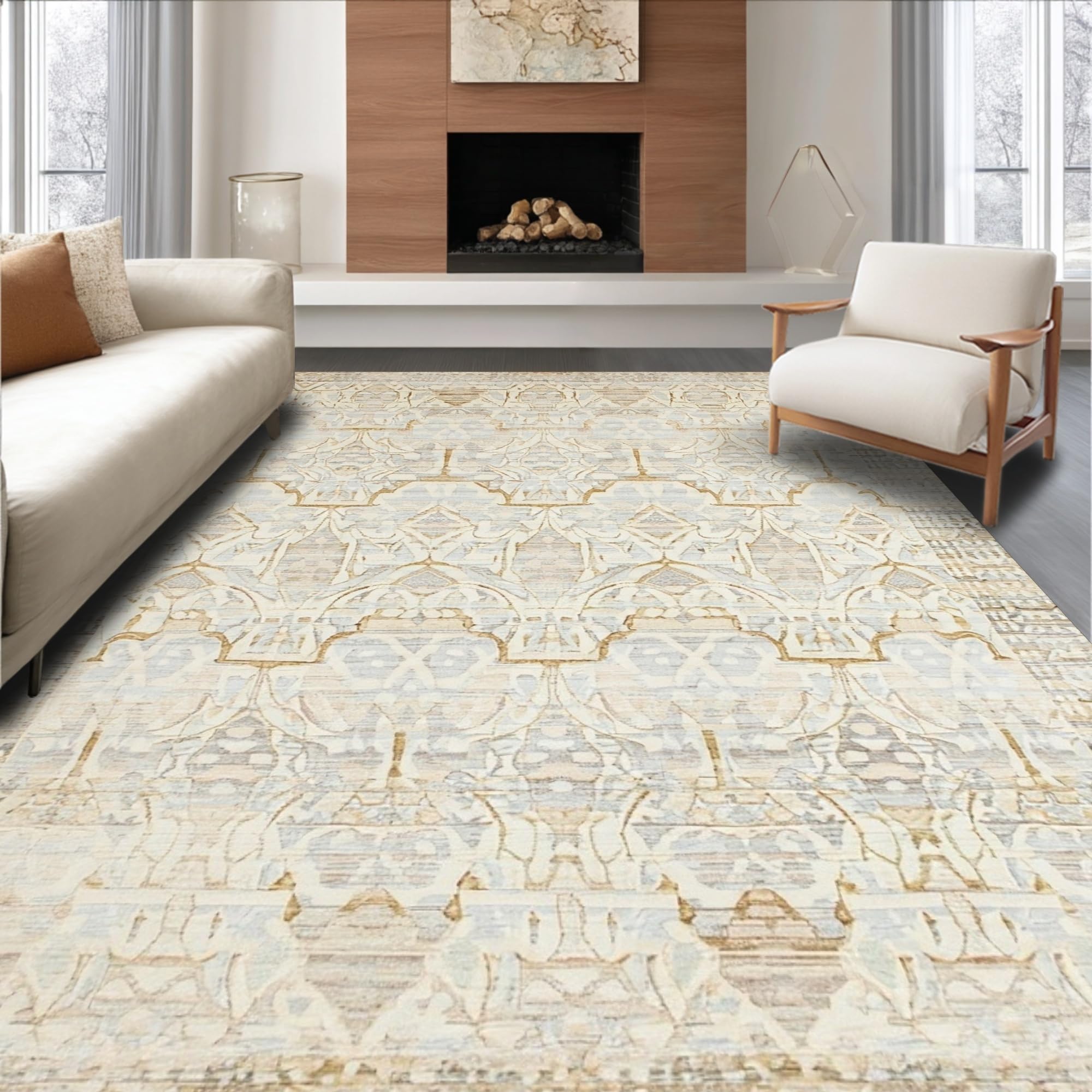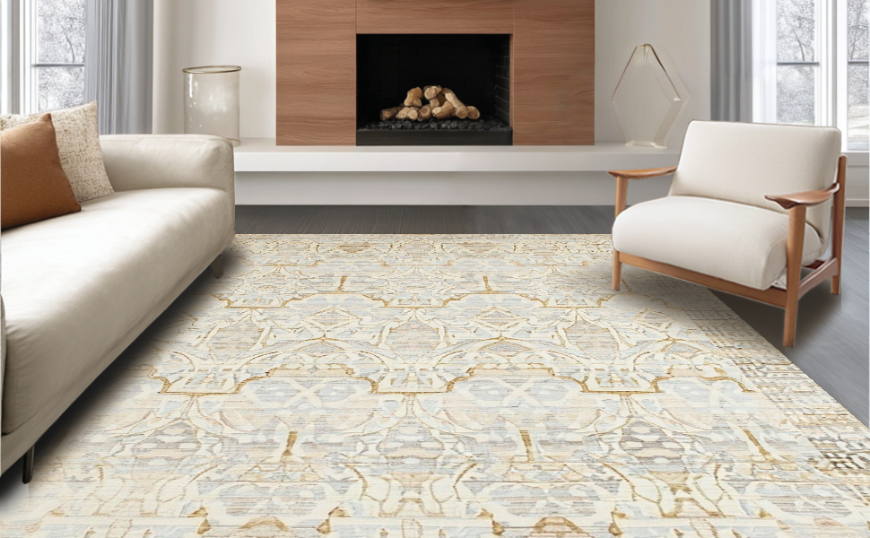 Ultra Soft Area Rug, Non Slip, Stain Resistant, Washable Area Rugs for Living Room, Bedroom, Elegant Beige Geometric Waves(Beige) Overview: