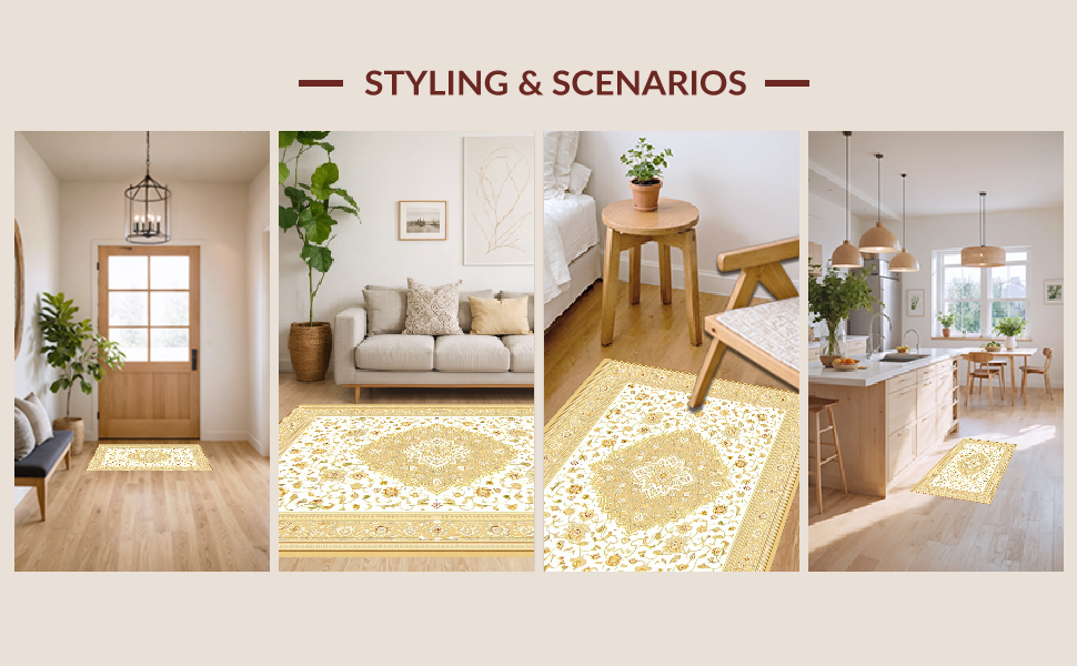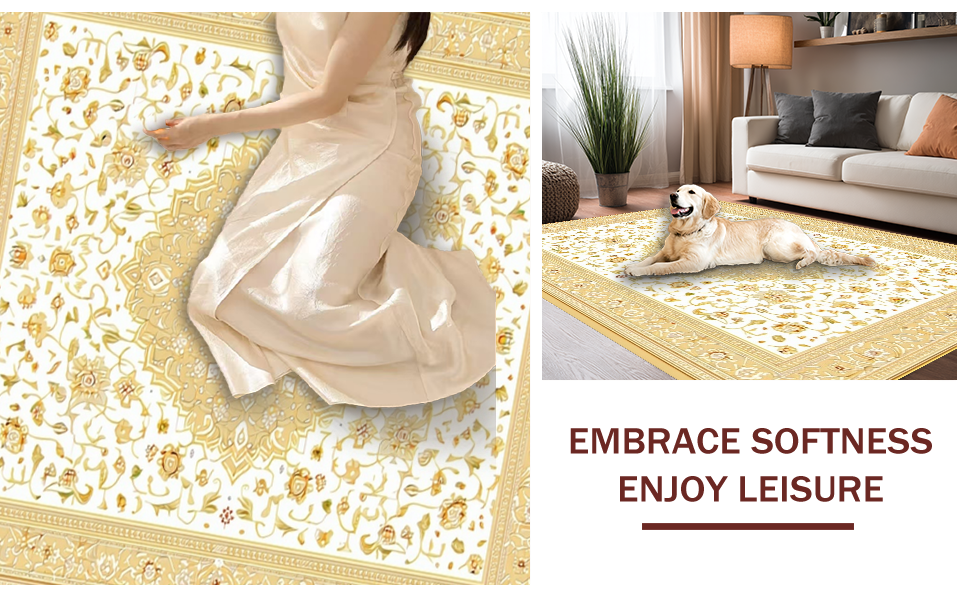 Ultra Soft Area Rug, Non Slip, Stain Resistant, Washable Area Rugs for Living Room, Bedroom, Elegant Beige Medallion Artwork(Beige) Overview:
