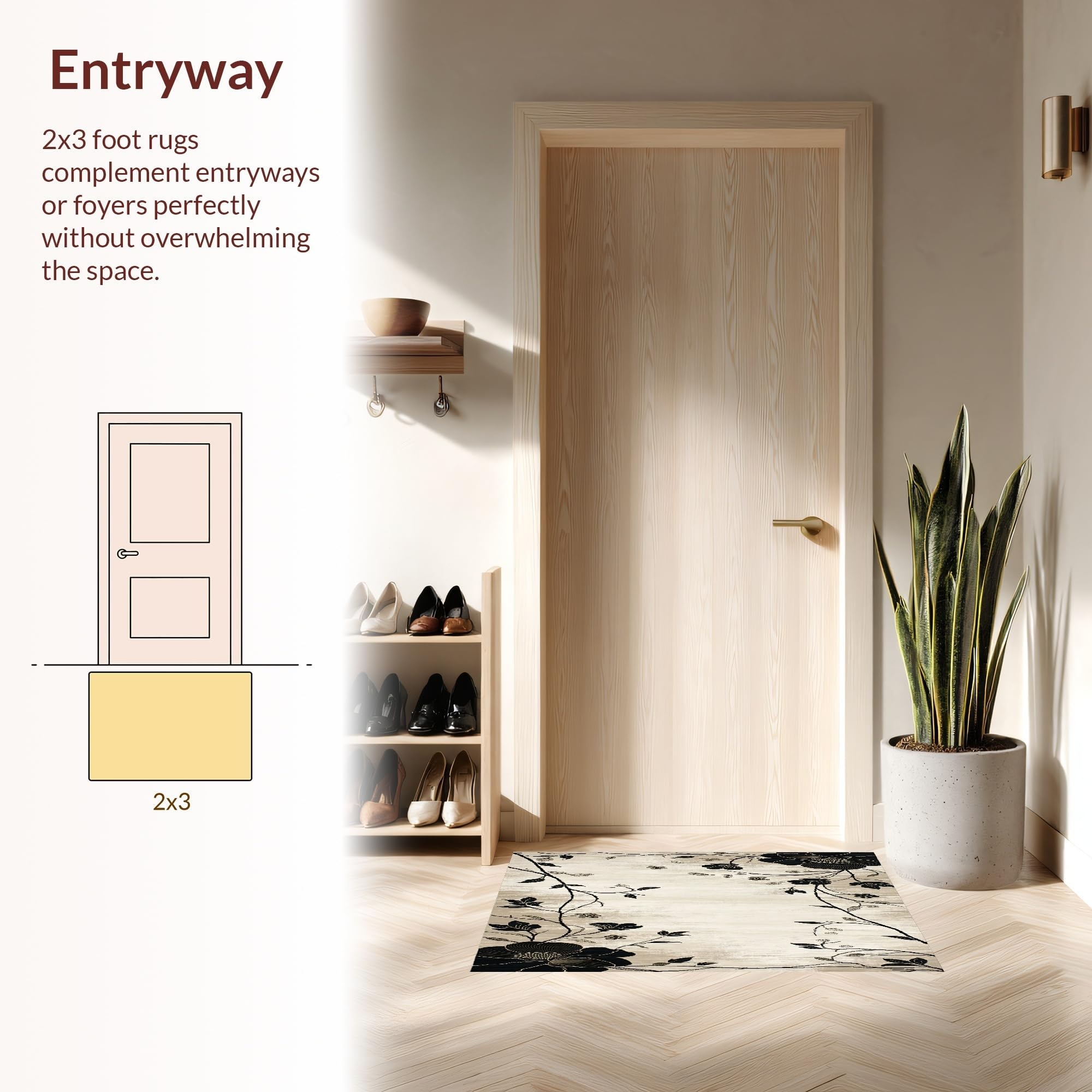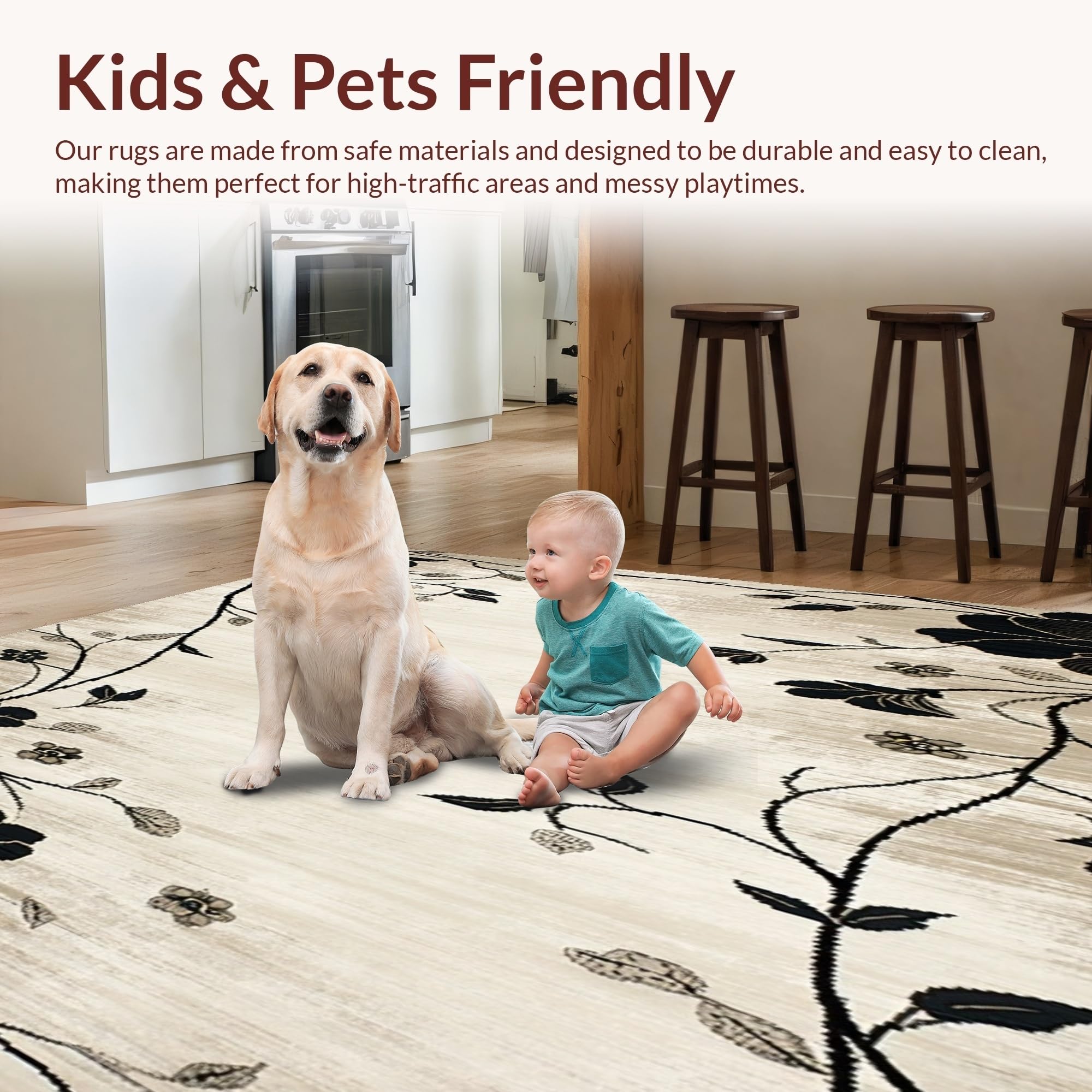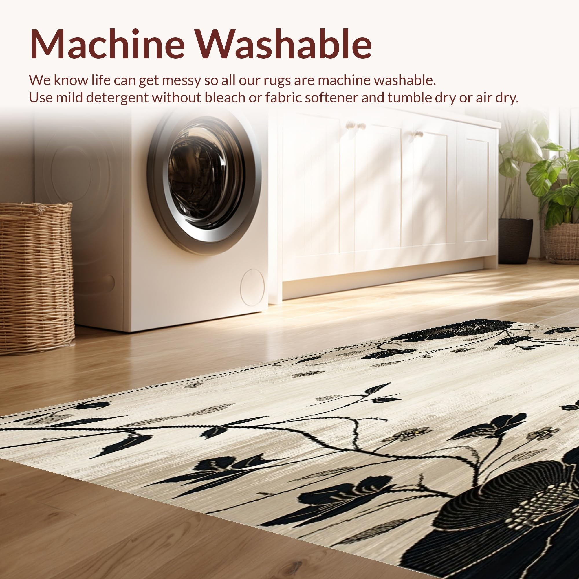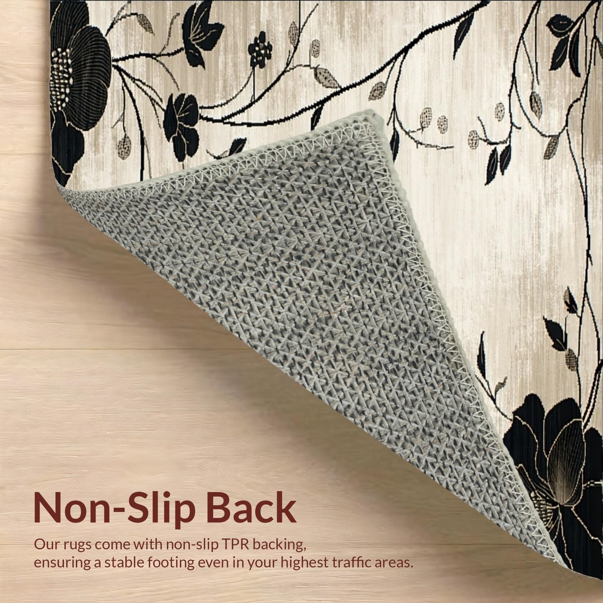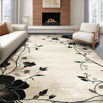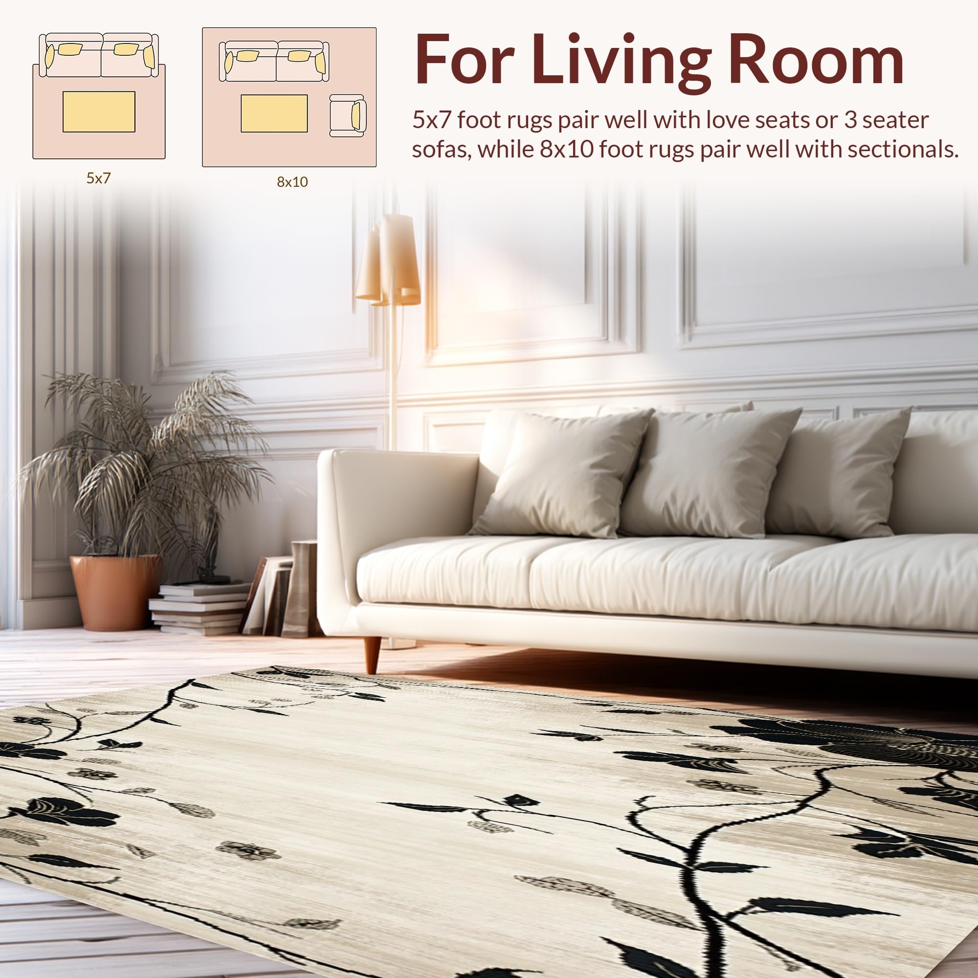 Ultra Soft Area Rug, Non Slip, Stain Resistant, Washable Area Rugs for Living Room, Bedroom, Elegant Black and Beige Abstract Flower(Beige) Overview: