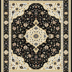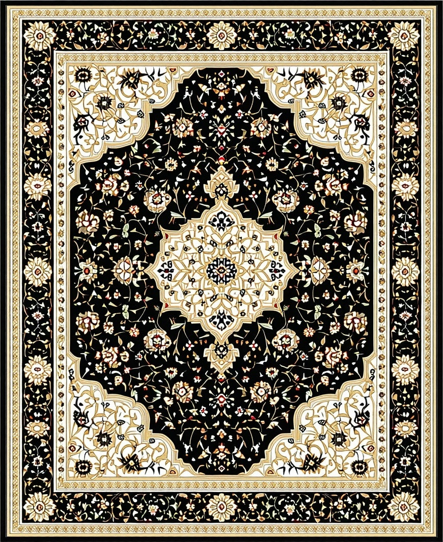 Elegant Black and Beige Medallion with Ornate Oriental Motifs(Black)